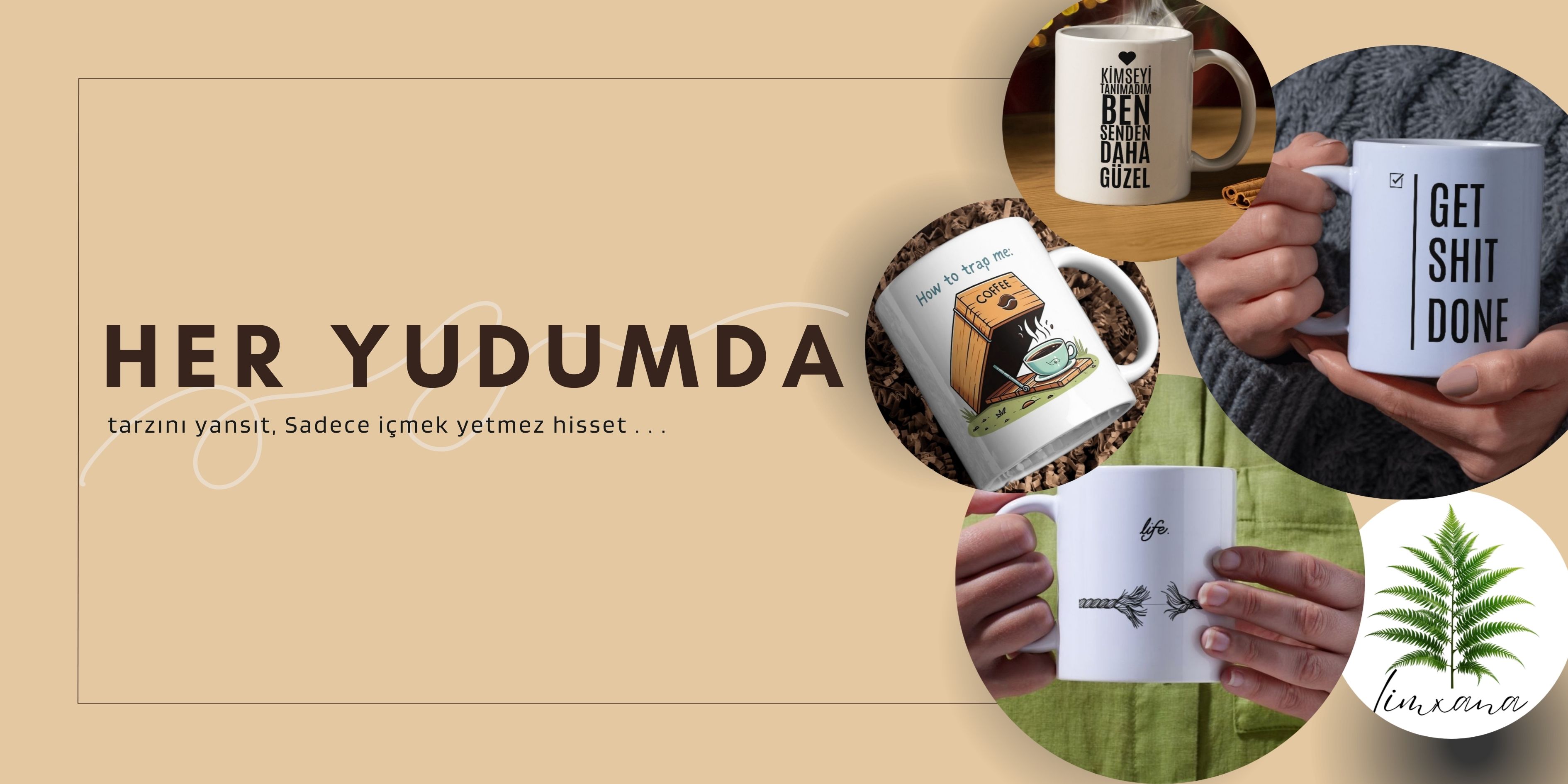 Win Ovro Premium Beyaz Porselen Hediye Çift Yön Baskılı Kupa Bardak - Eğrelti Otu Limhana Limxana