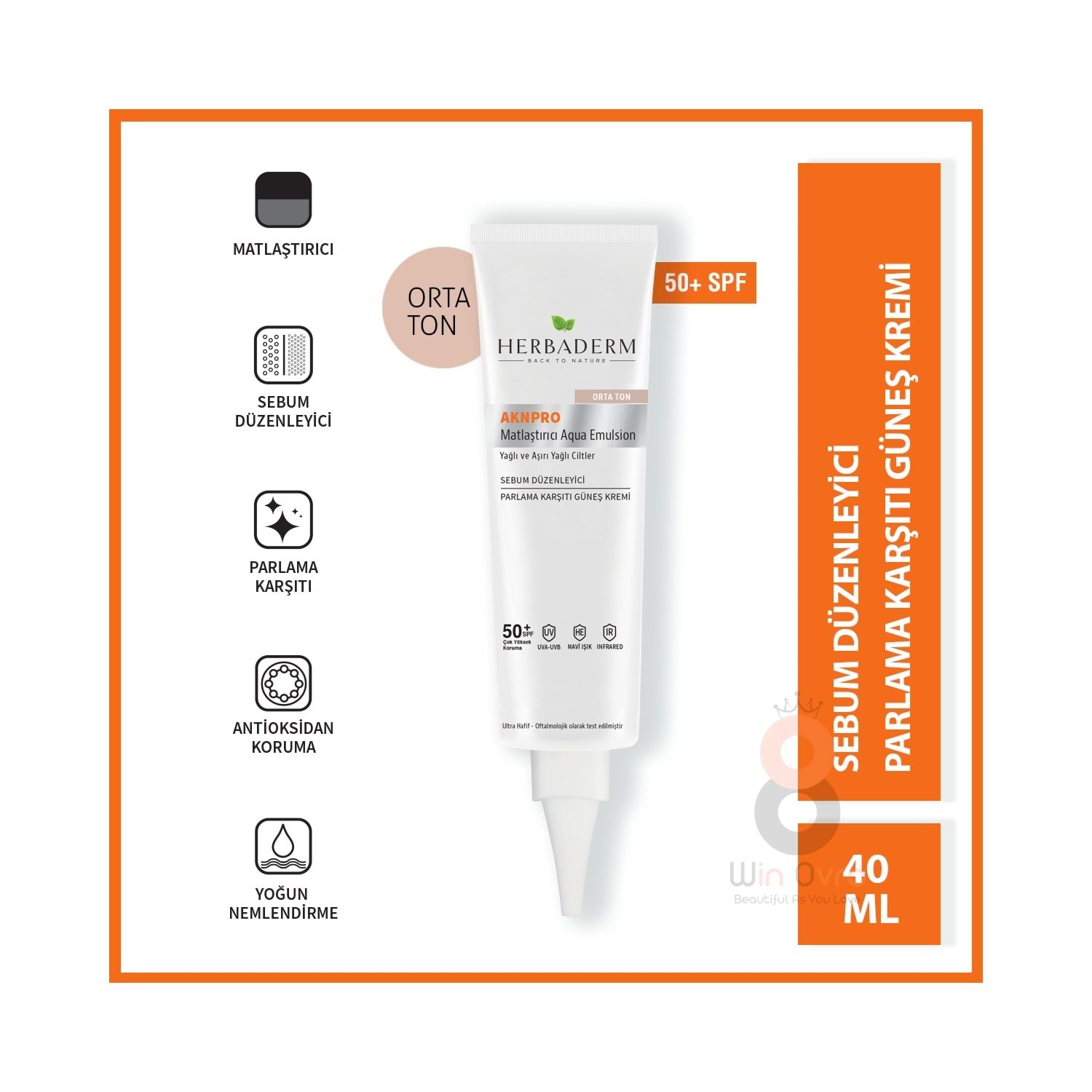 Herbaderm Aknpro Tam Spektrum Koruma Sebum Düzenleyici Yağlı Cilt Renkli Orta Ton