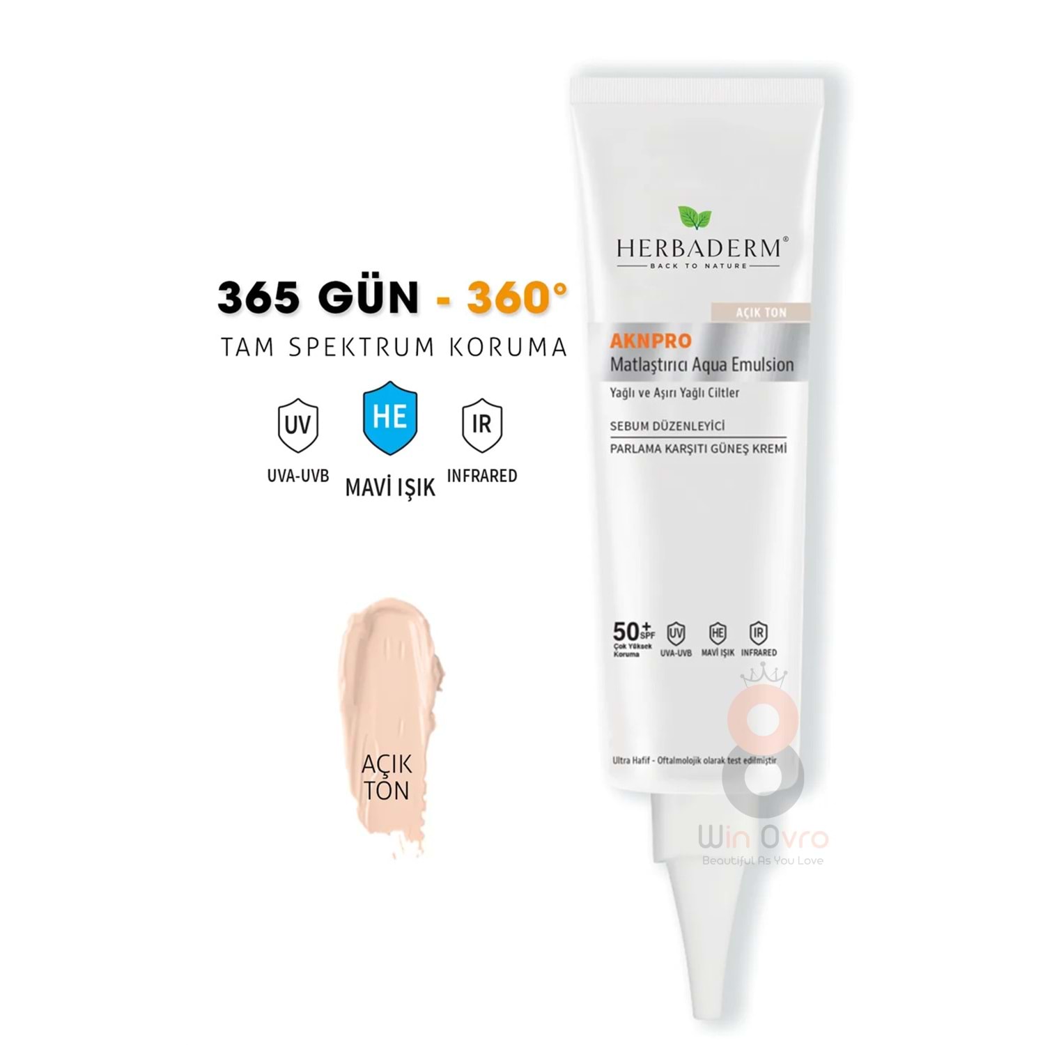 Herbaderm AKNPRO Yağlı, Akneye Meyilli Ciltler için Nemlendirici Güneş Kremi, 50+ SPF