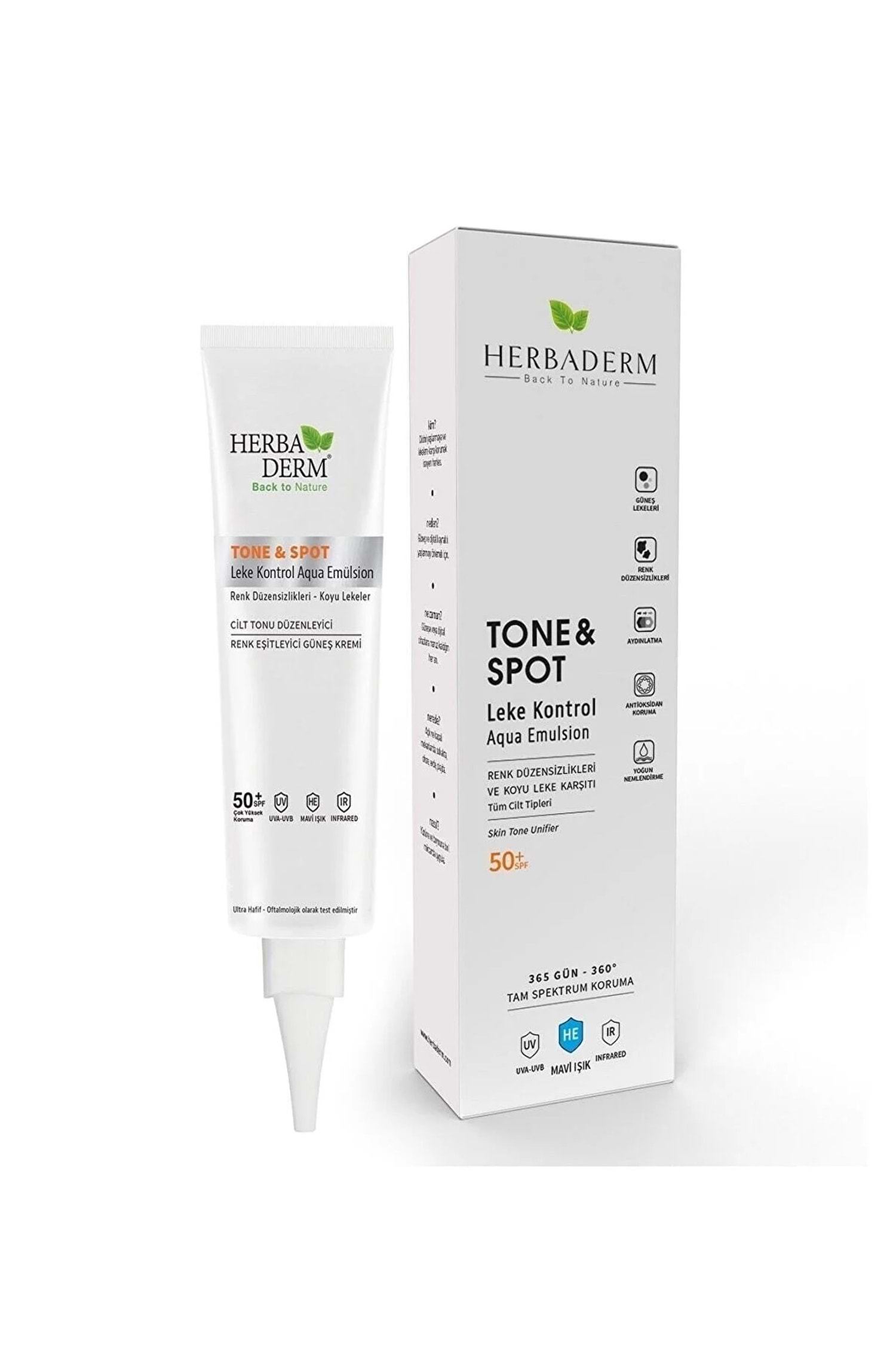 Herbaderm Tone & Spot Tam Spekt Koruma Koyu Leke Karşıtı Ve Renk Düzen Renksiz