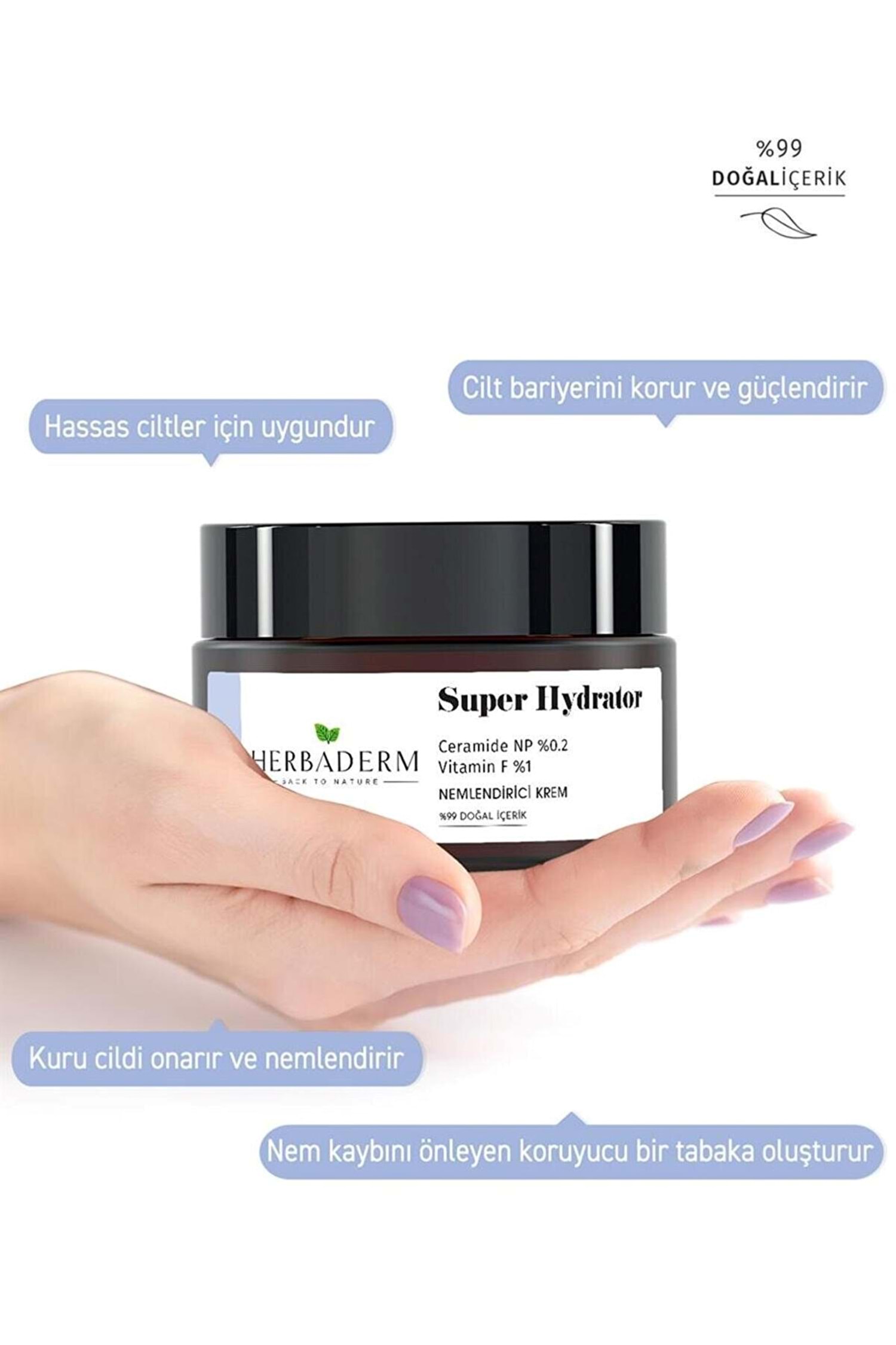 Herbaderm Super Hydrator Cilt Bariyerini Güçlendirici ve Onarıcı Yoğun Nemlendirici Krem 50 ml