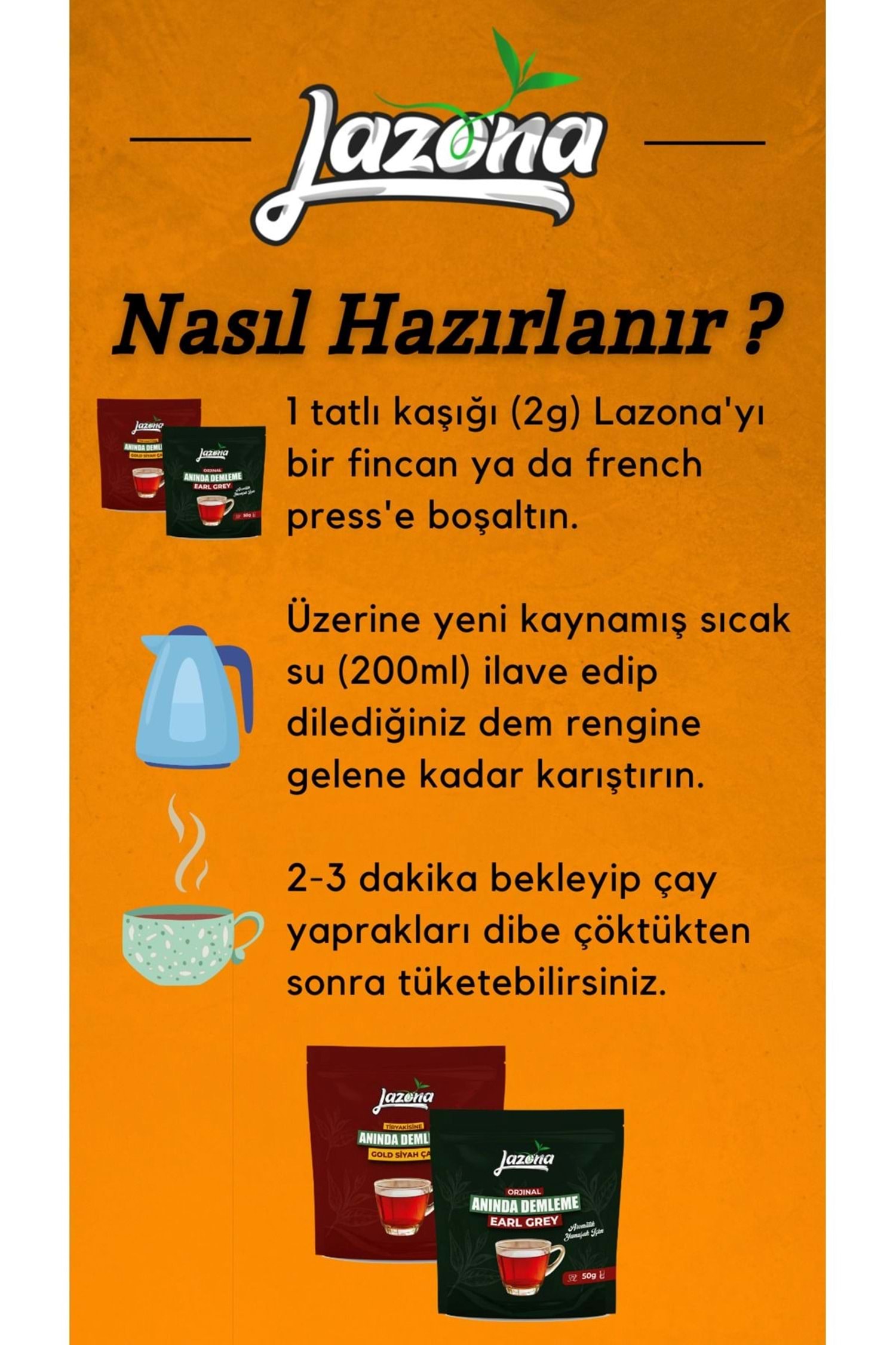 Lazona Anında Demleme Çay Tiryakisine Klasik Gold Siyah Çay 50 Gr. 25'li Tek Dem Paketi