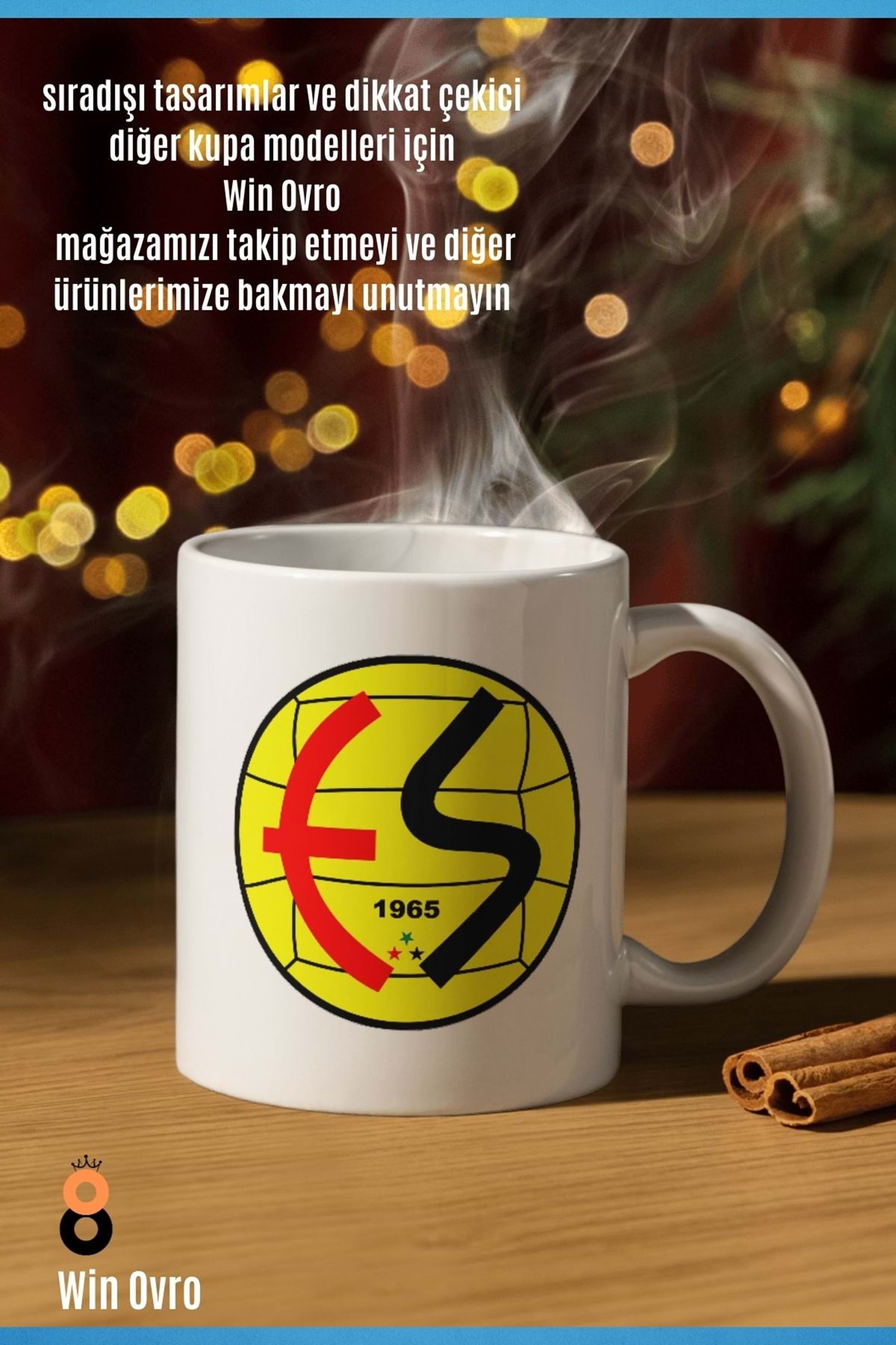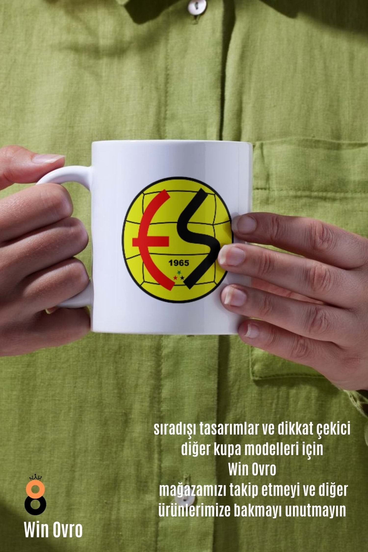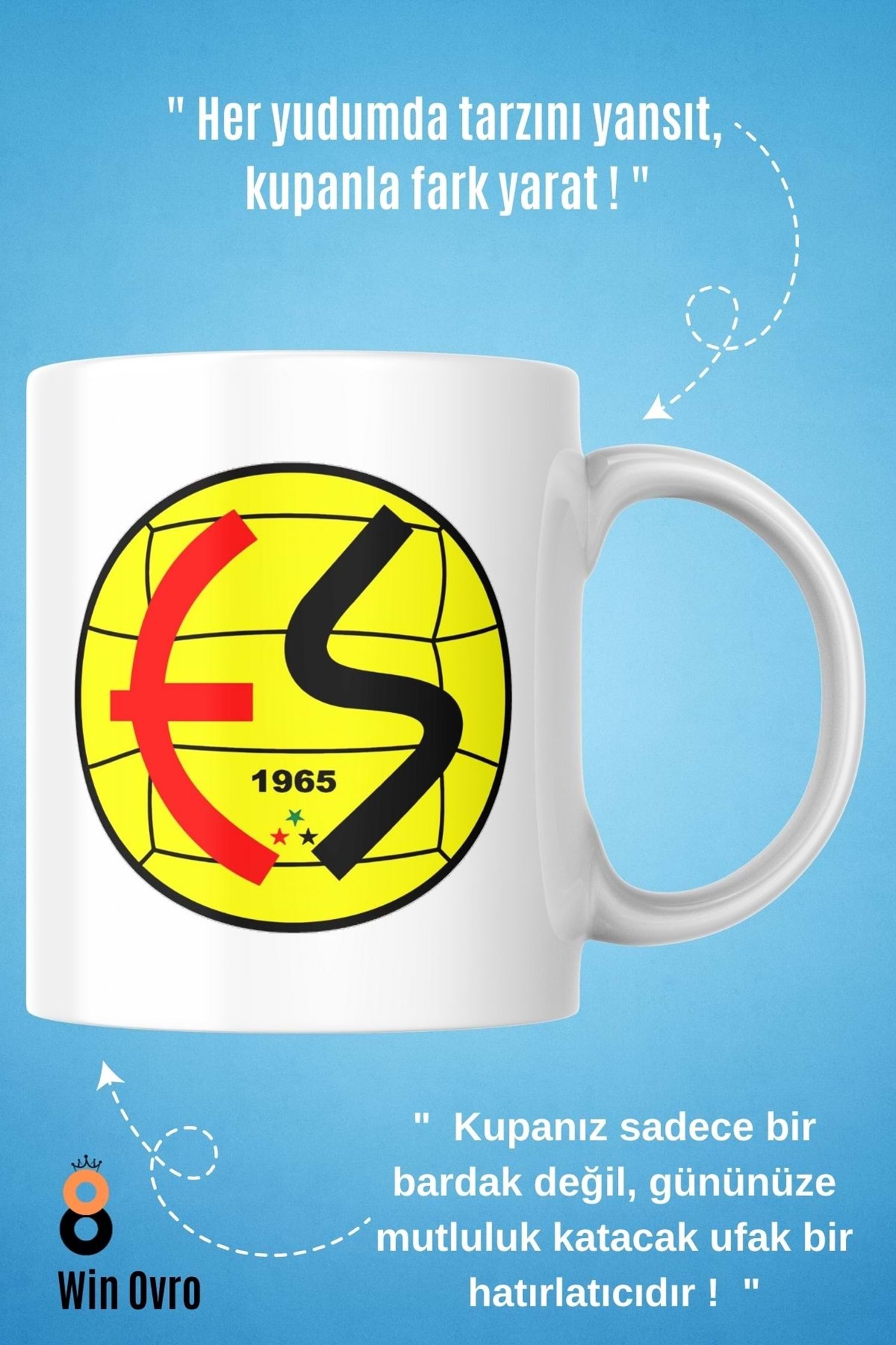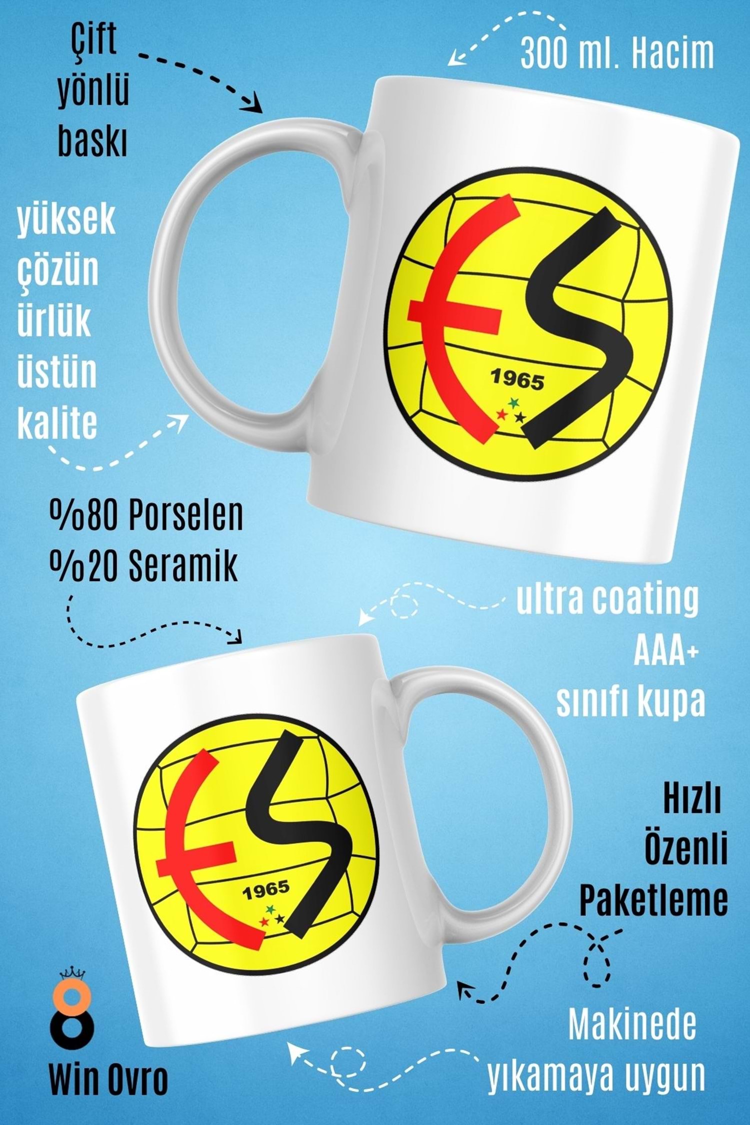 Win Ovro Premium Beyaz Porselen Hediye Çift Yön Baskılı Kupa Bardak - EskişehirSpor
