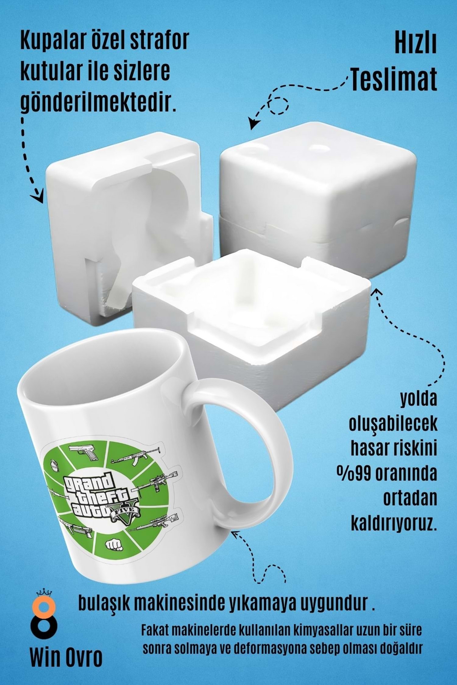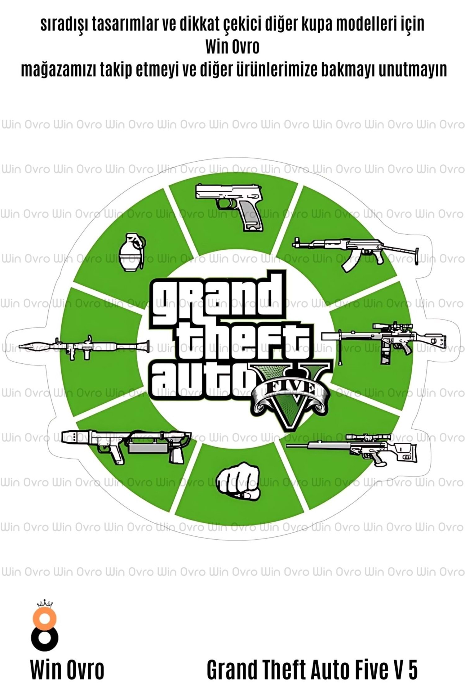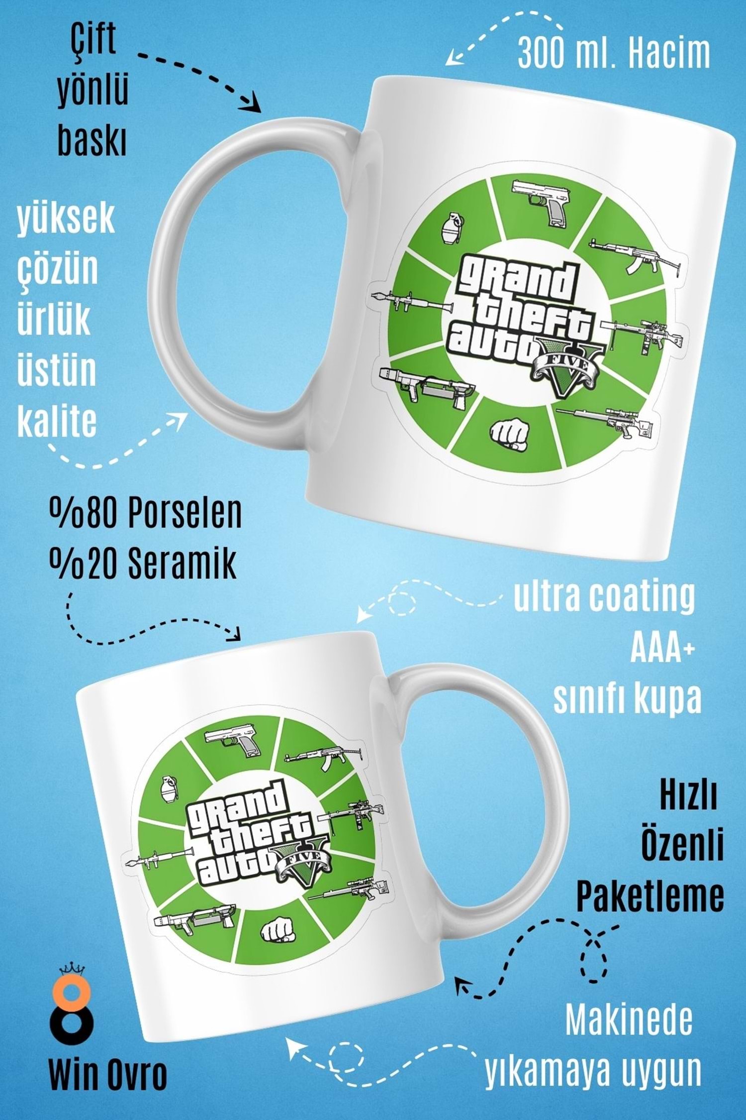 Win Ovro Premium Beyaz Porselen Hediye Çift Yön Baskılı Kupa Bardak - Grand Theft Auto Five V 5