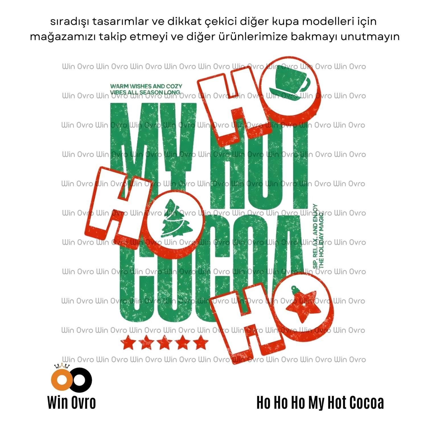 Win Ovro Premium Beyaz Porselen Hediye Çift Yön Baskılı Kupa Bardak - Ho Ho Ho My Hot Cocoa