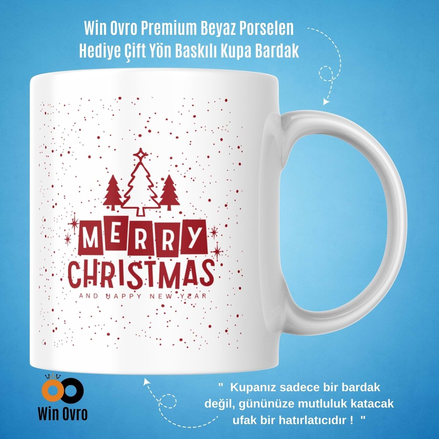 Win Ovro Premium Beyaz Porselen Hediye Çift Yön Baskılı Kupa Bardak - Merry Christmas Happy New 1
