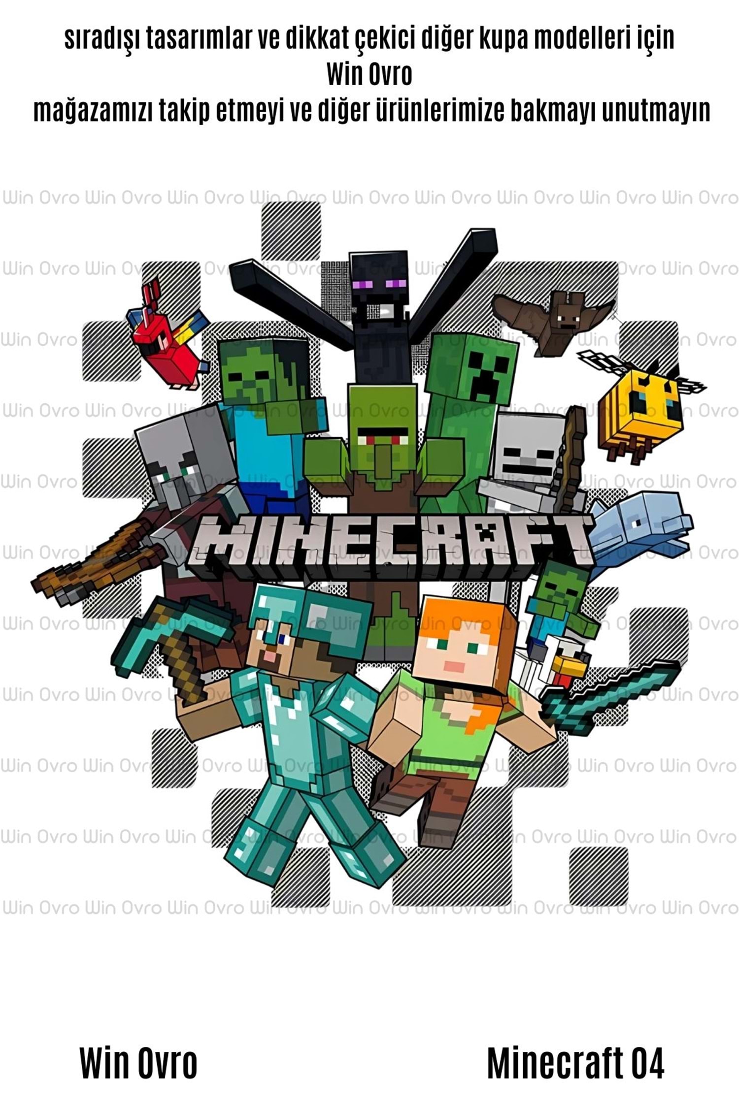 Win Ovro Premium Beyaz Porselen Hediye Çift Yön Baskılı Kupa Bardak - Minecraft 04