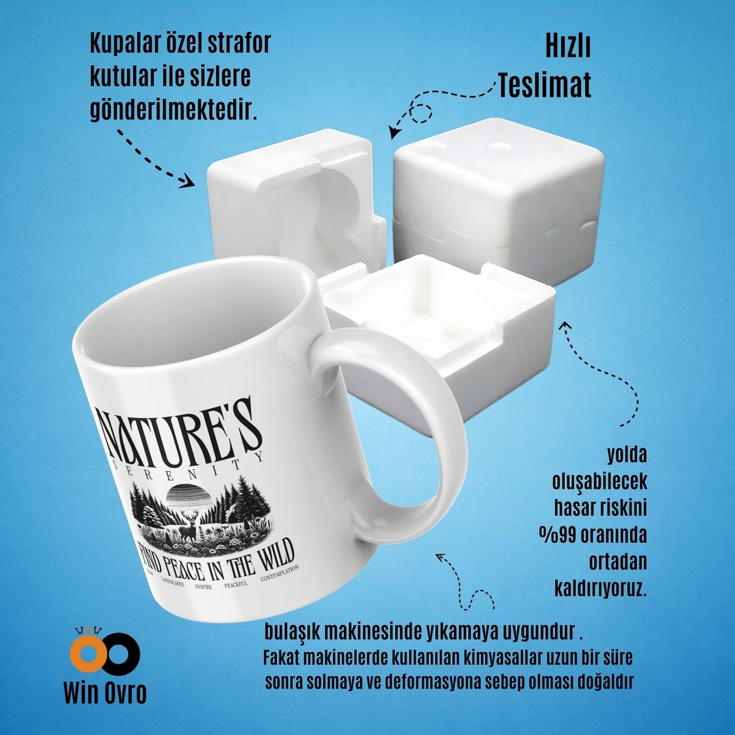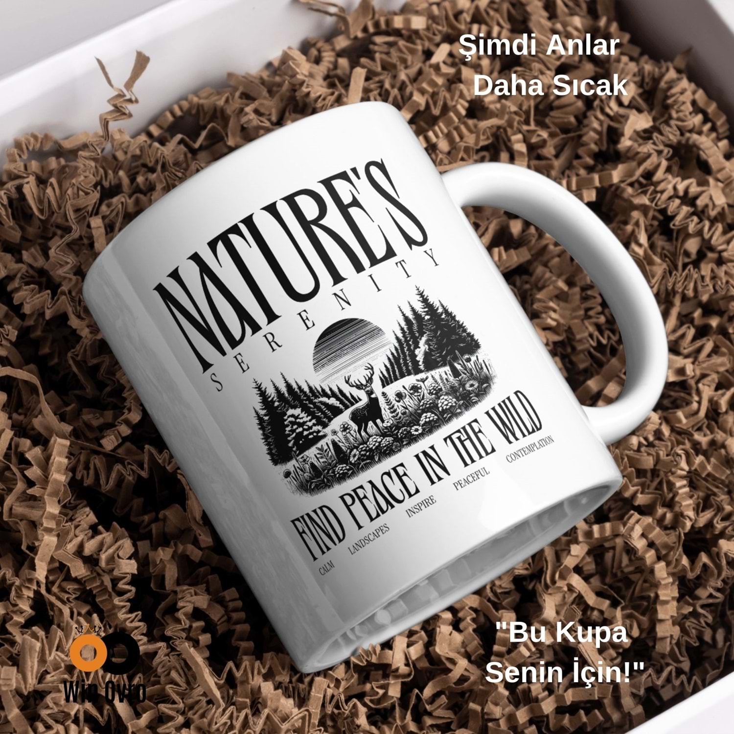 Win Ovro Premium Beyaz Porselen Hediye Çift Yön Baskılı Kupa Bardak - Nature s Serenity
