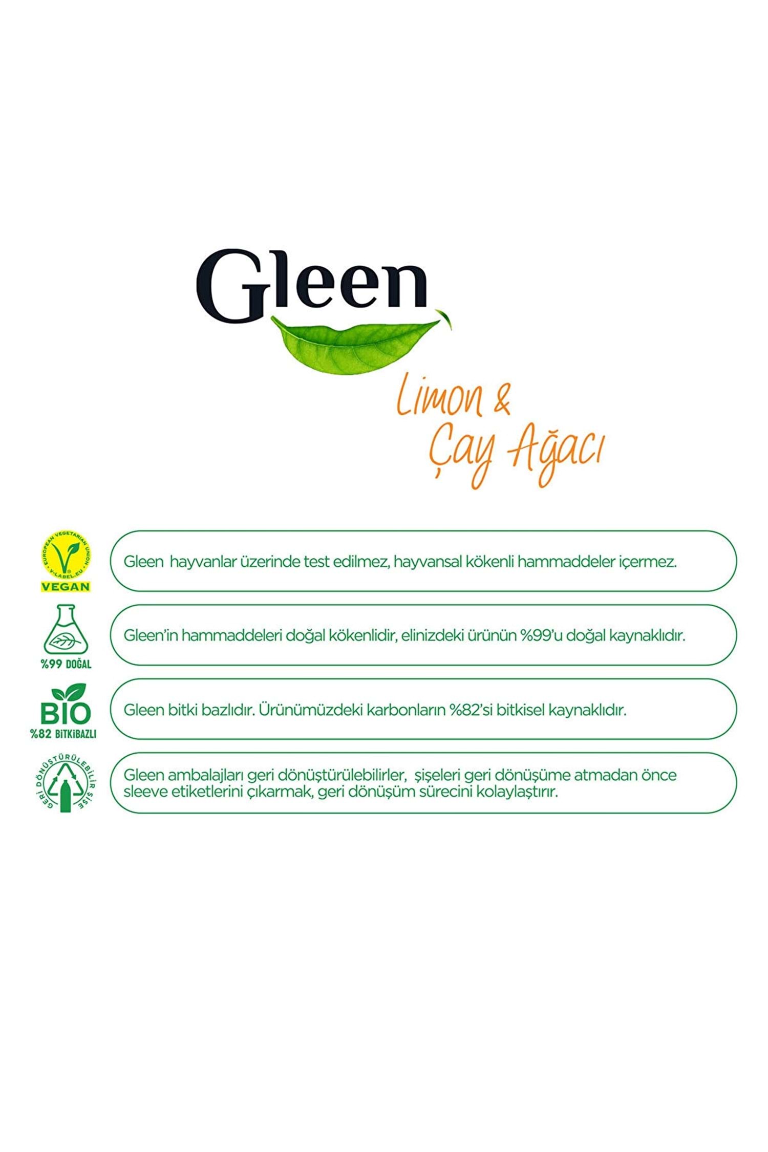 Gleen Organik Içerikli Vegan 1 Lt Limon-çay Ağacı Sprey Yüzey Temizleyici