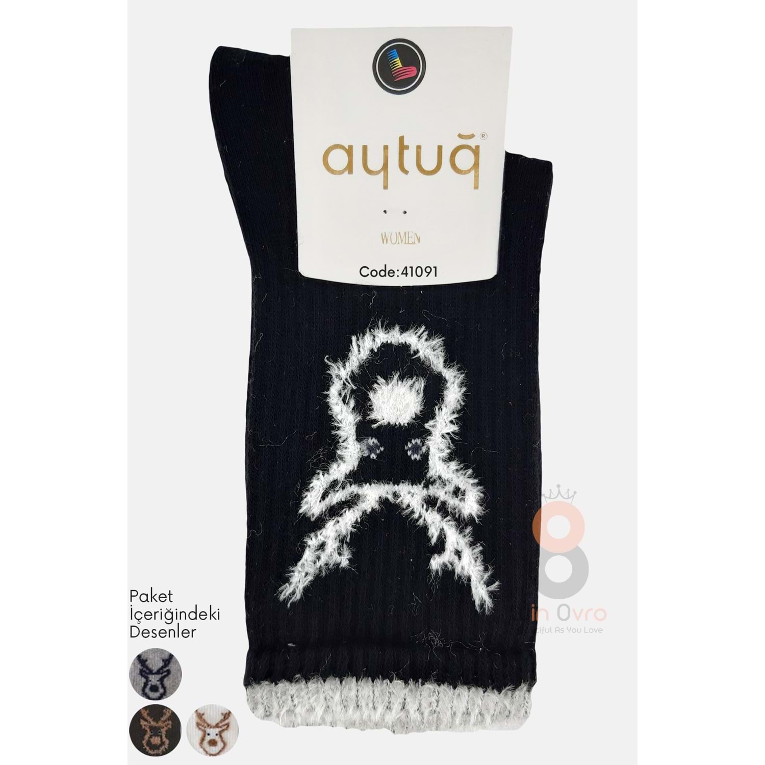 Aytuğ Kadın Figür İşlemeli Soket Çorap Pamuklu 1 Adet - Asorti Renk