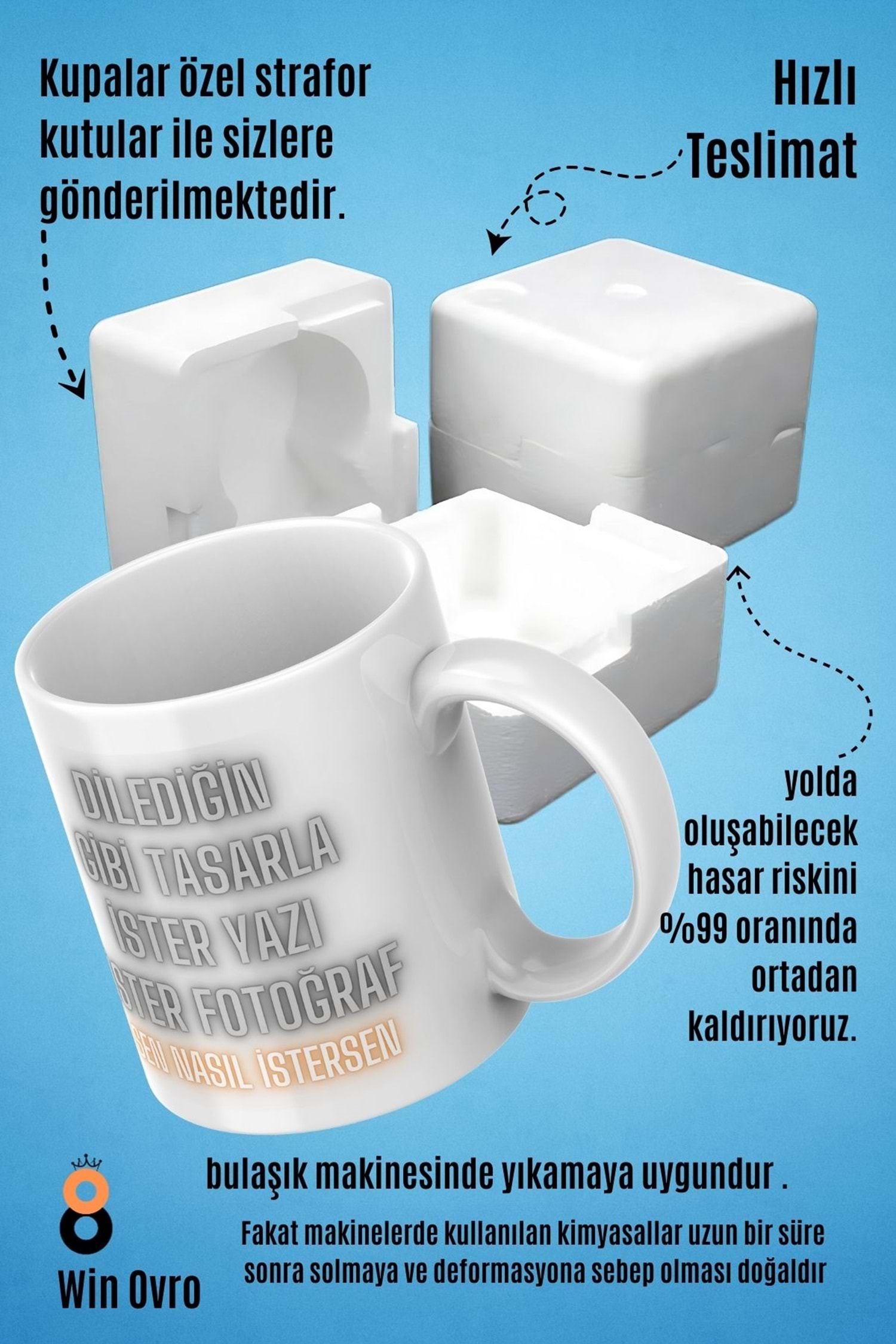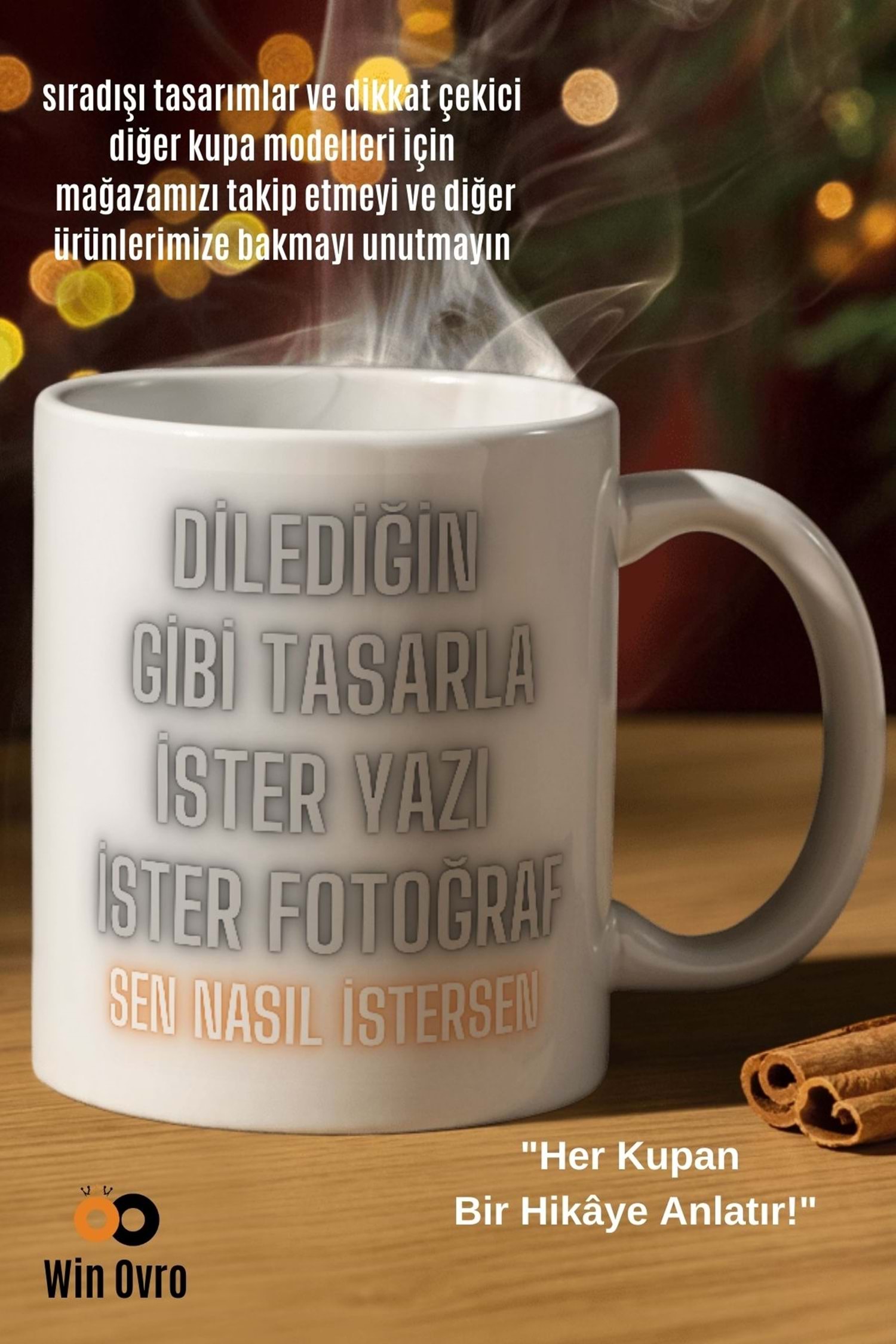 Win Ovro Premium Porselen Hediye Çift Yön Baskı Kupa Bardak - Kişiye Özel Tasarım Sen Nasıl İstersen