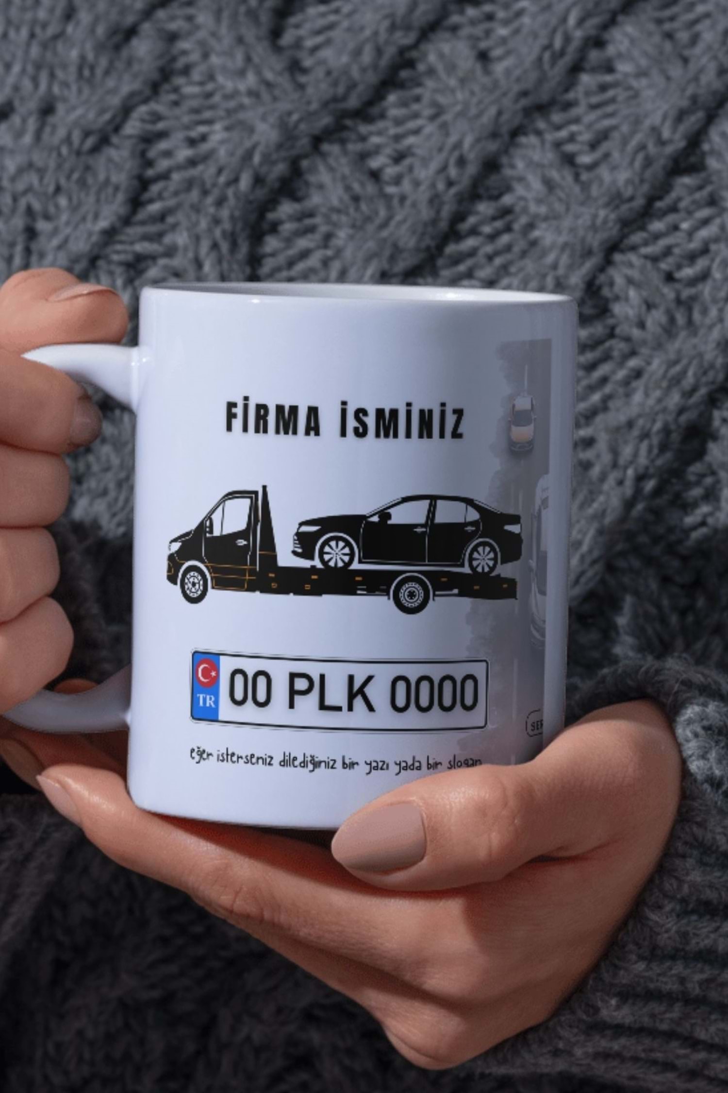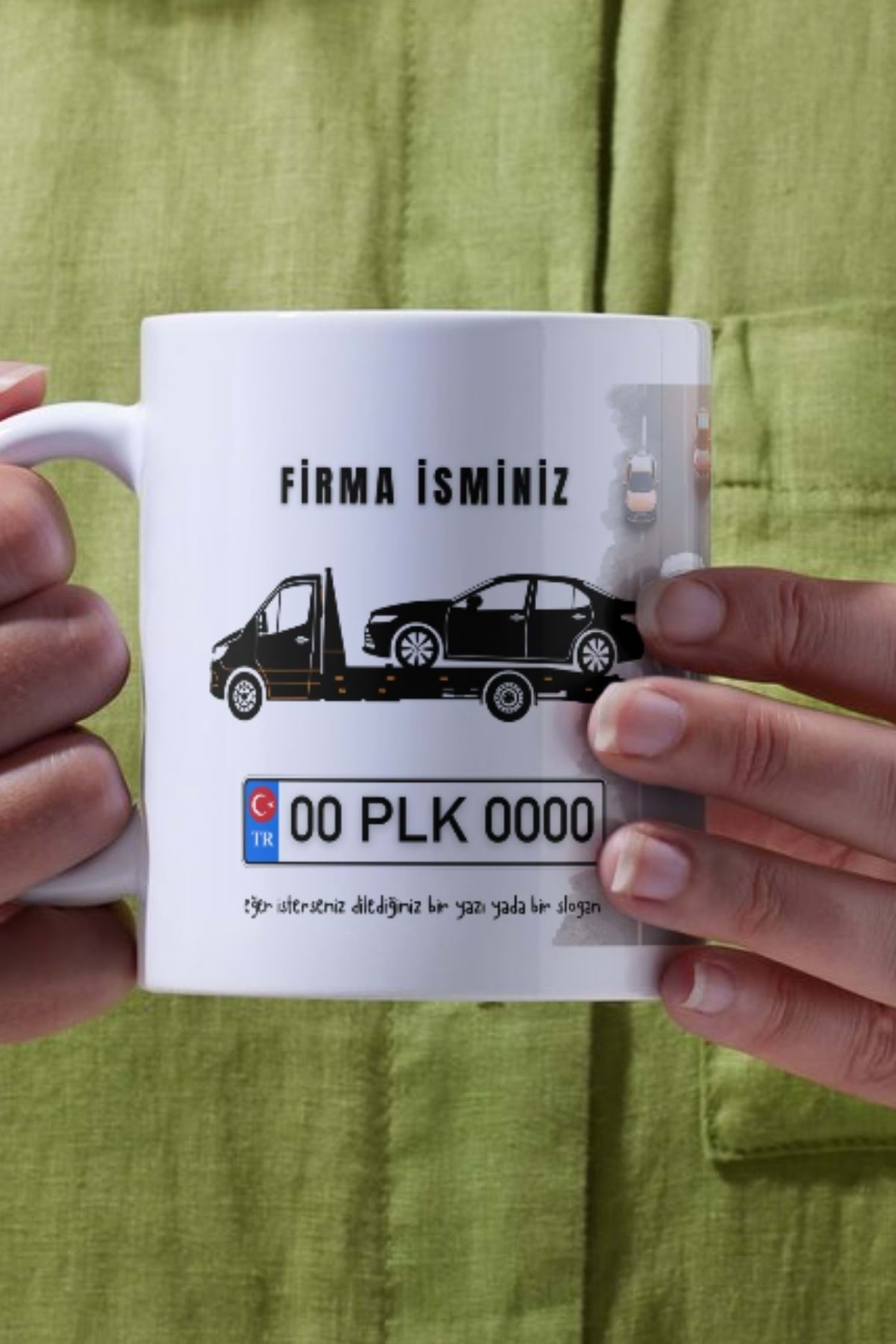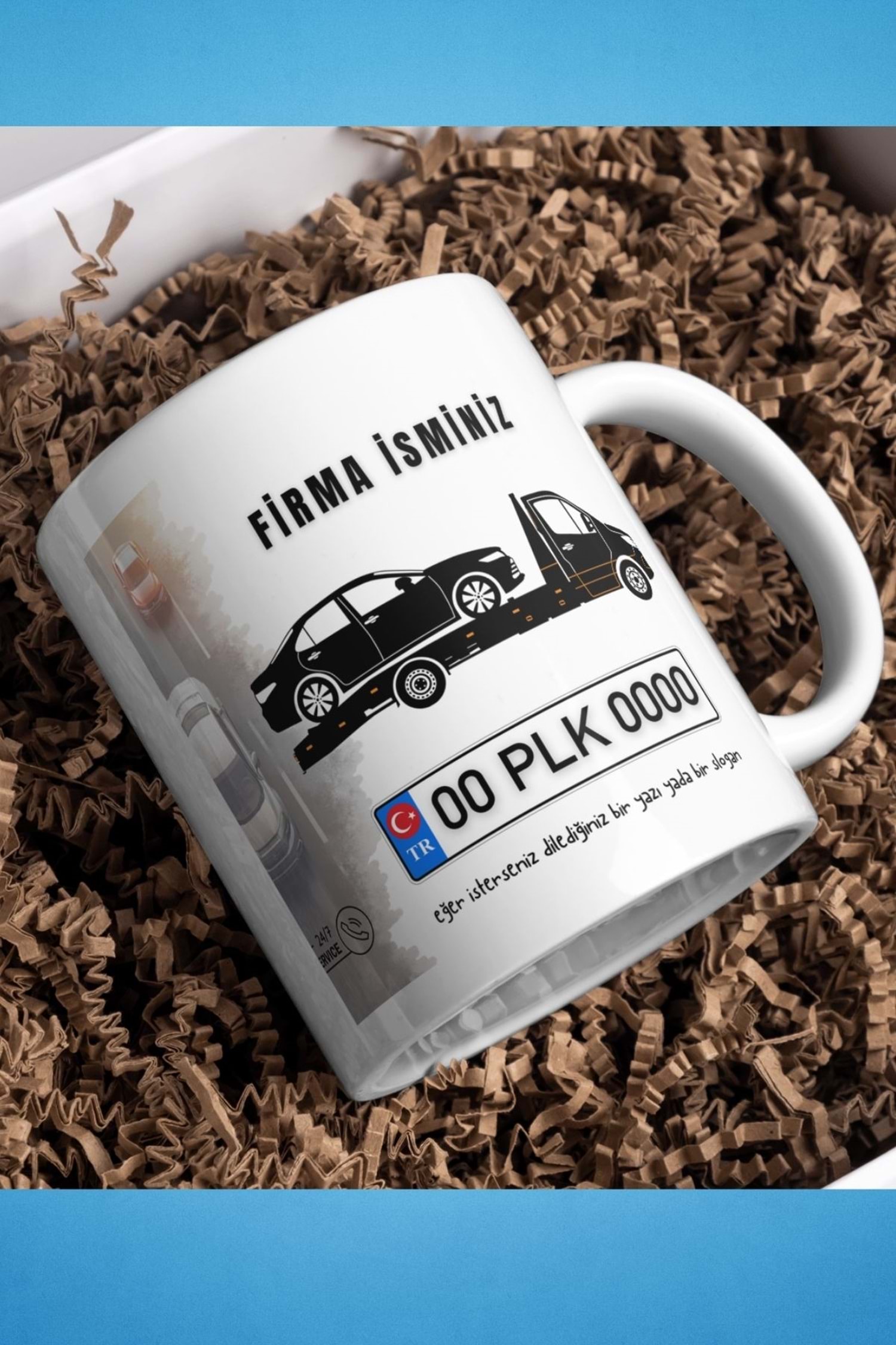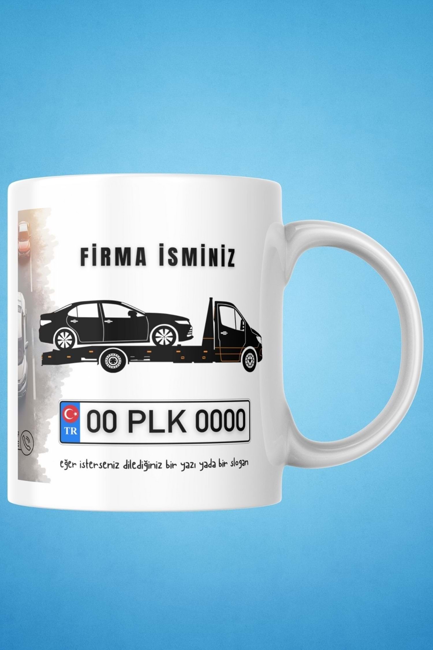 Win Ovro Beyaz Porselen Çiftyön Baskı Kupa Bardak Oto Çekici Kurtarıcı Yol Yardım Kişiye Özel Tasarı