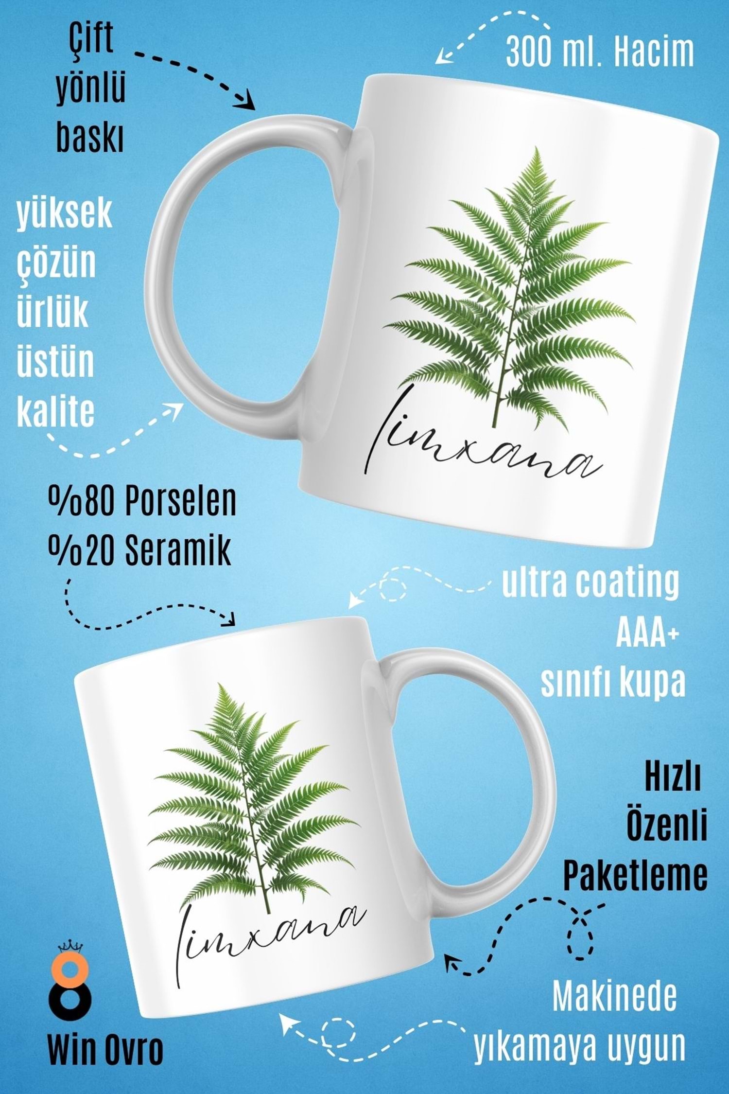 Win Ovro Premium Beyaz Porselen Hediye Çift Yön Baskılı Kupa Bardak - Eğrelti Otu Limhana Limxana