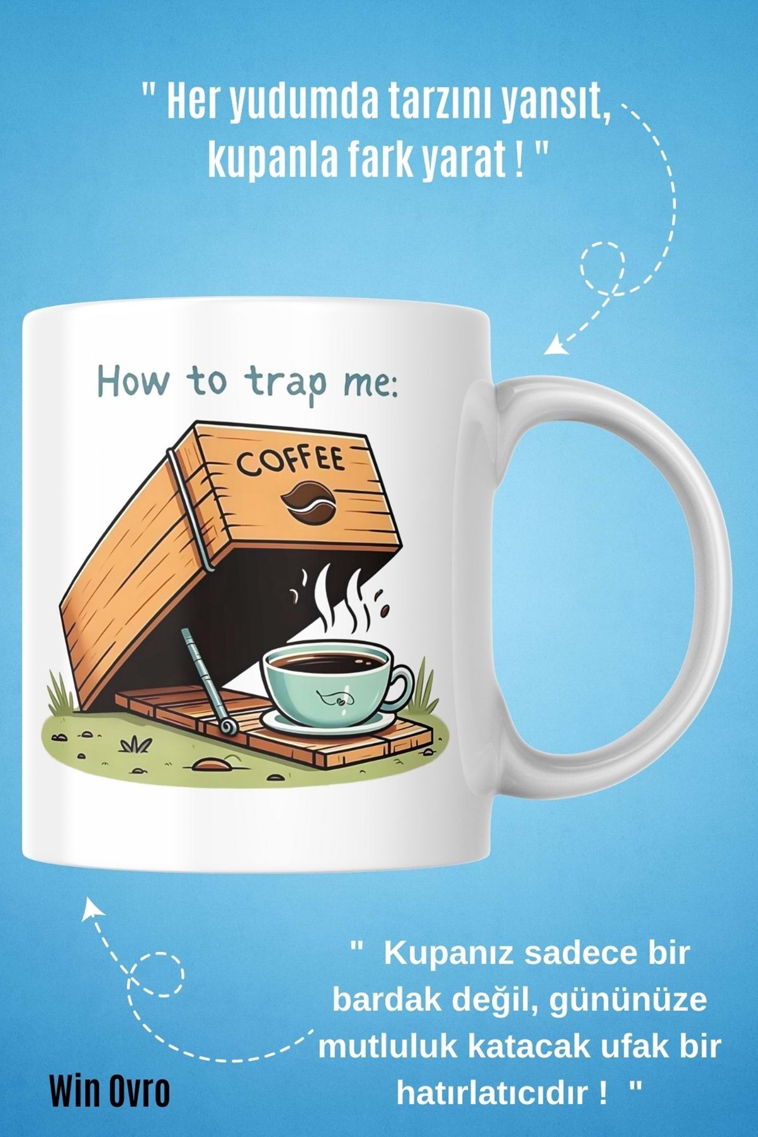 Win Ovro Premium Beyaz Porselen Hediye Çift Yön Baskılı Kupa Bardak - How to Trap me Coffee