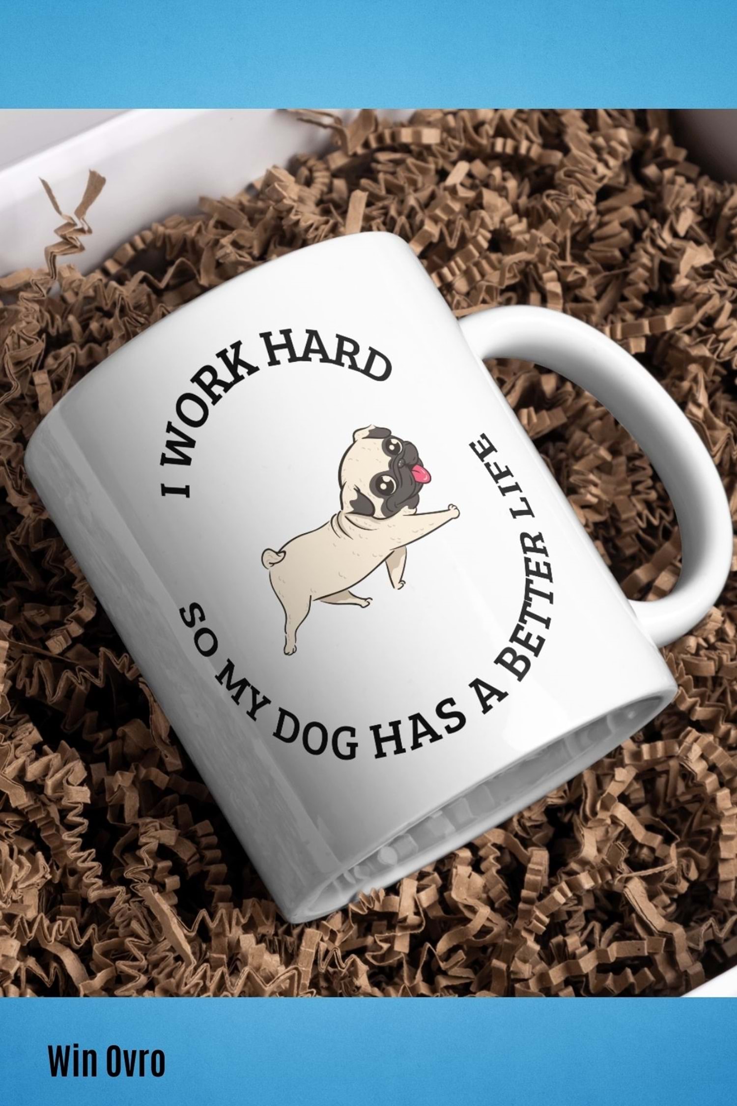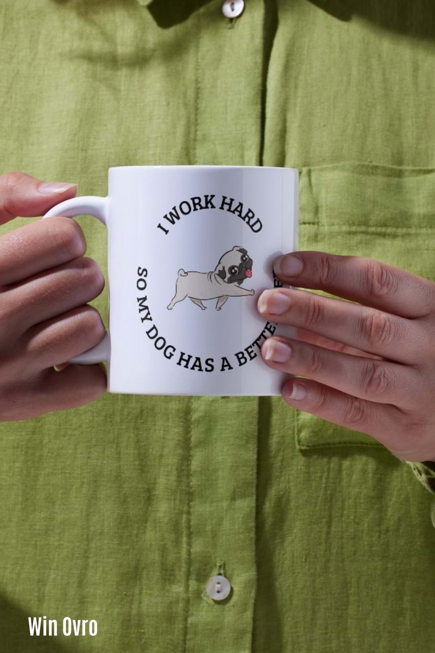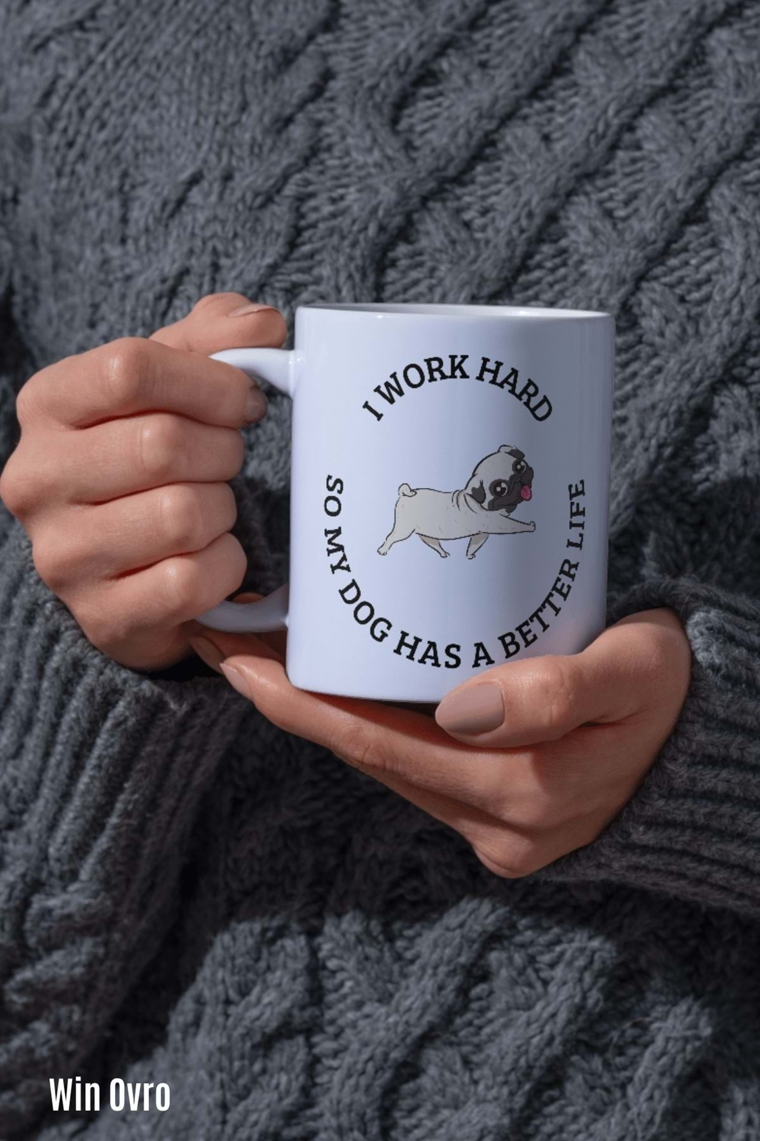 Win Ovro Premium Beyaz Porselen Hediye Çift Yön Baskılı Kupa Bardak - I Work Hard So My Dog
