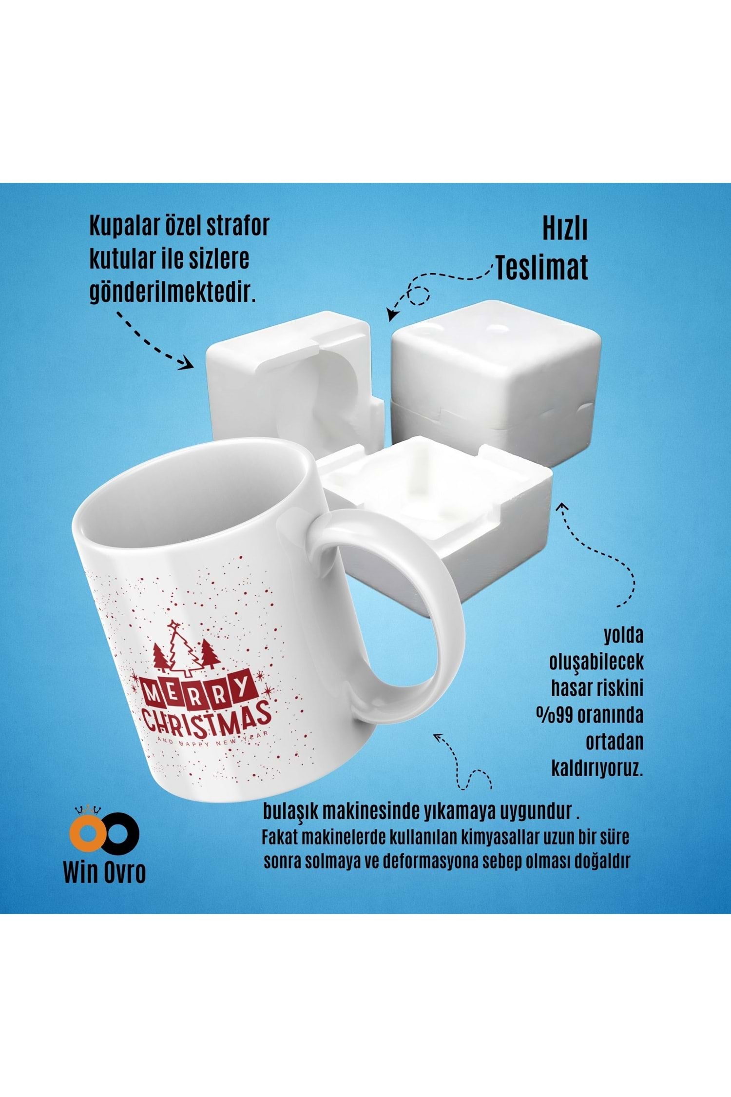 Win Ovro Premium Beyaz Porselen Hediye Çift Yön Baskılı Kupa Bardak - Merry Christmas Happy New 1
