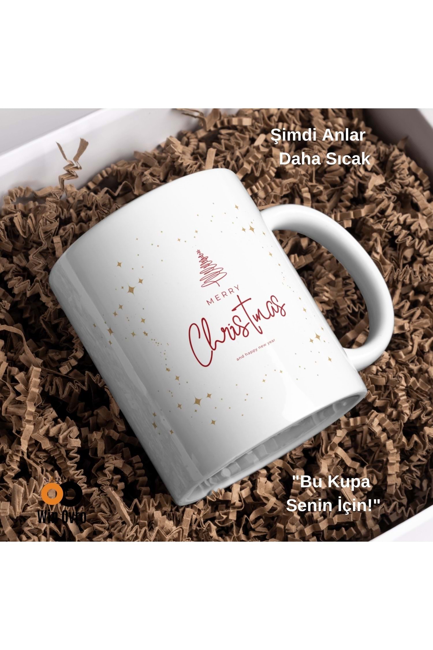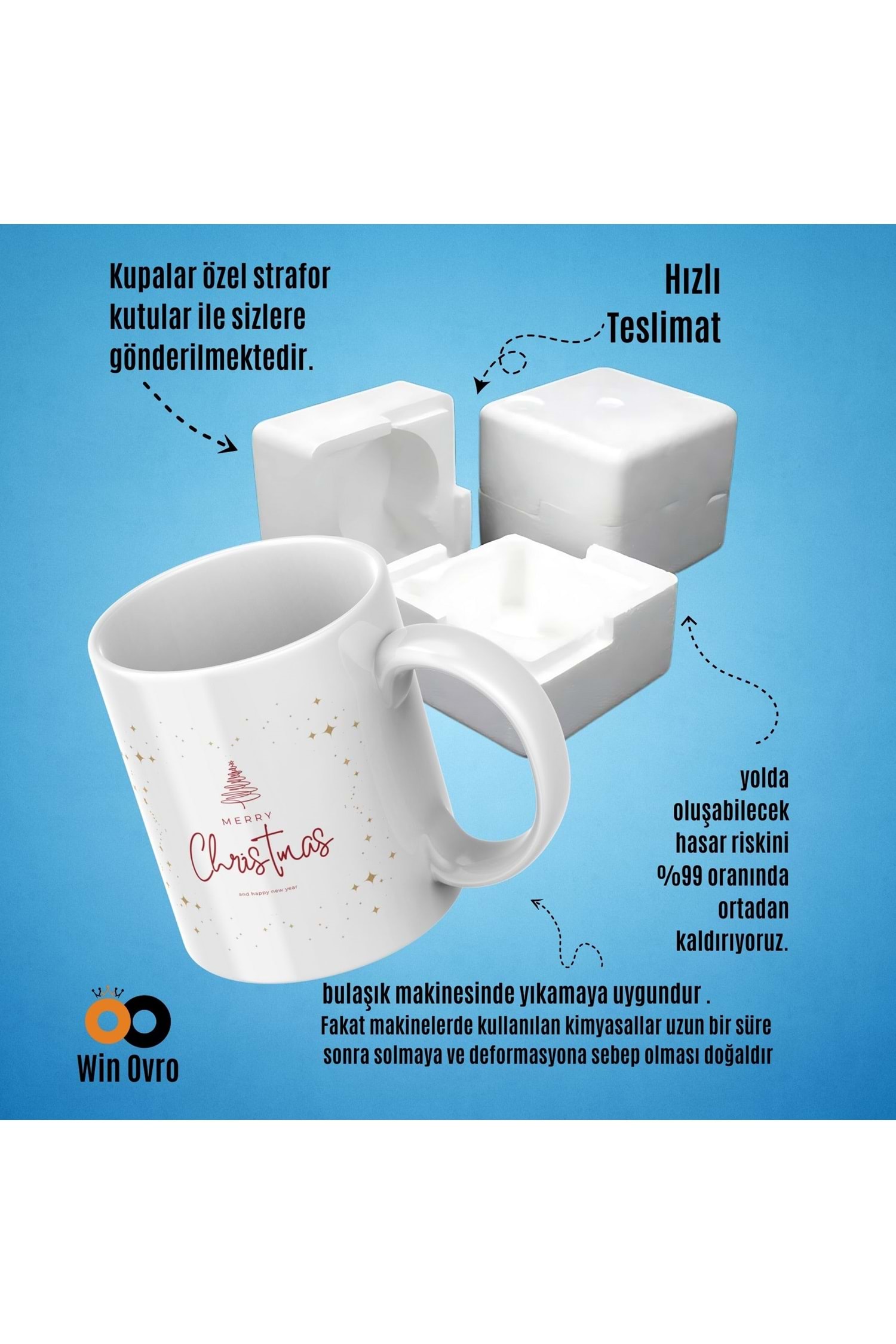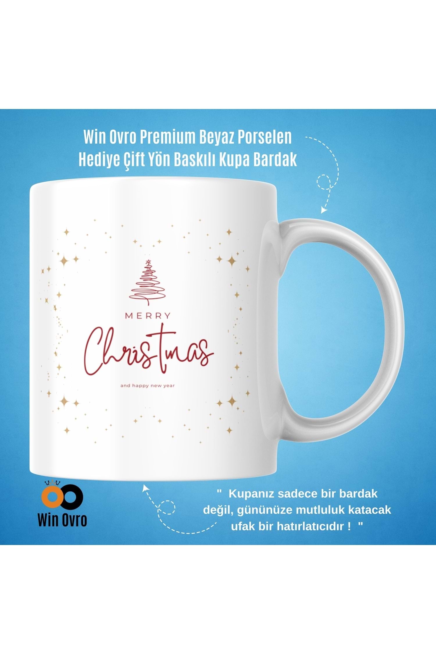 Win Ovro Premium Beyaz Porselen Hediye Çift Yön Baskılı Kupa Bardak - Merry Christmas Happy New 2