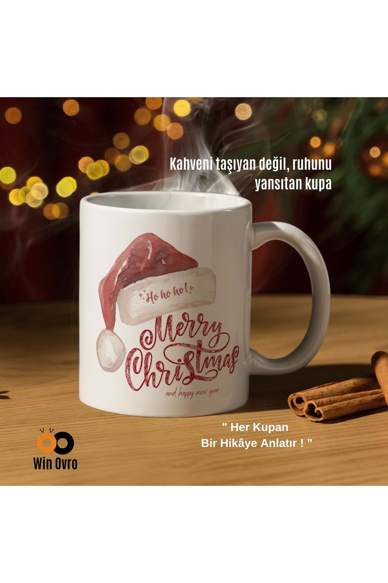 Win Ovro Premium Beyaz Porselen Hediye Çift Yön Baskılı Kupa Bardak - Merry Christmas Happy New 5
