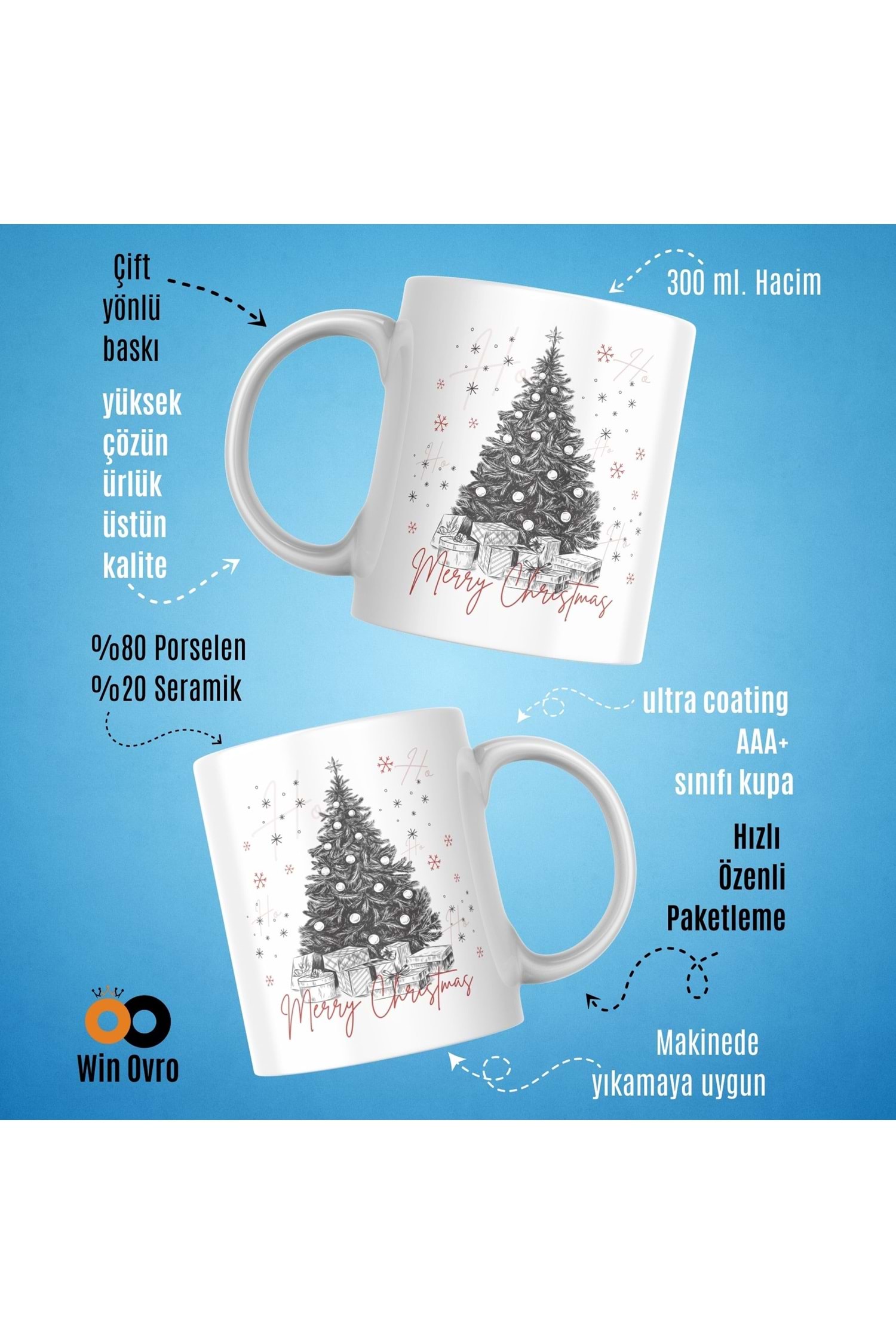 Win Ovro Premium Beyaz Porselen Hediye Çift Yön Baskılı Kupa Bardak - Merry Christmas Happy New Ye