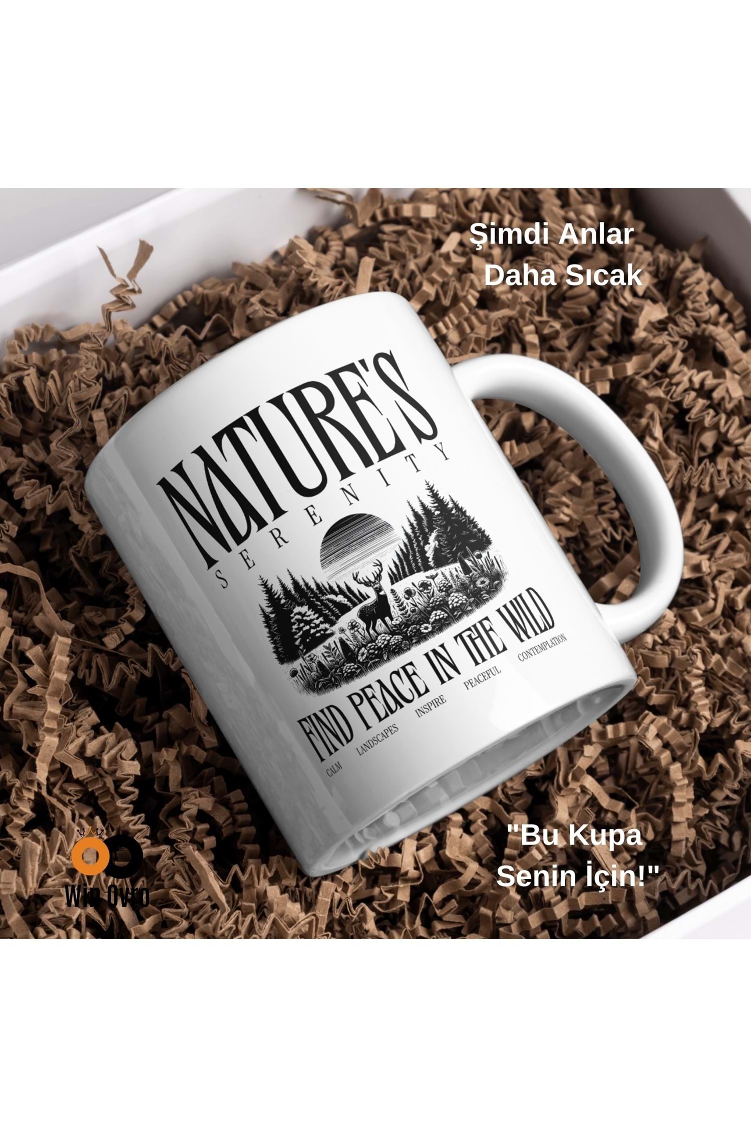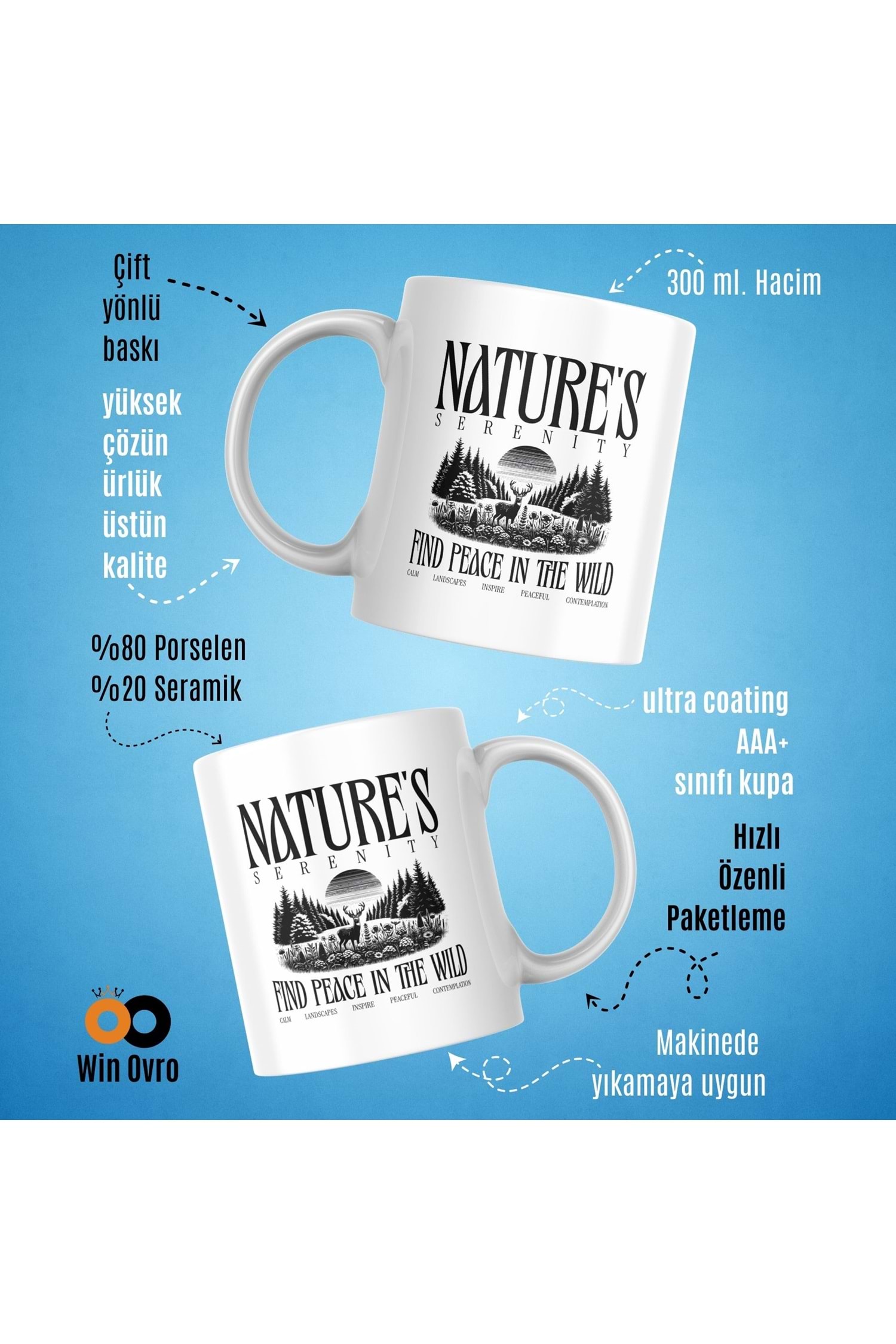 Win Ovro Premium Beyaz Porselen Hediye Çift Yön Baskılı Kupa Bardak - Nature s Serenity