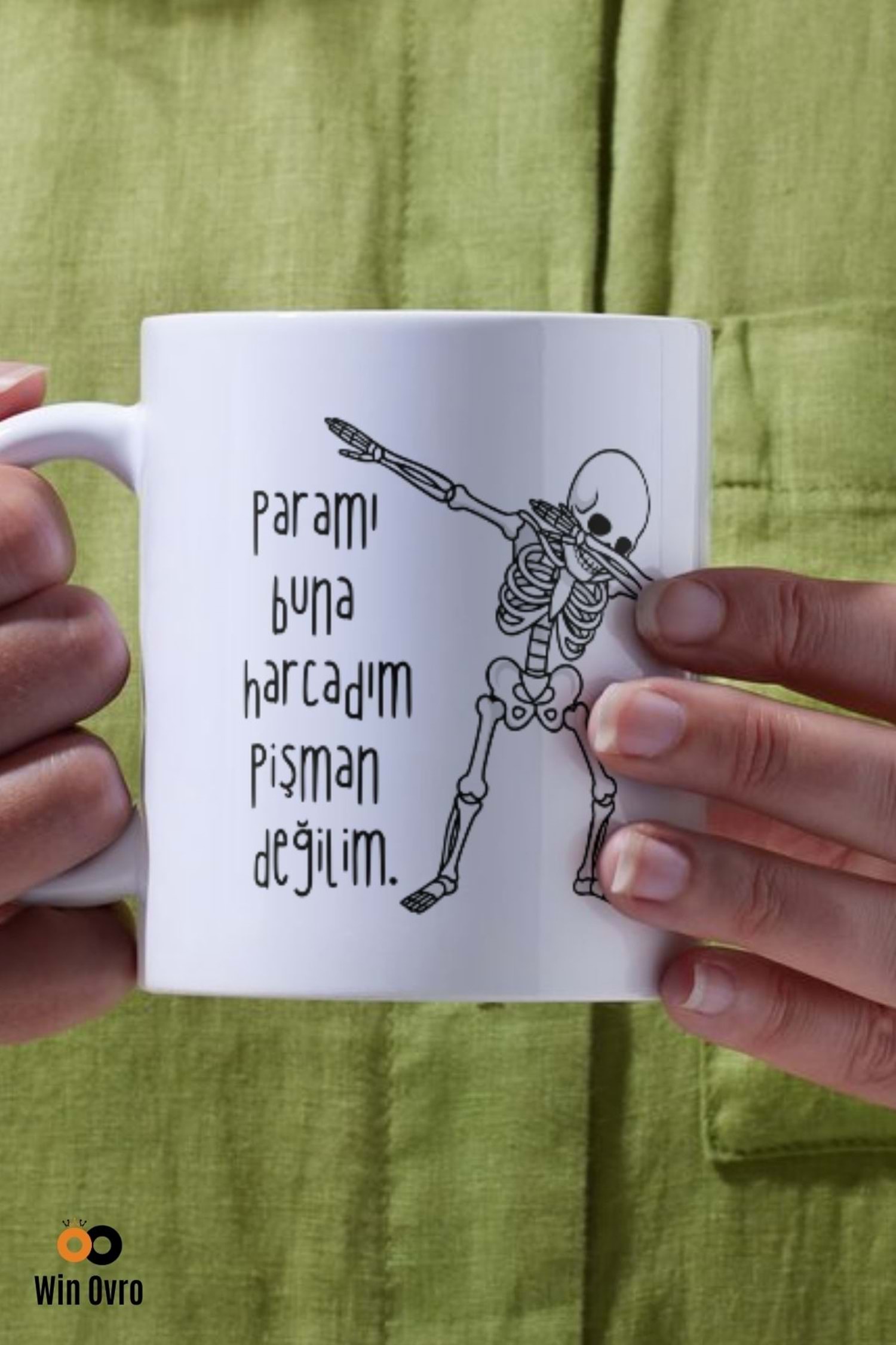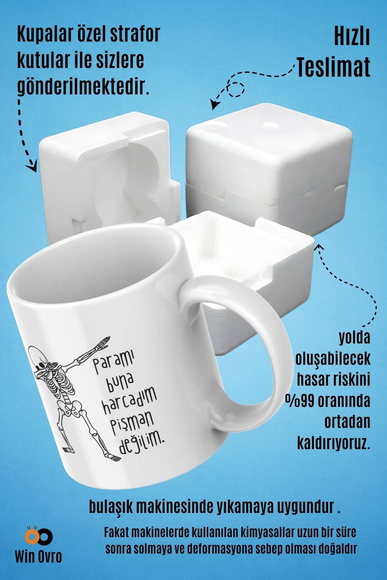Win Ovro Premium Beyaz Porselen Hediye Çift Yön Baskılı Kupa Bardak - Pişman Değilim