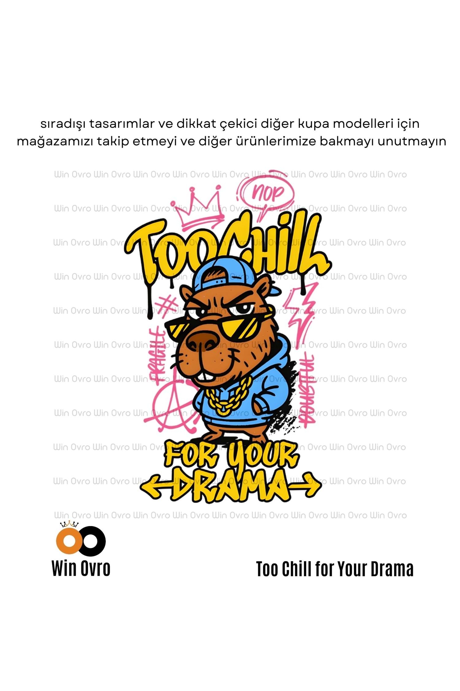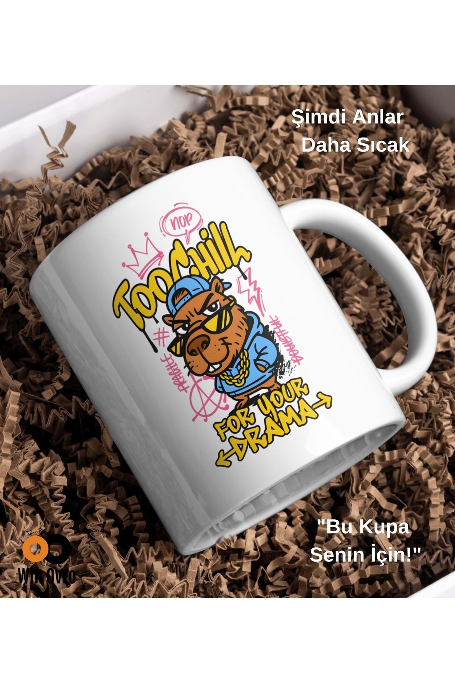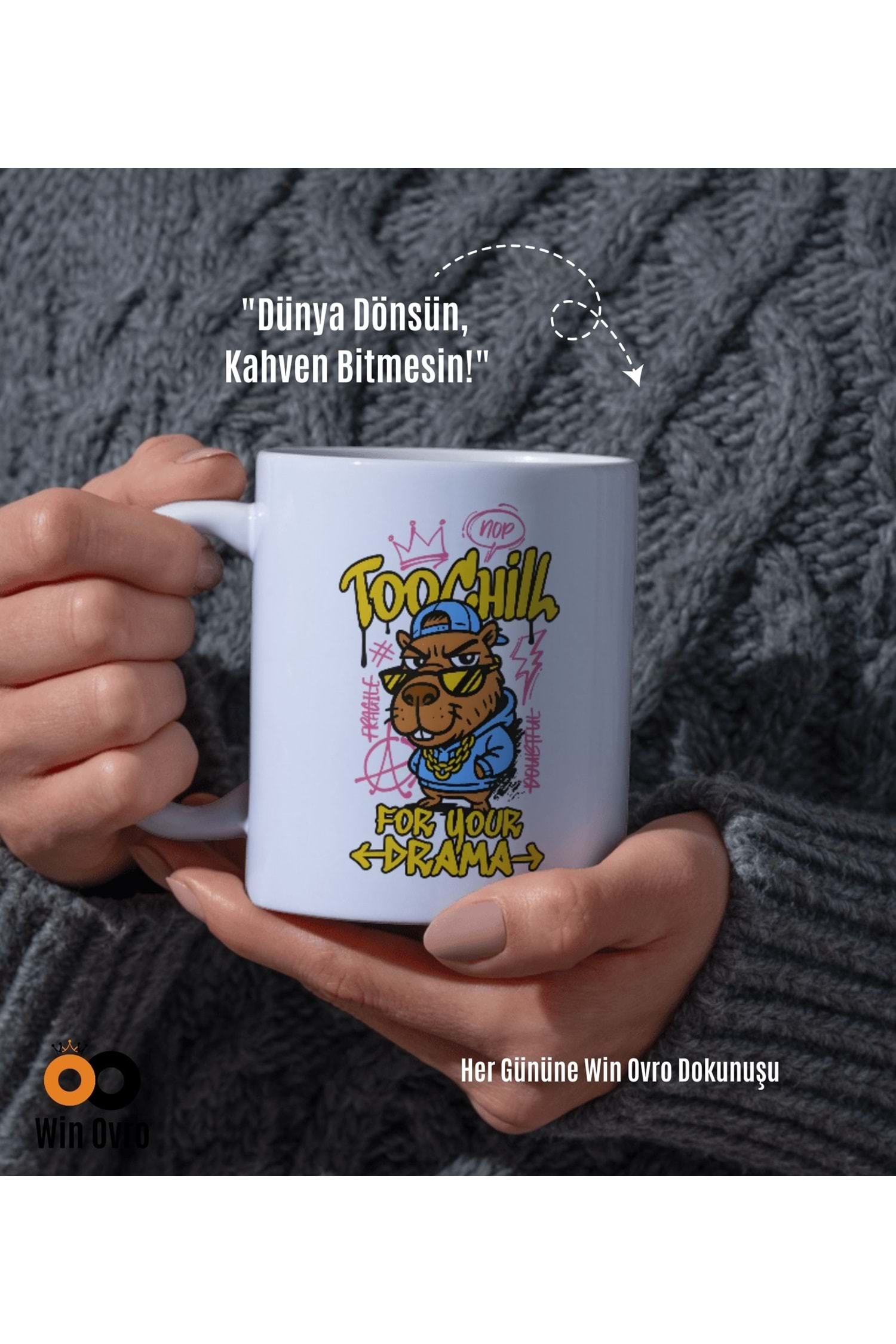 Win Ovro Premium Beyaz Porselen Hediye Çift Yön Baskılı Kupa Bardak - Too Chill For Your Drama