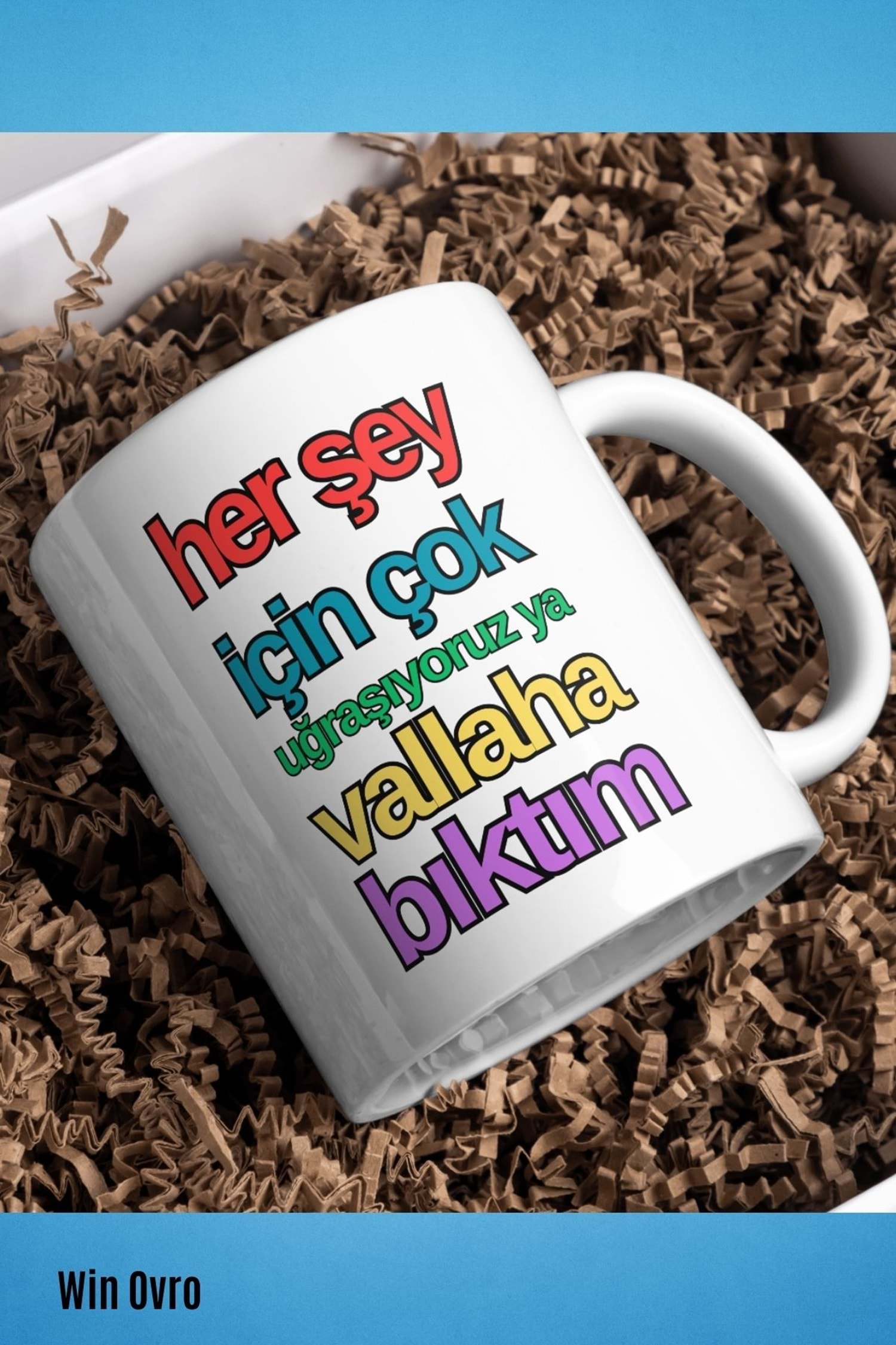 Win Ovro Premium Beyaz Porselen Hediye Çift Yön Baskılı Kupa Bardak - Vallaha Bıktım