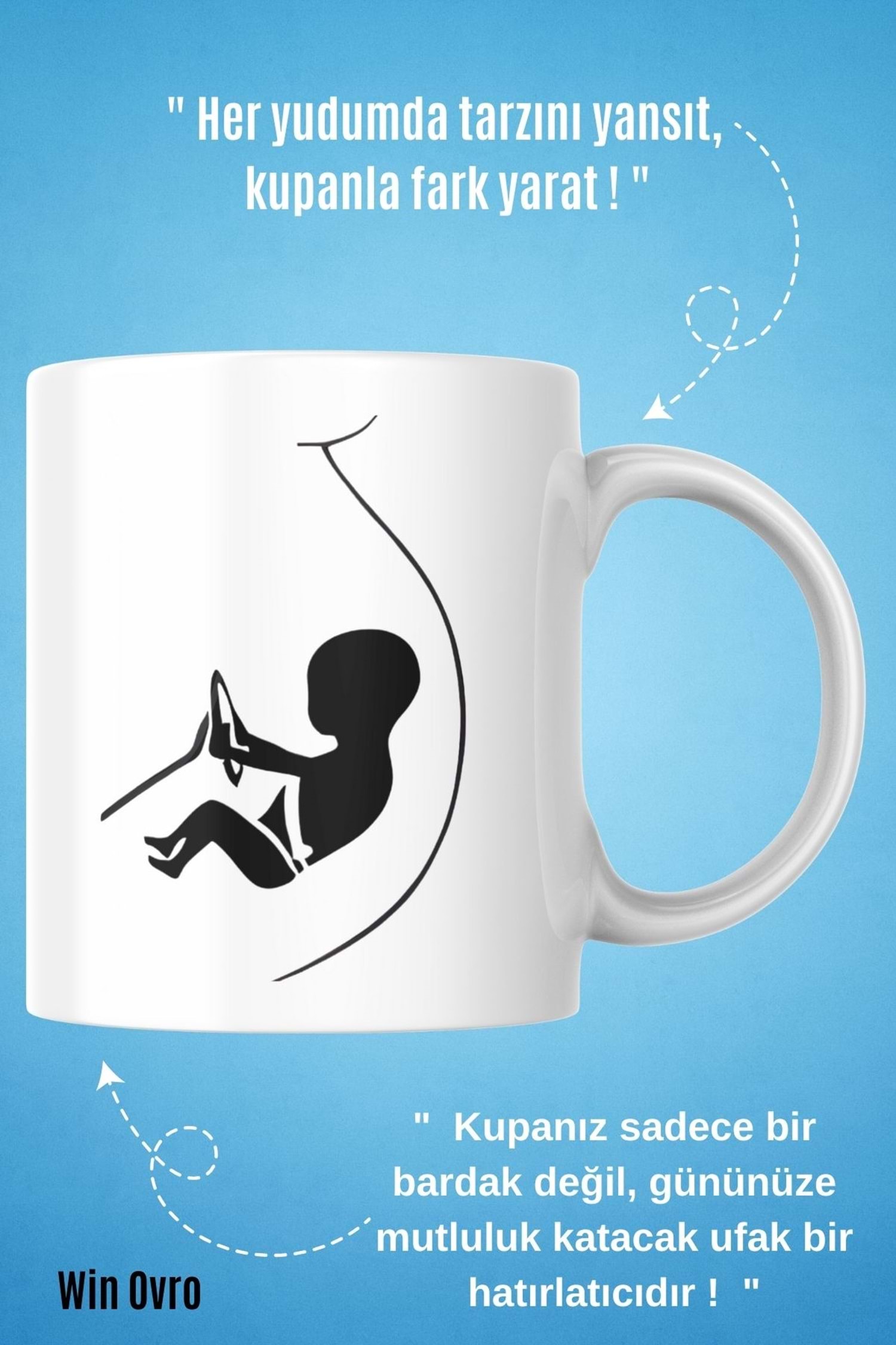Win Ovro Premium Beyaz Porselen Hediye Kupa Bardak Çift Yön Baskı - Ruh Melodisi Ölümsüz Ritim