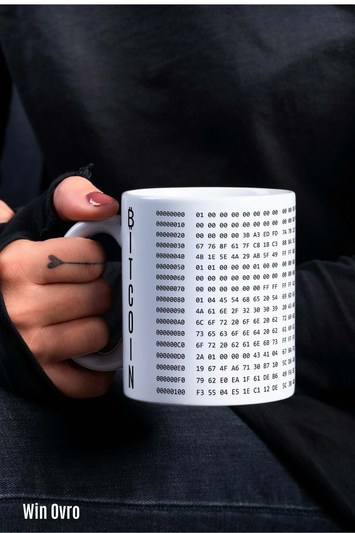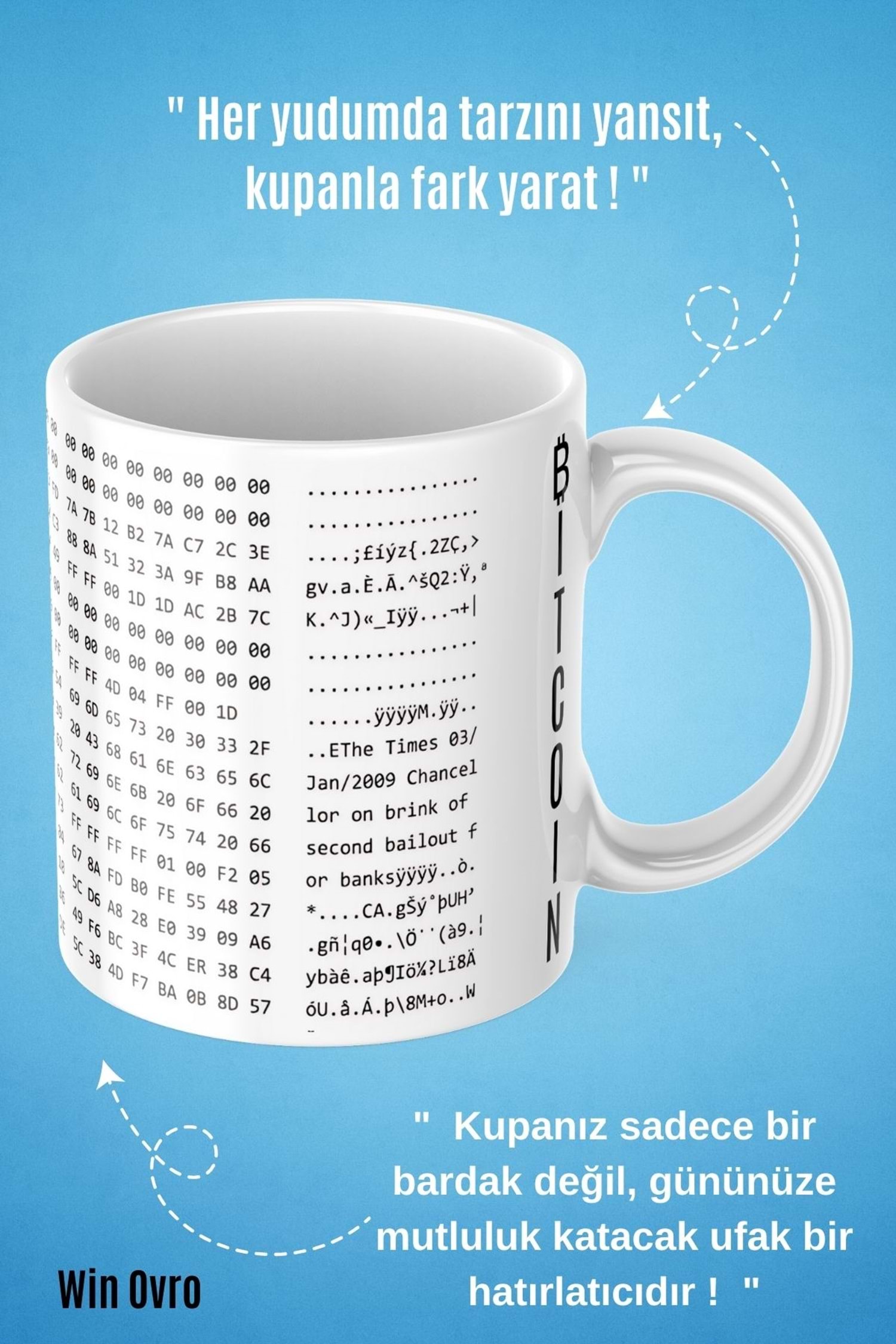 Win Ovro Premium Beyaz Porselen Hediye Çift Yön Baskılı Kupa Bardak - Bitcoin Origin Block