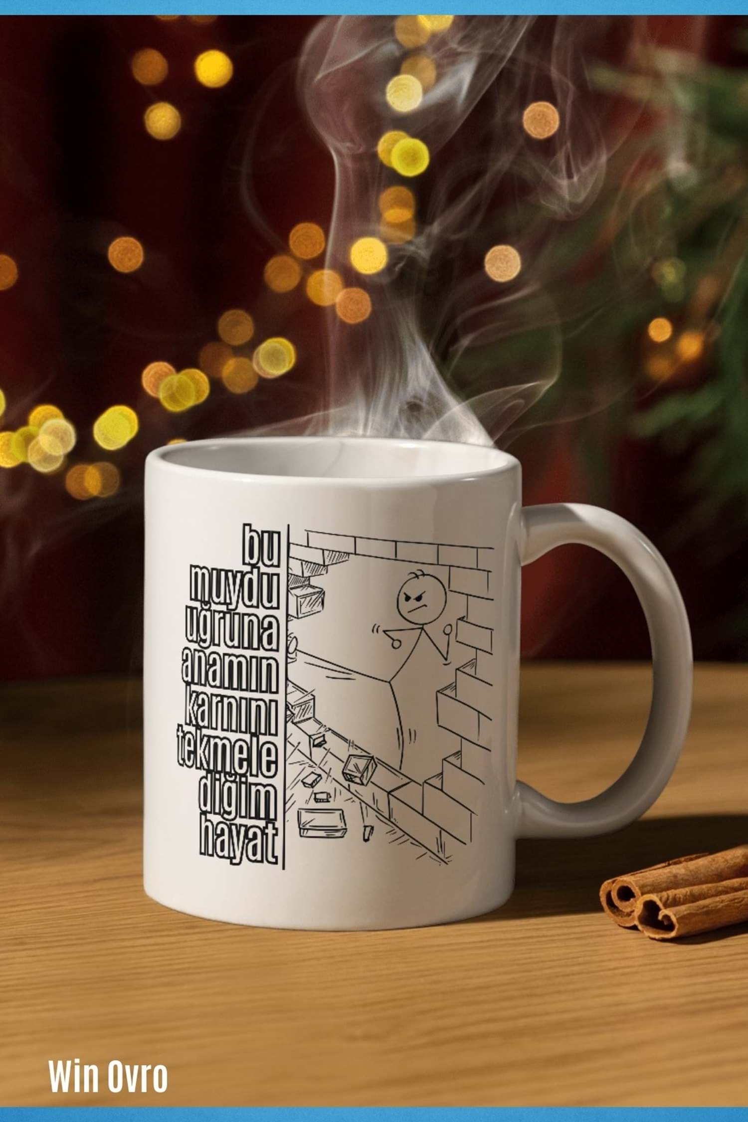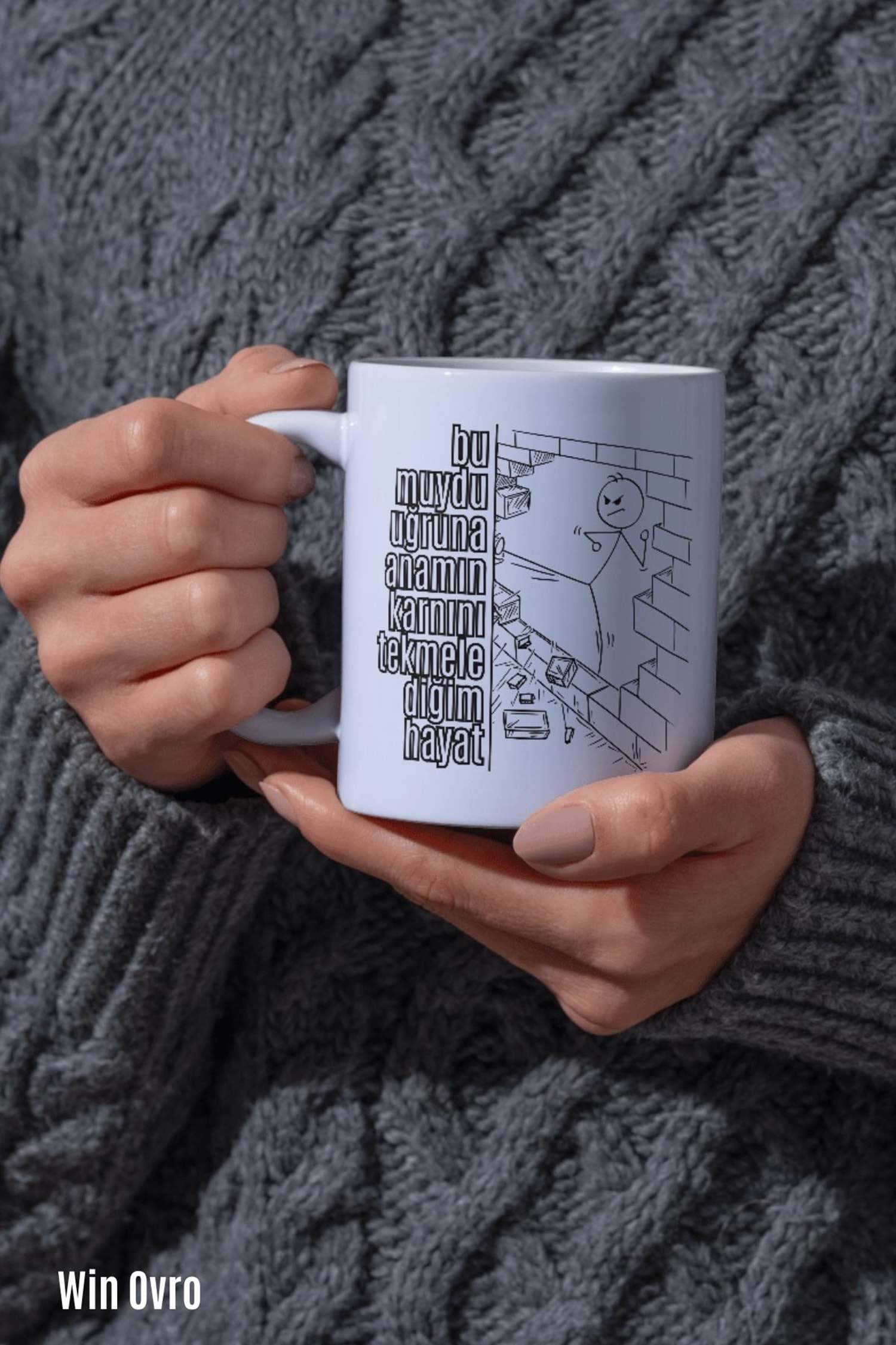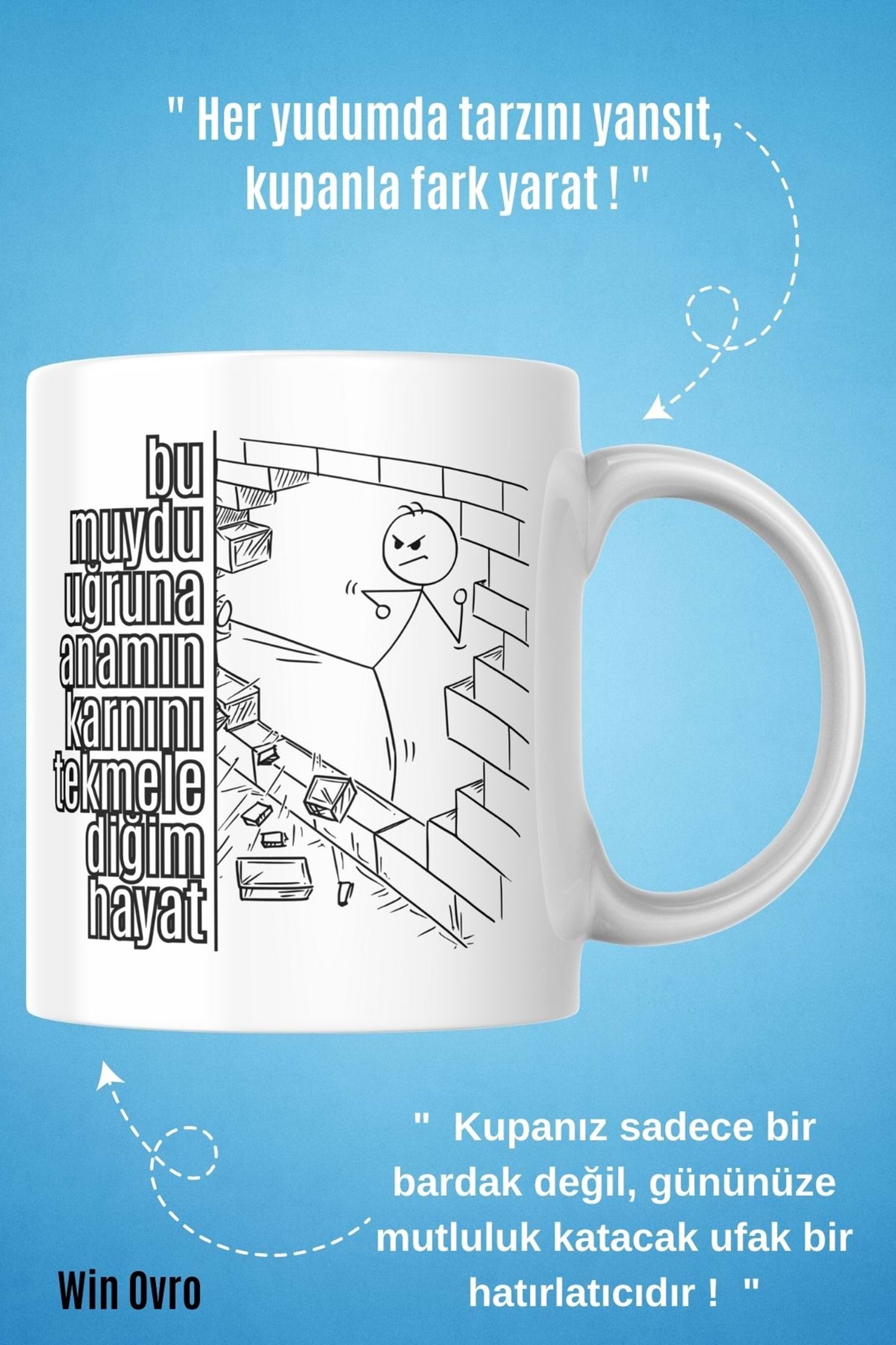 Win Ovro Premium Beyaz Porselen Hediye Çift Yön Baskılı Kupa Bardak - Bu muydu uğruna anamın karnını