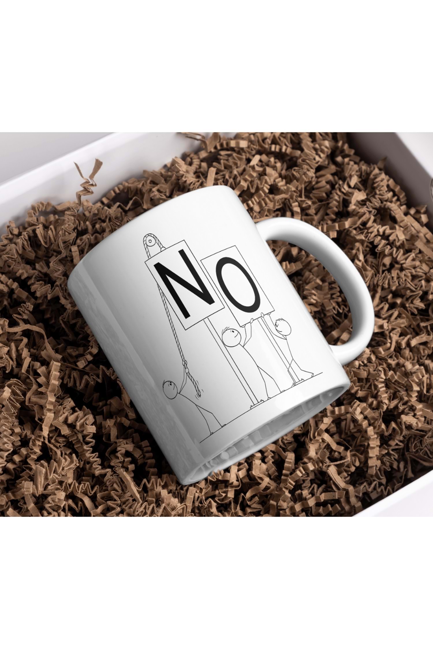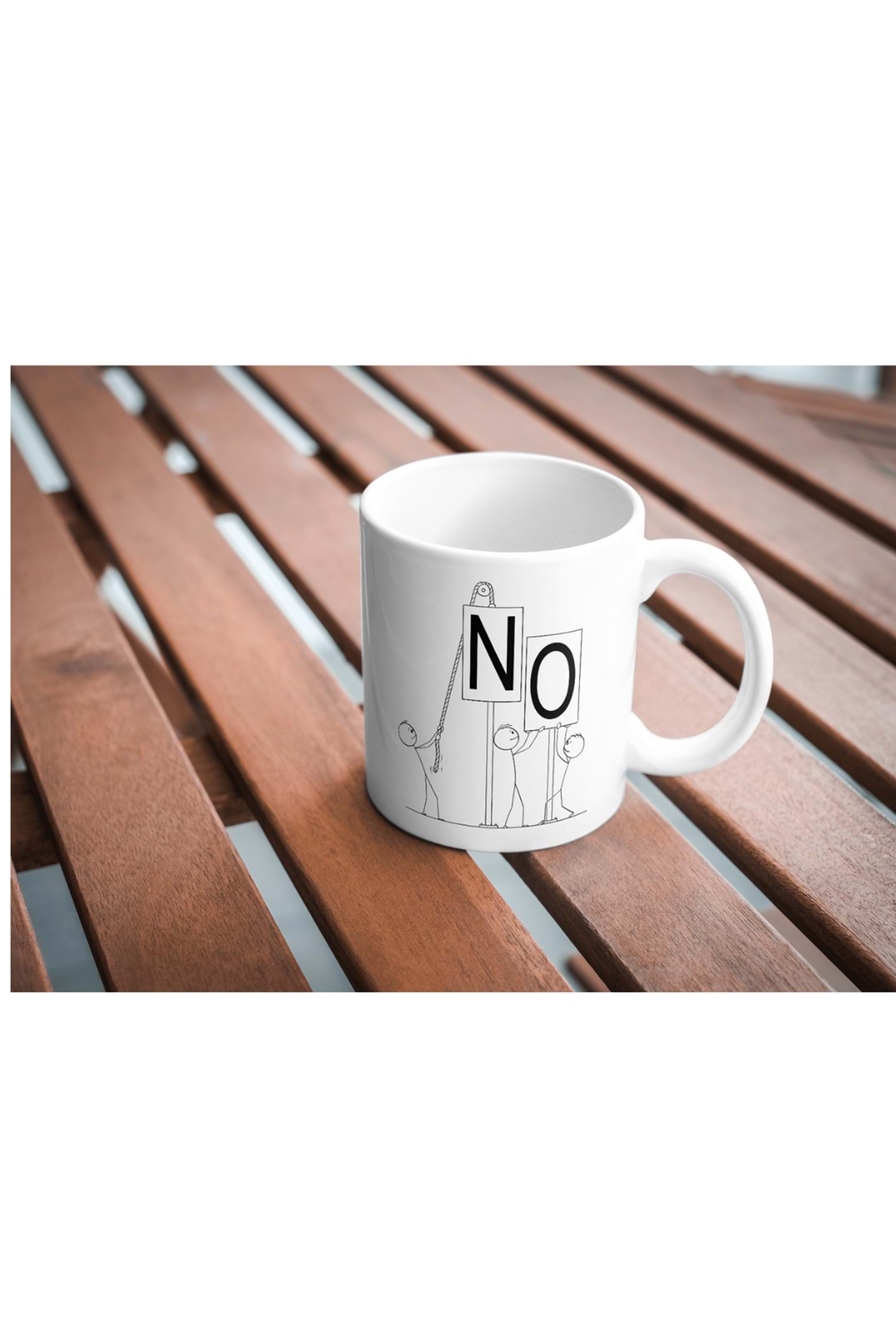 Win Ovro Premium Beyaz Porselen Hediye Kupa Bardak Çift Yön Baskı - Çizgiyle Anlat Çöp Adam No No