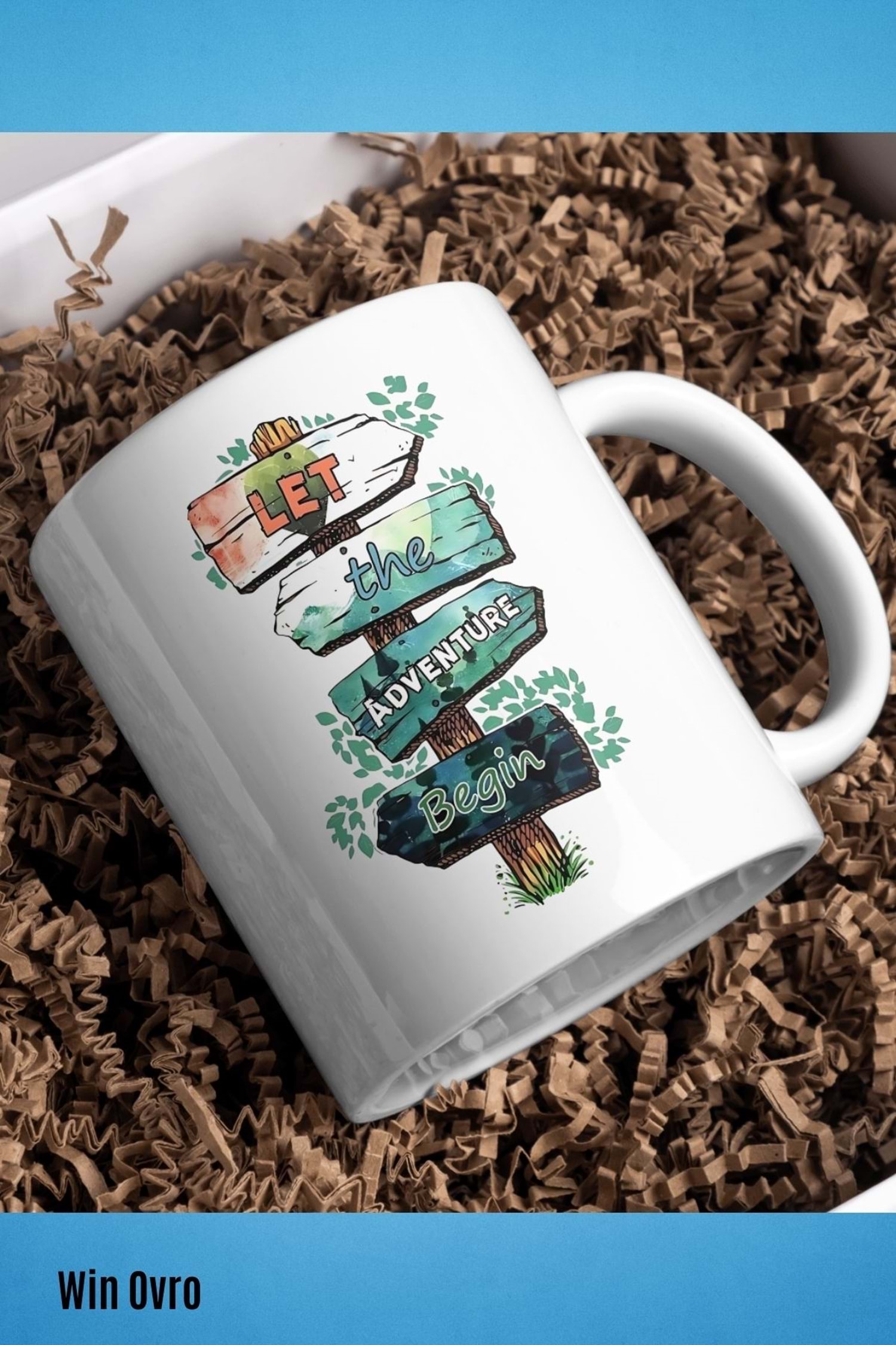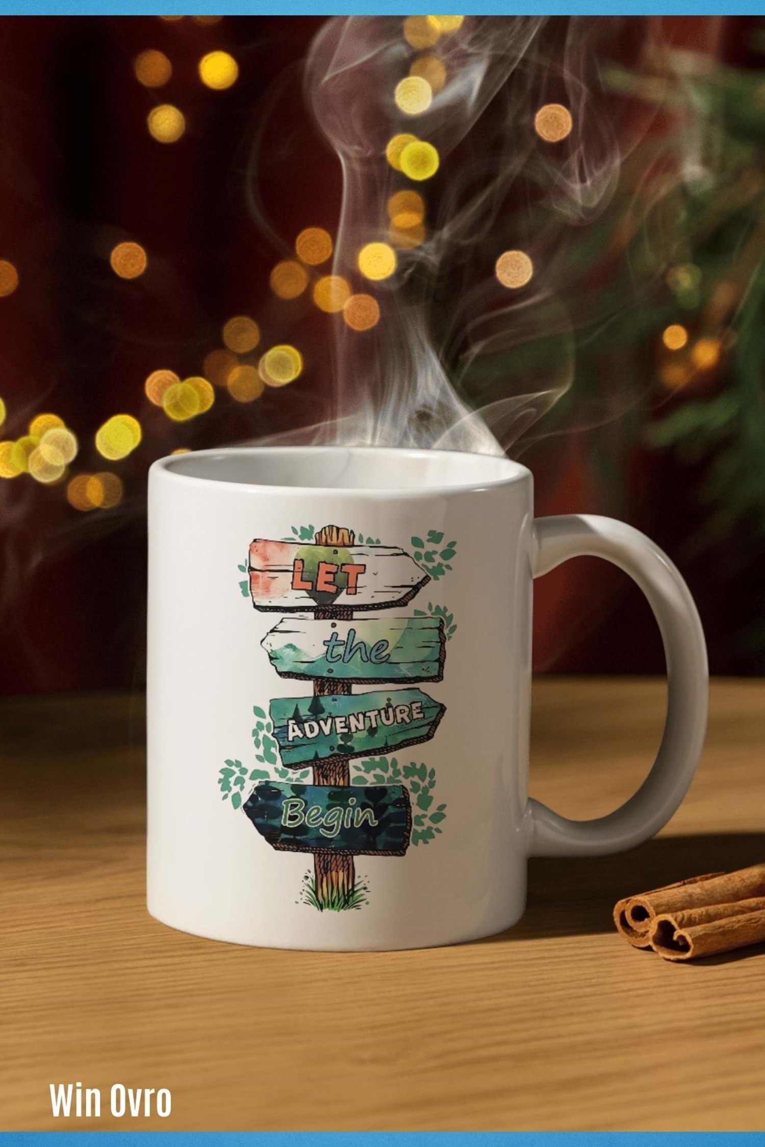 Win Ovro Premium Beyaz Porselen Hediye Kupa Bardak Çift Yön Baskı - Doğaya Çağrı Sınırları Aş