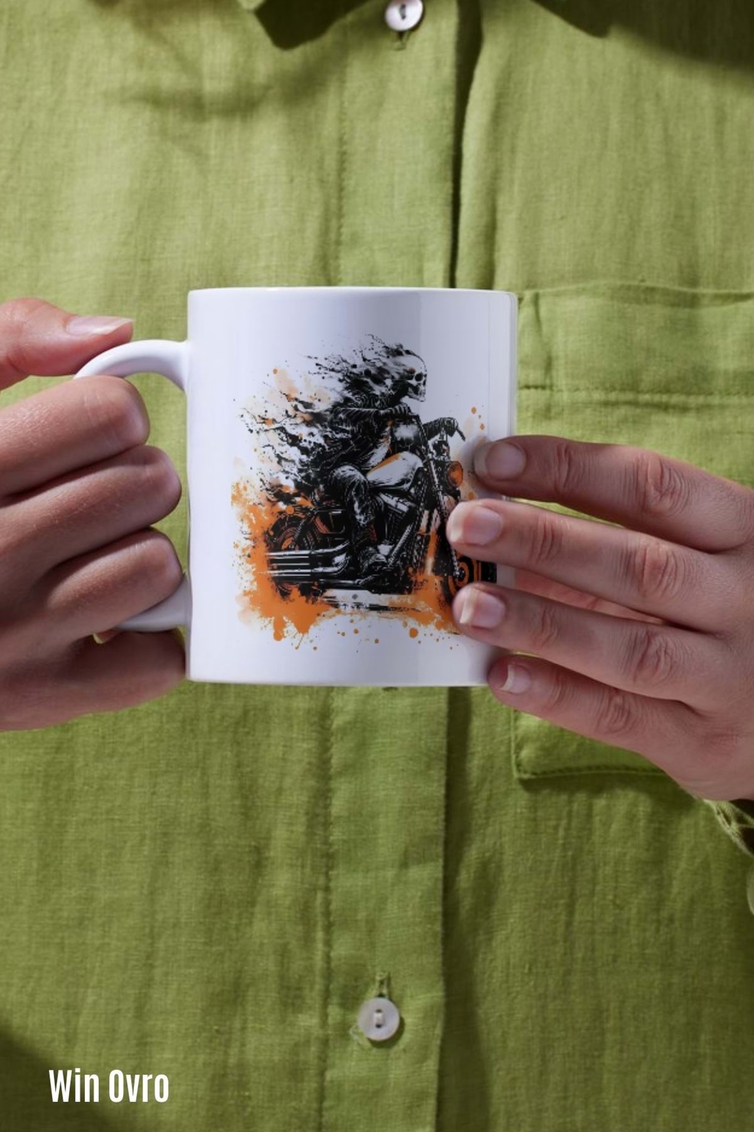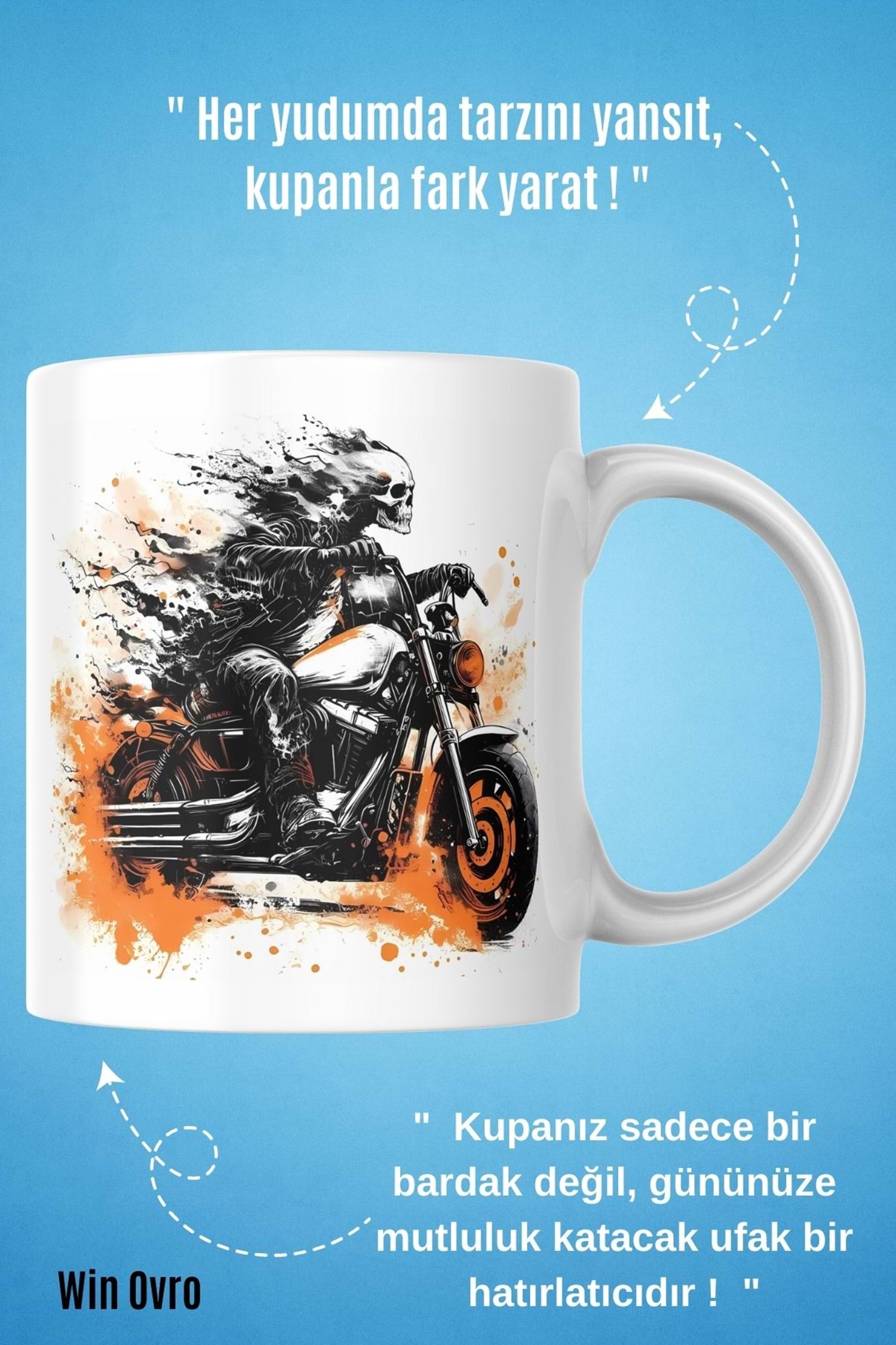 Win Ovro Premium Beyaz Porselen Hediye Kupa Bardak Çift Yön Baskı - Hot Motorcycle Art Motor