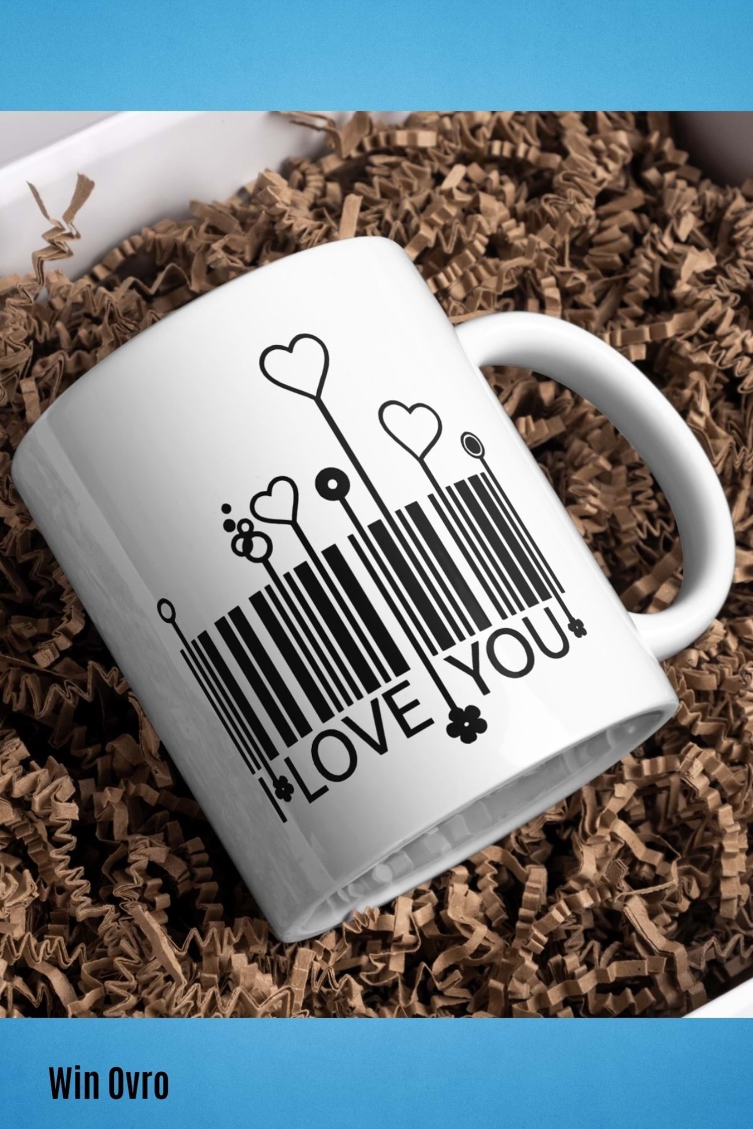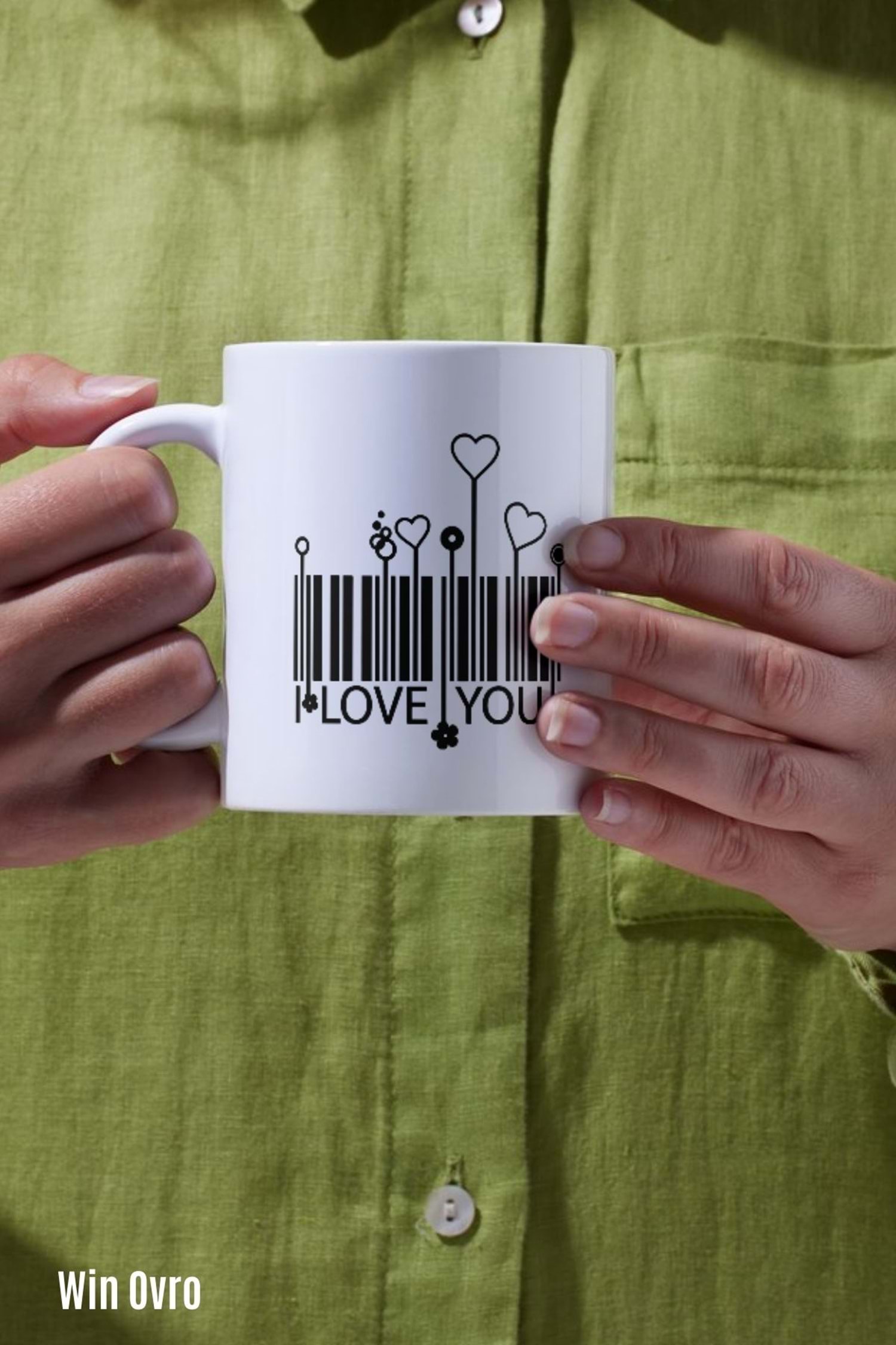 Win Ovro Premium Beyaz Porselen Hediye Kupa Bardak Çift Yön Baskı - I Love You Barkot