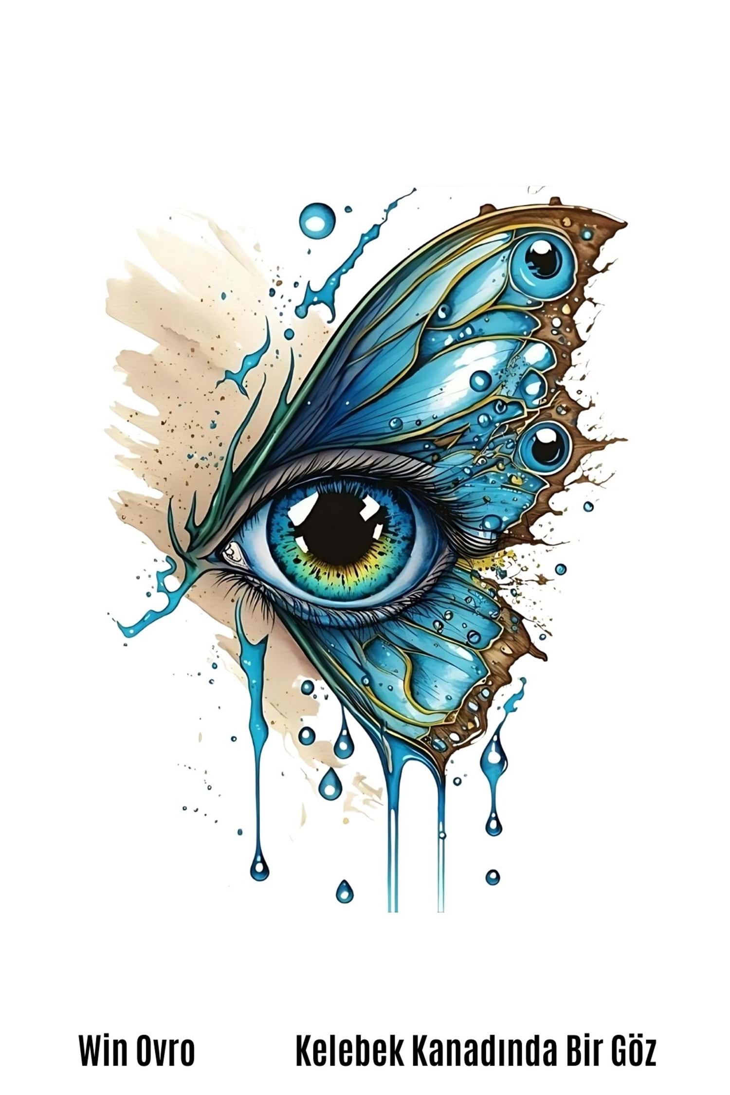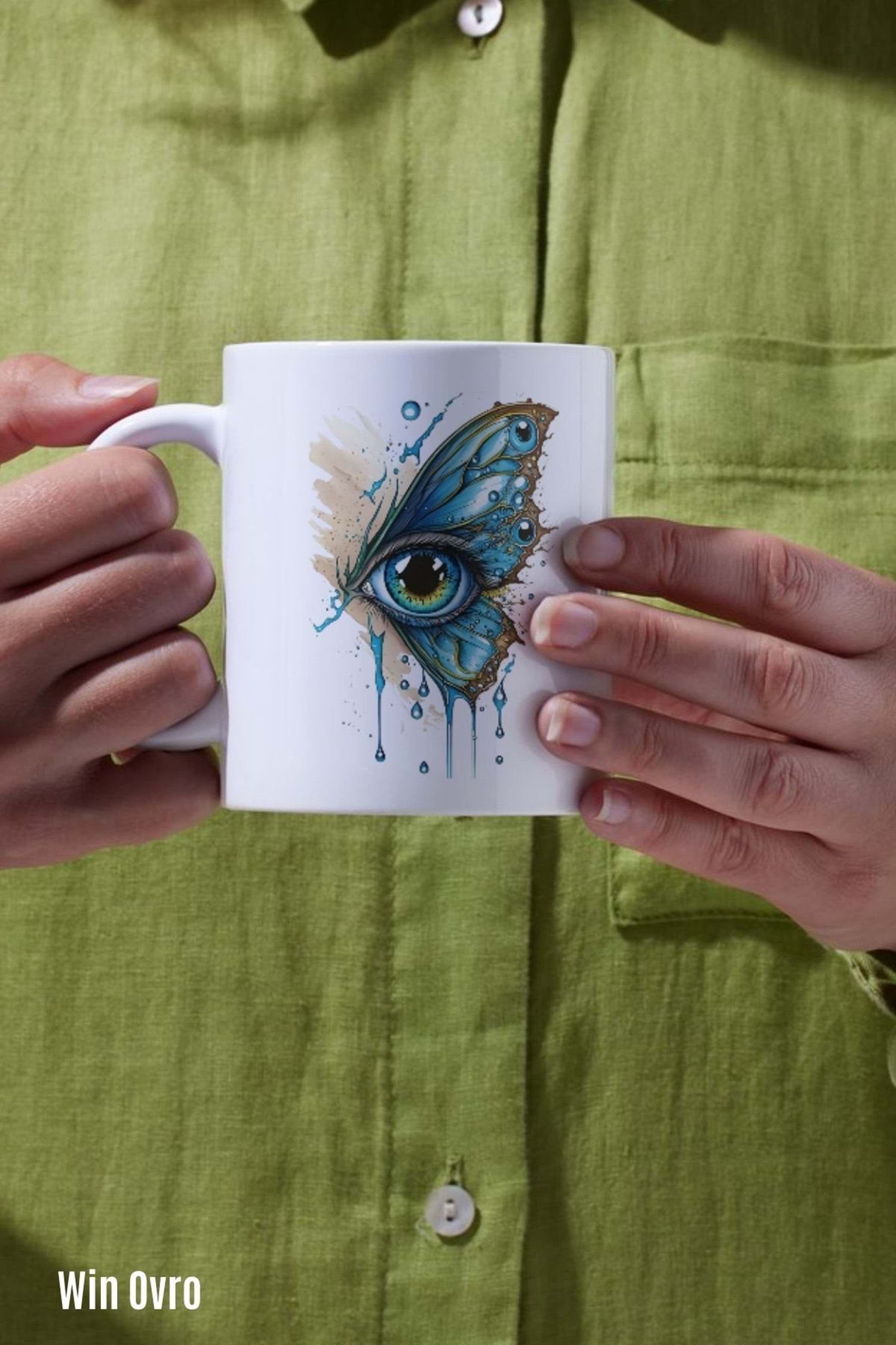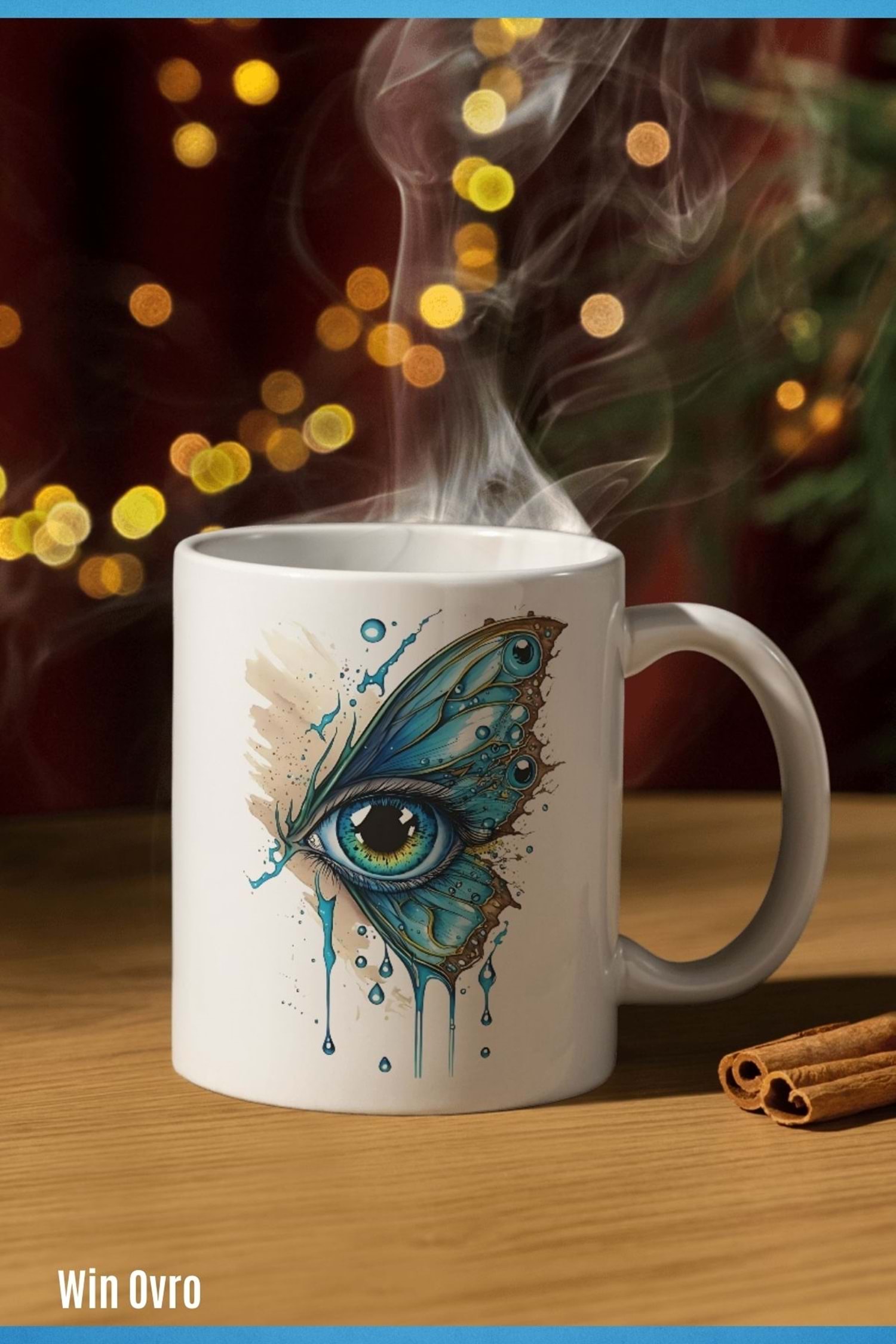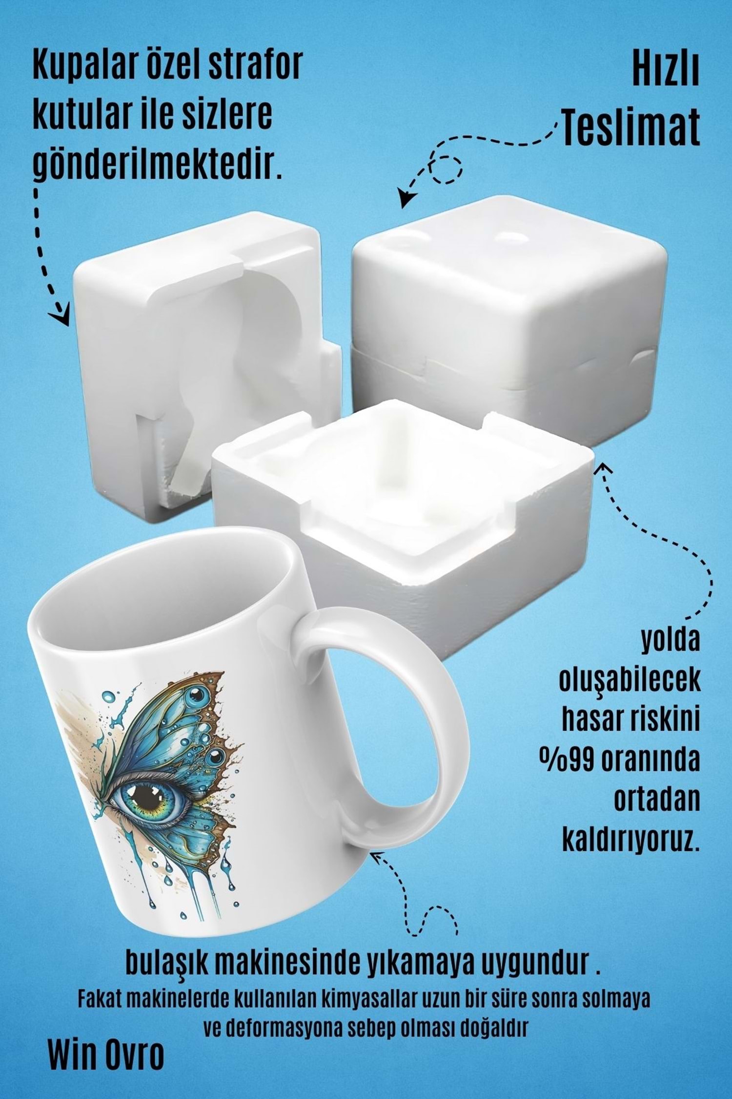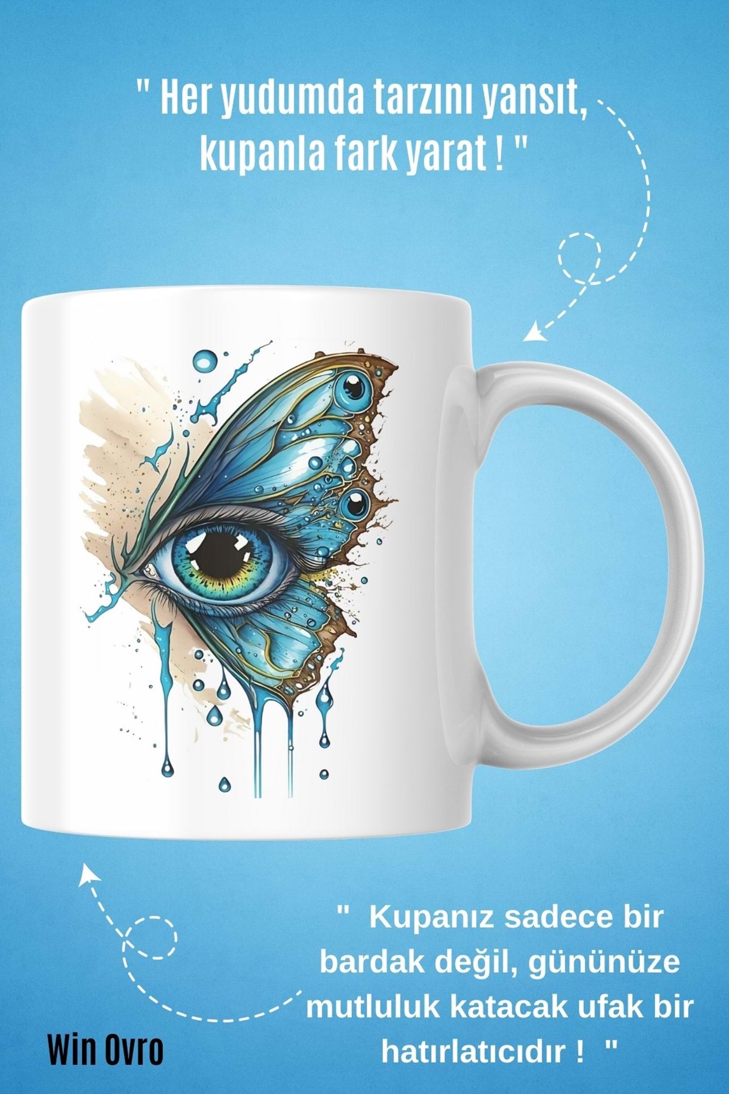 Win Ovro Premium Beyaz Porselen Hediye Kupa Bardak Çift Yön Baskı - Kelebek Kanadında Bir Göz