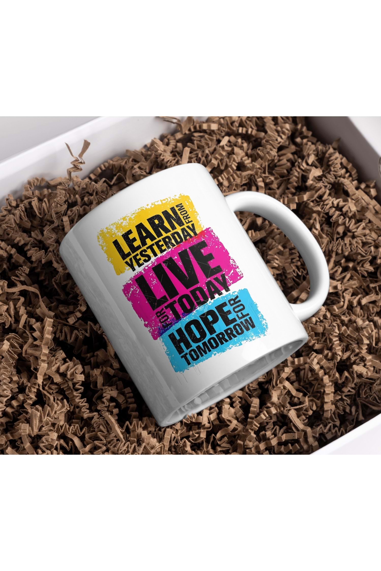 Win Ovro Premium Beyaz Porselen Hediye Kupa Bardak Çift Yön Baskı - Learn Live Hope