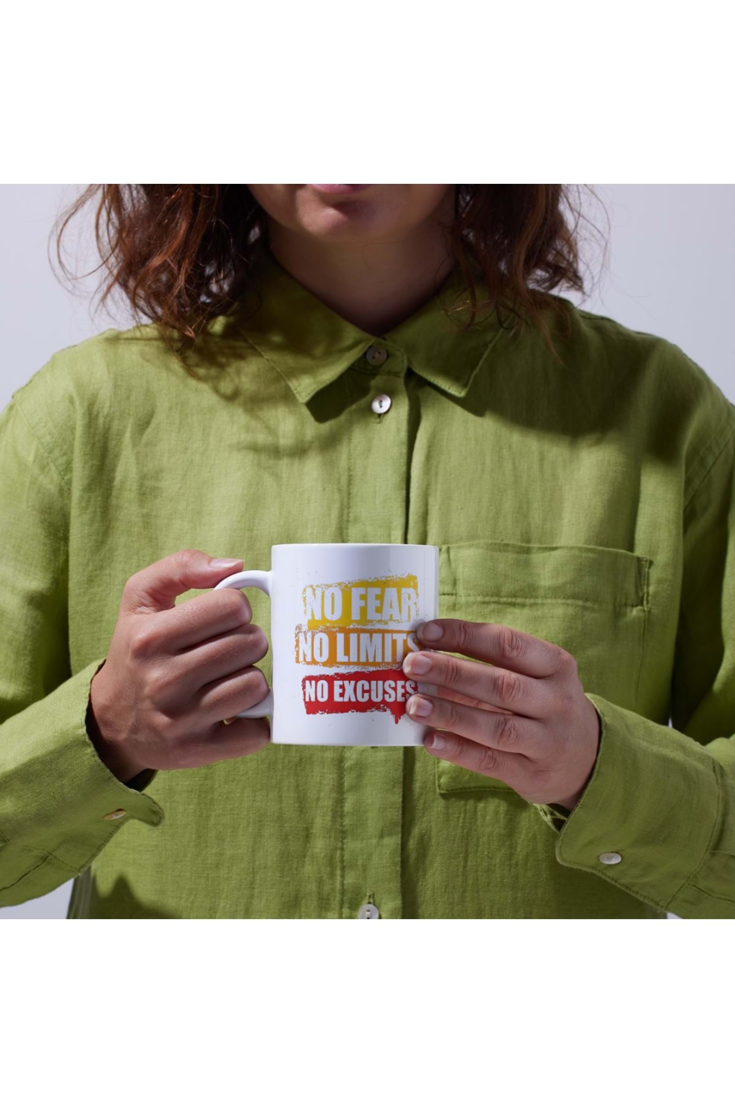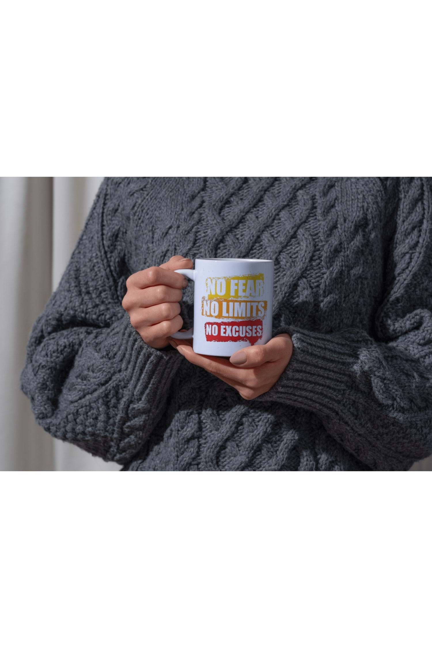 Win Ovro Premium Beyaz Porselen Hediye Kupa Bardak Çift Yön Baskı - No Fear No Limits No Excuses