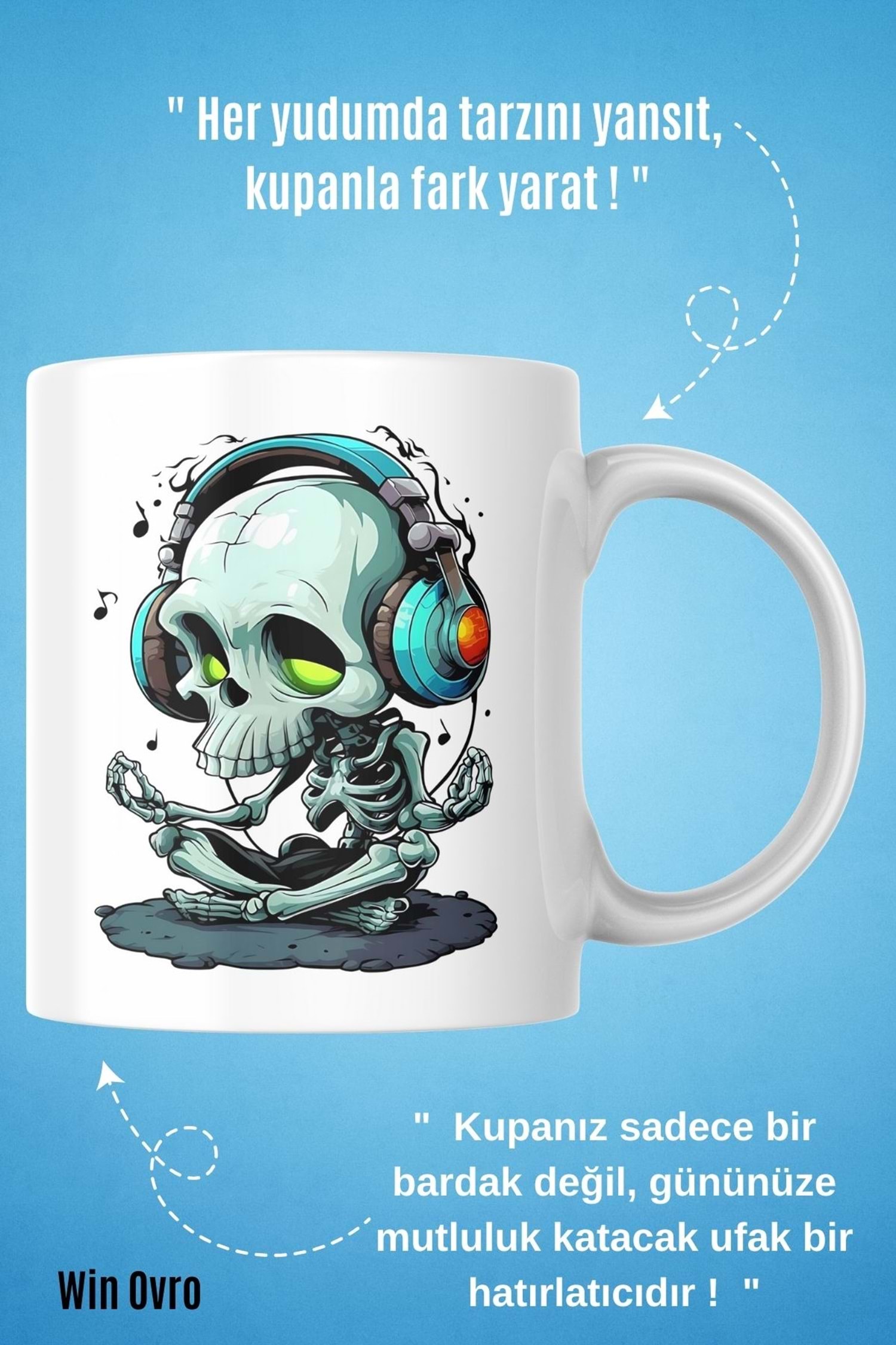 Win Ovro Premium Beyaz Porselen Hediye Kupa Bardak Çift Yön Baskı - Ruh Melodisi Ölümsüz Ritim