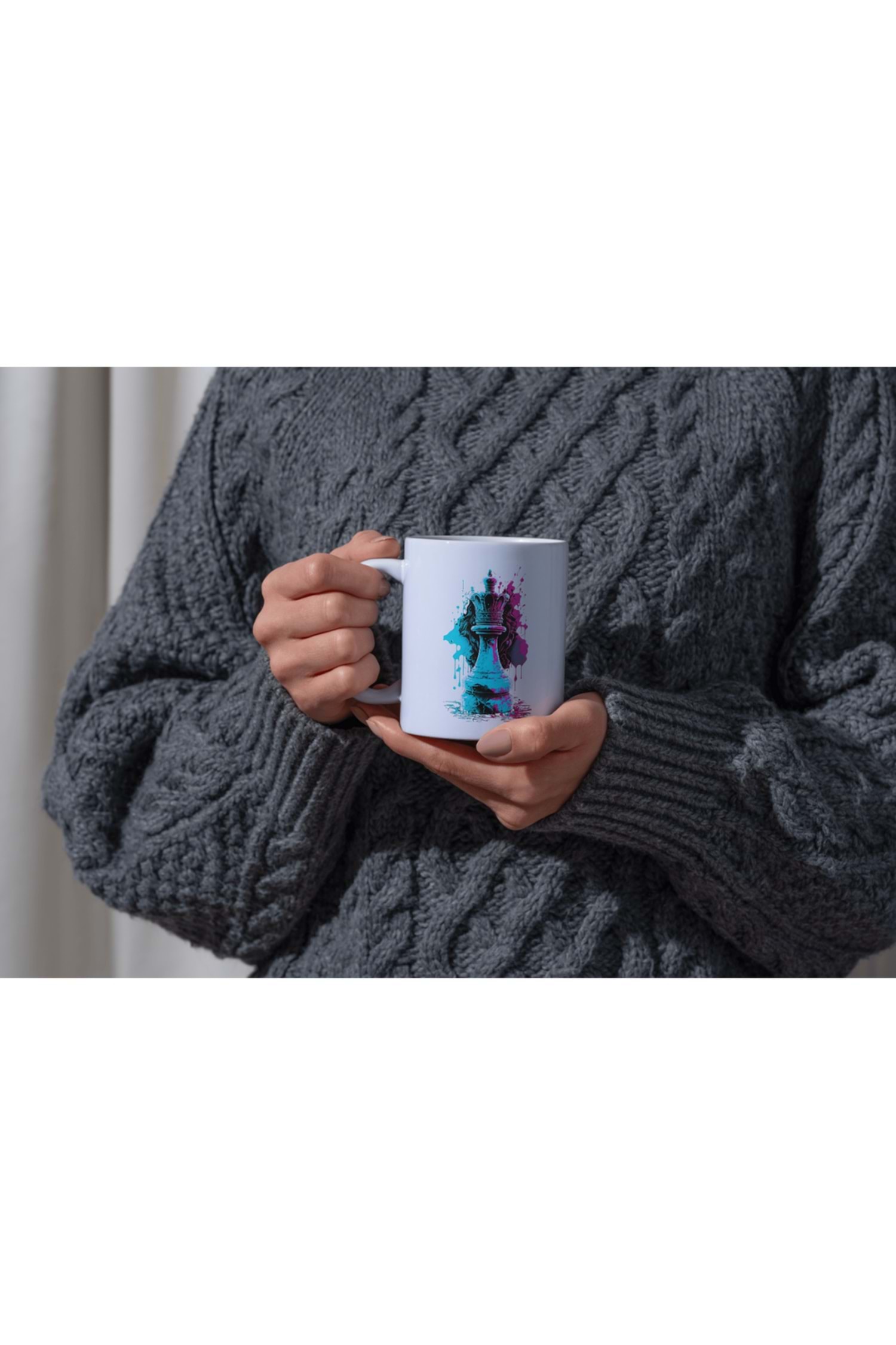 Win Ovro Premium Beyaz Porselen Hediye Kupa Bardak Çift Yön Baskı - Şah Kral Satranç Renkli Chess