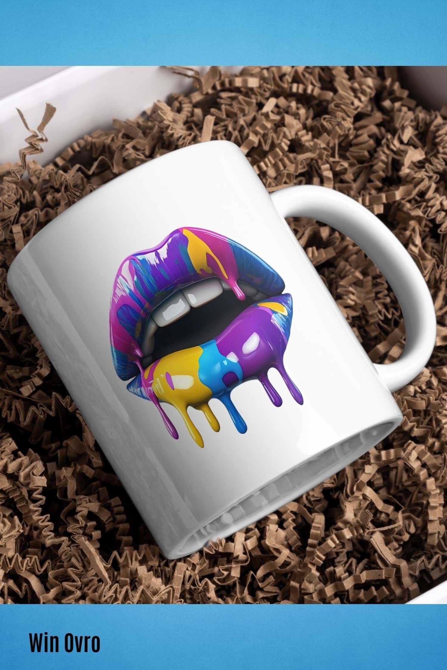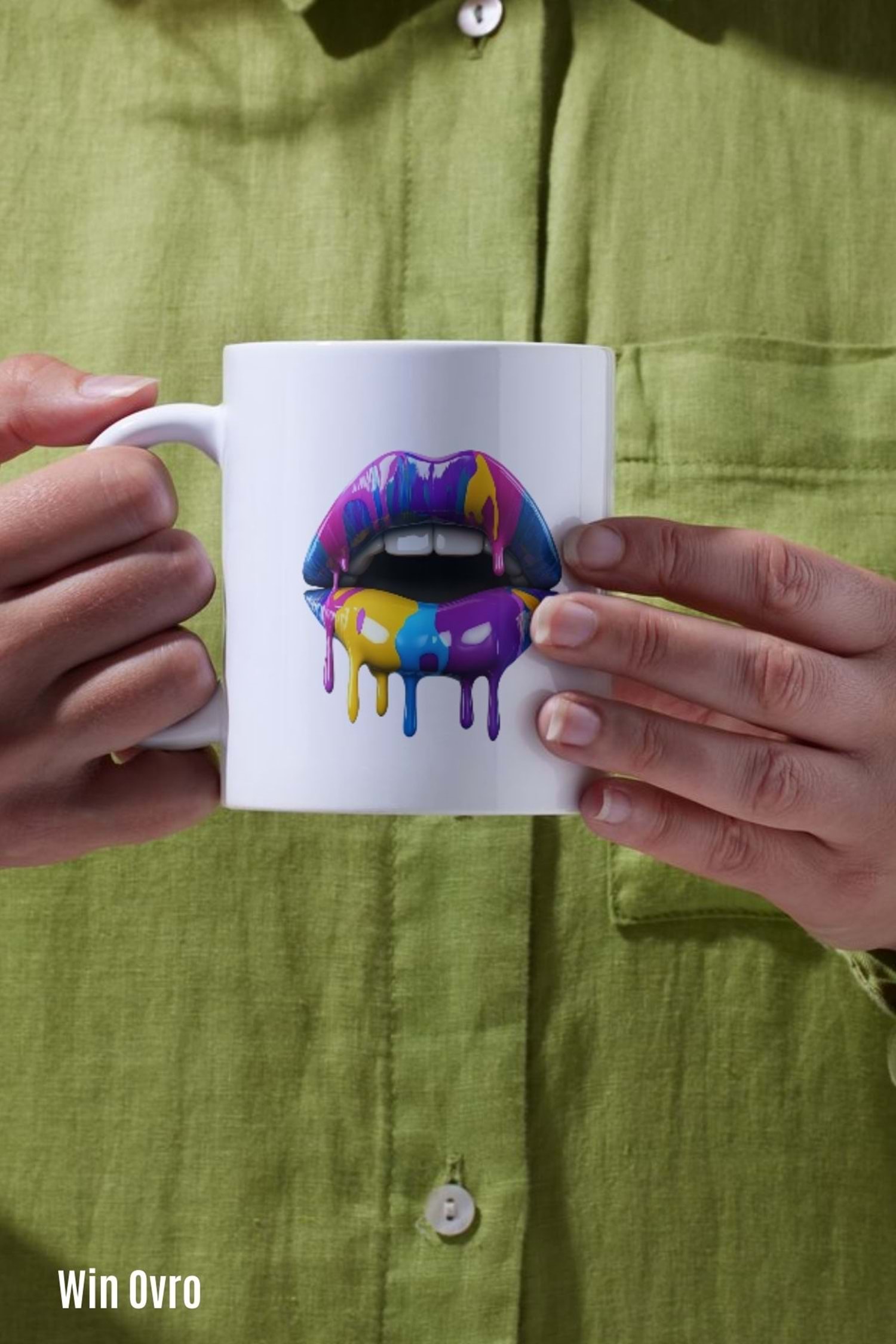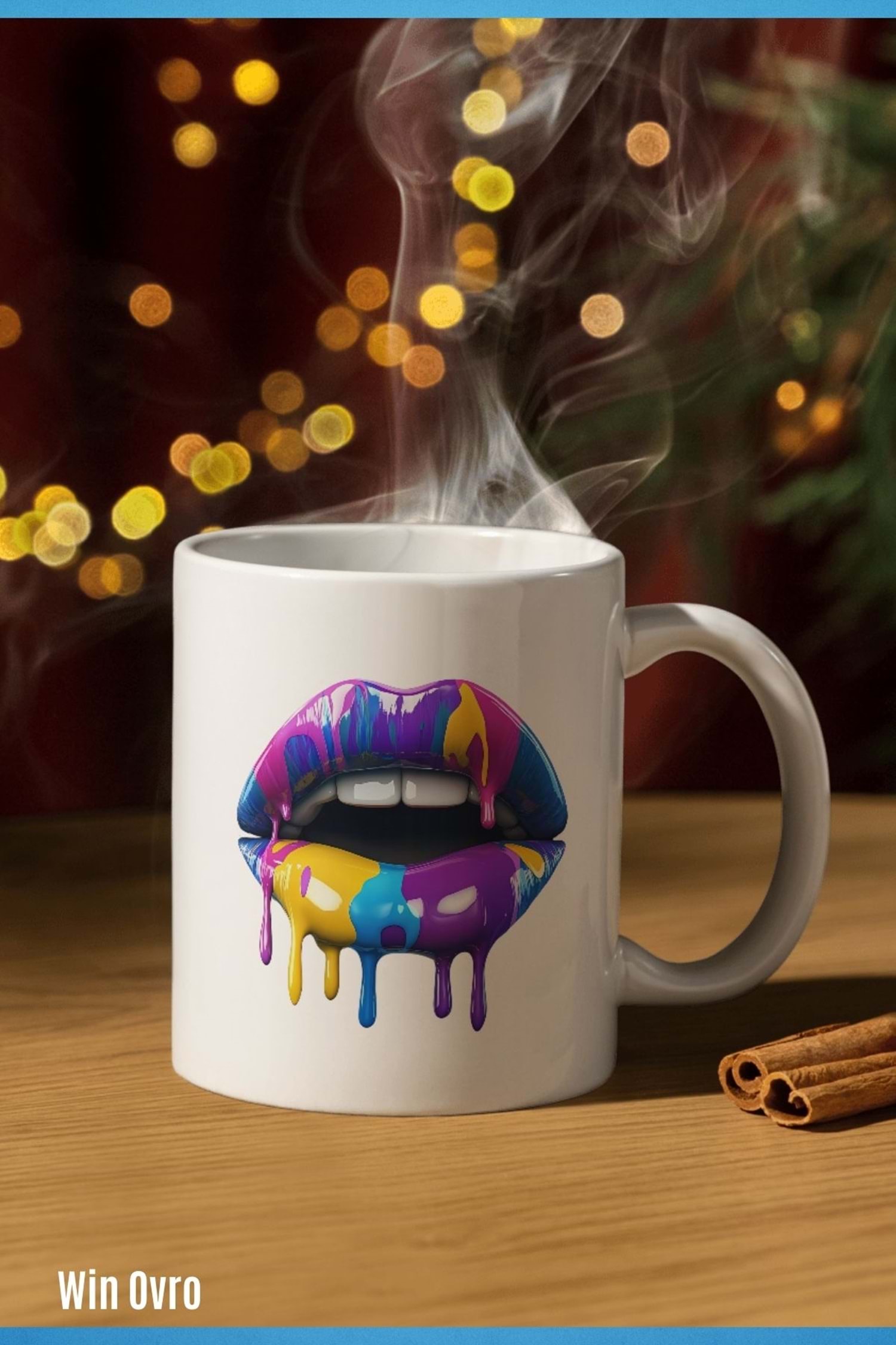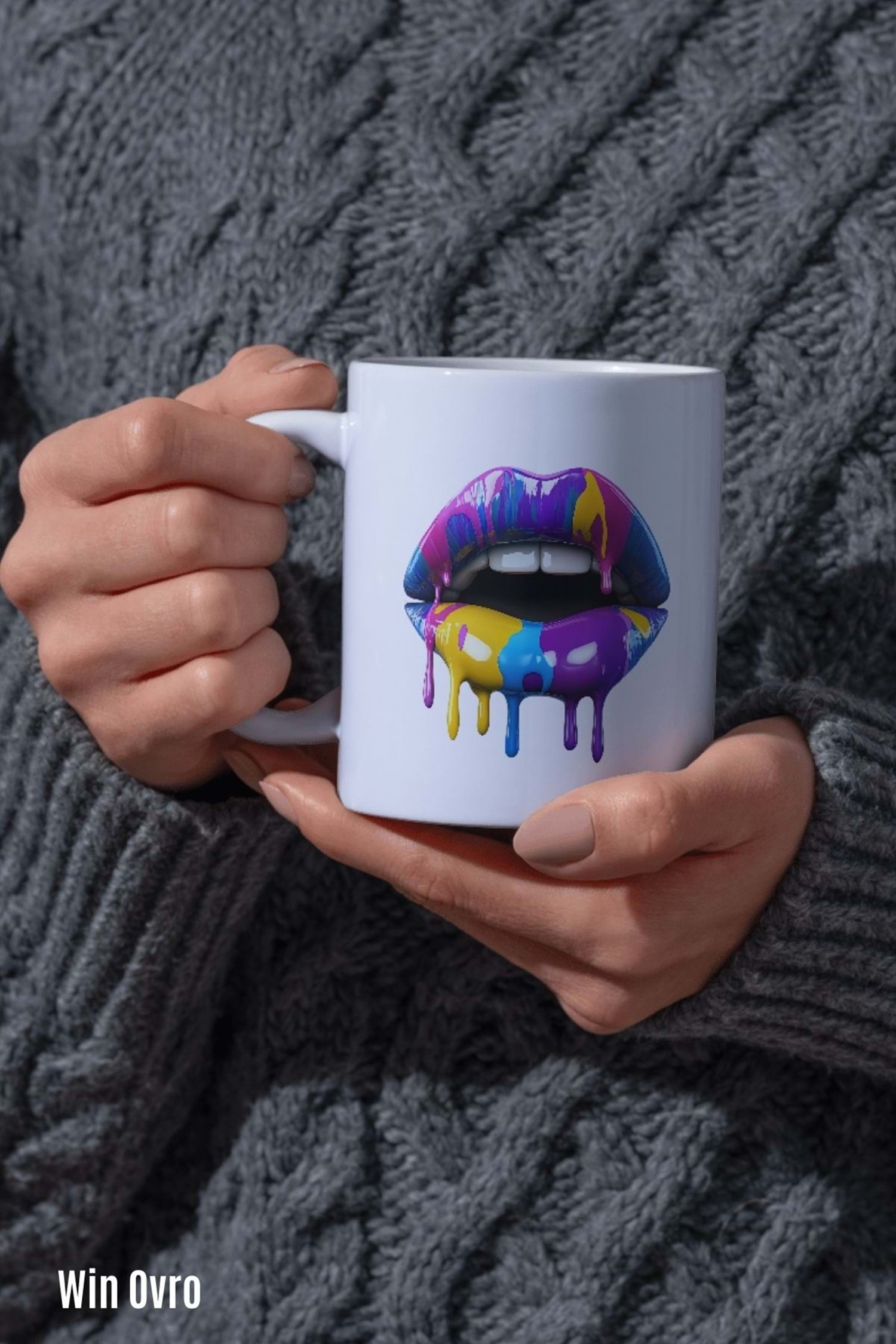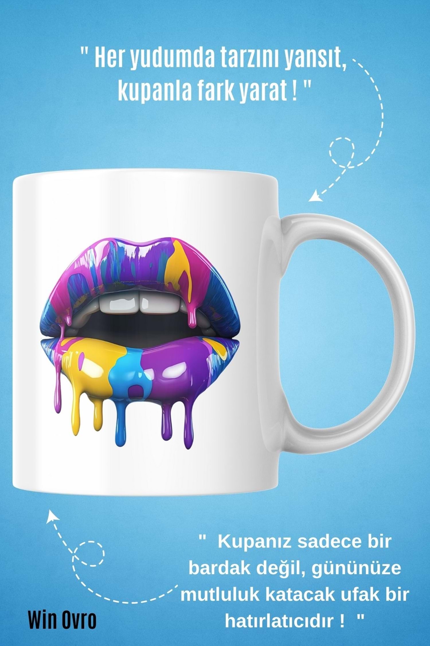 Win Ovro Premium Beyaz Porselen Hediye Kupa Bardak Çift Yön Baskı - Sanatsal Dudaklar Artistic Lips