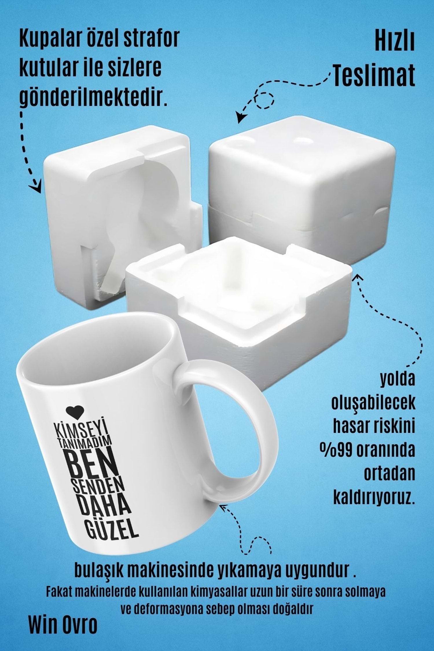 Win Ovro Premium Beyaz Porselen Hediye Kupa Bardak Çift Yön Baskı - Senden Daha Güzel