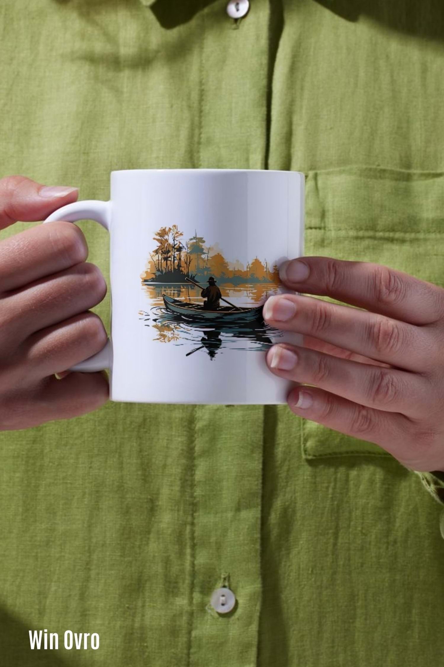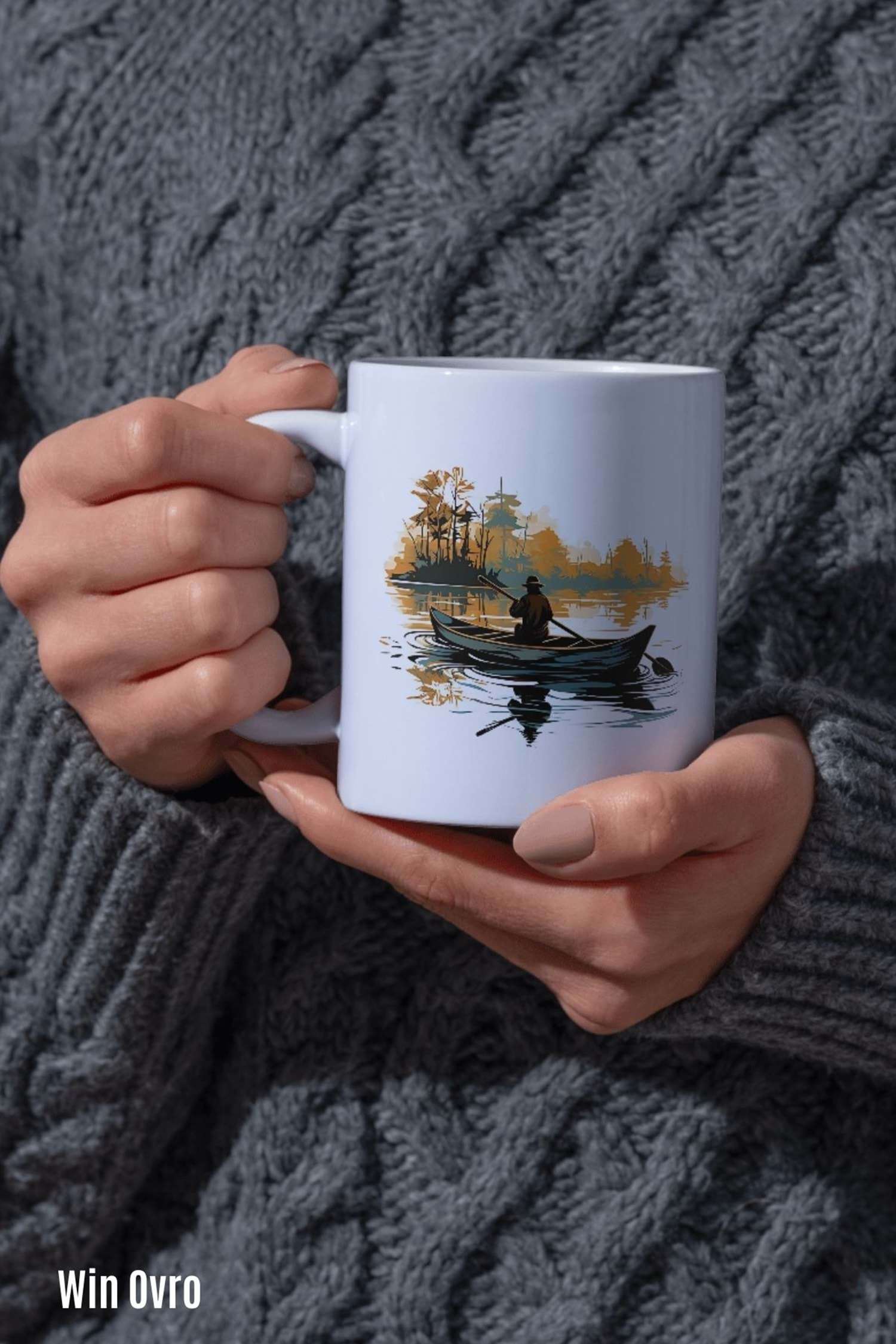 Win Ovro Premium Beyaz Porselen Hediye Kupa Bardak Çift Yön Baskı - Suyun Dengine Bir Doğa