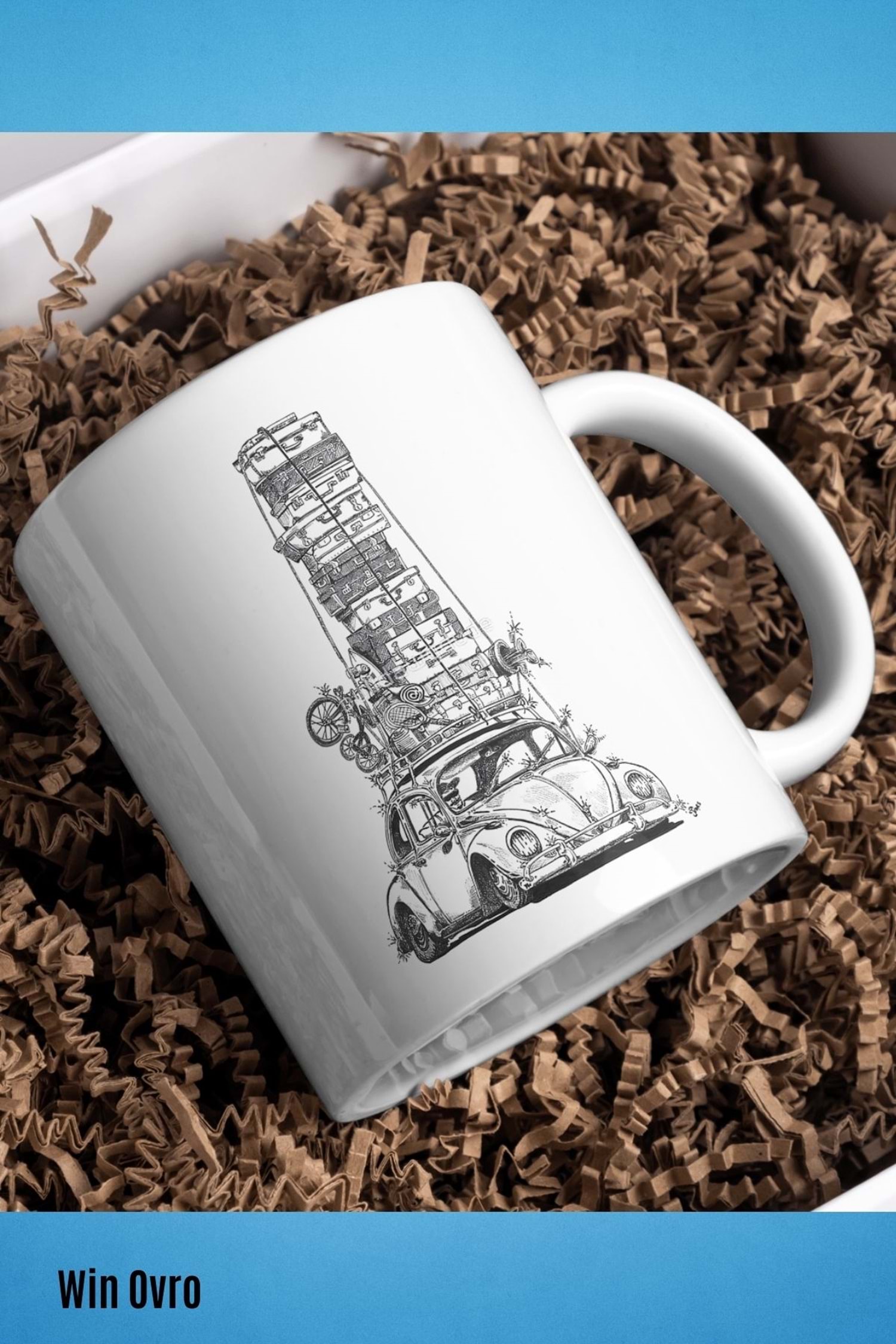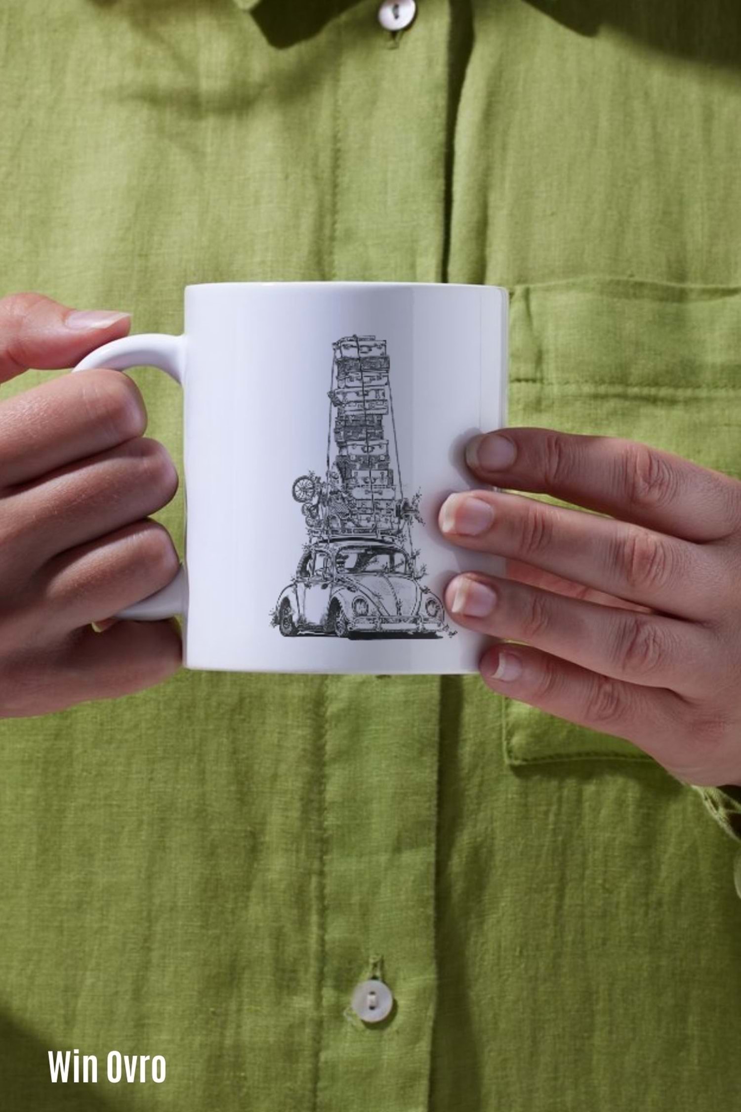 Win Ovro Premium Beyaz Porselen Hediye Kupa Bardak Çift Yön Baskı -The load of the Beetle is heavy