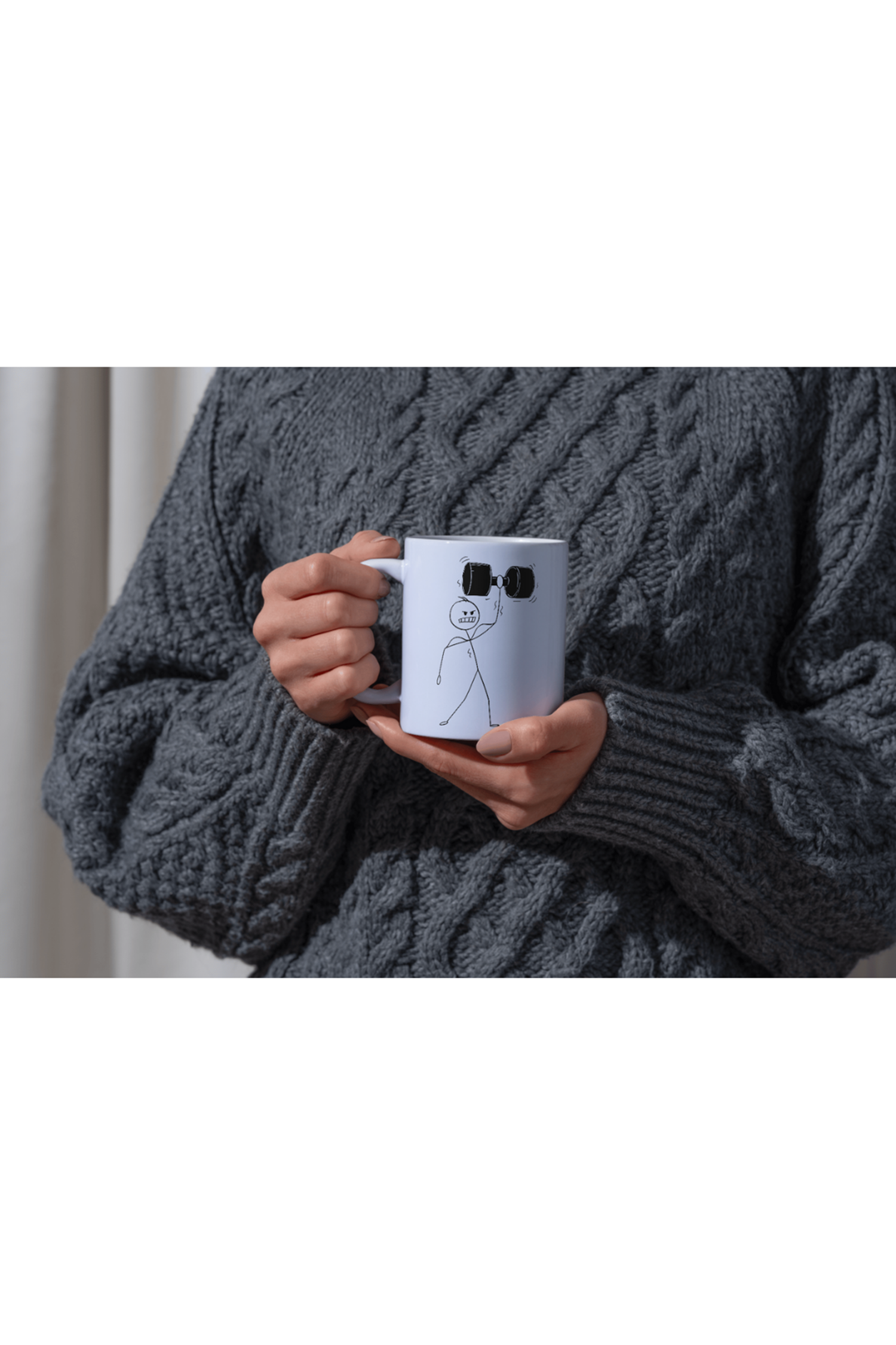 Win Ovro Premium Beyaz Porselen Hediye Kupa Bardak Çift Yönlü Baskı - Çizgiyle Anlat Çöp Adam Body