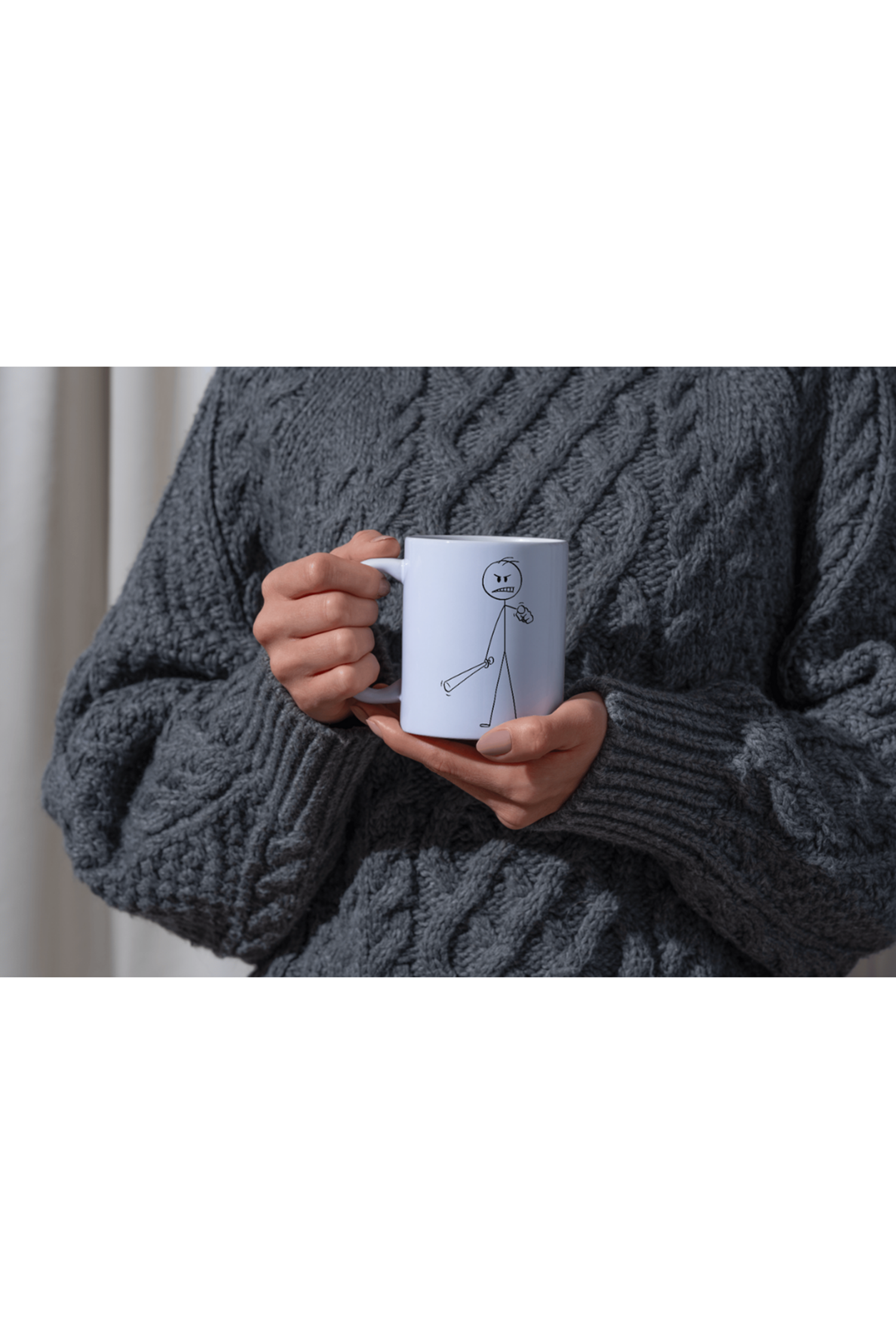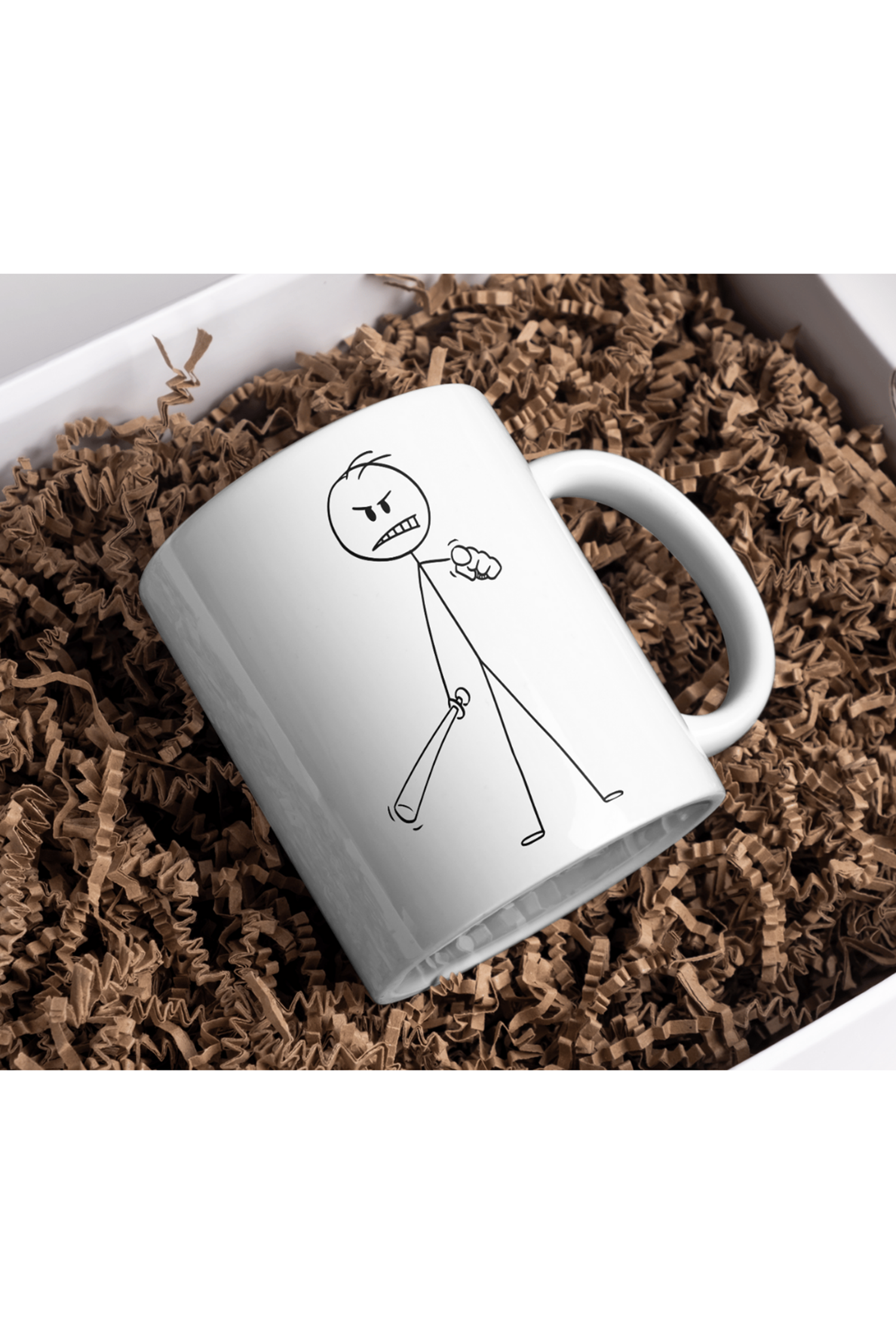 Win Ovro Premium Beyaz Porselen Hediye Kupa Bardak Çift Yönlü Baskı - Çizgiyle Anlat Çöp Adam Kızgın