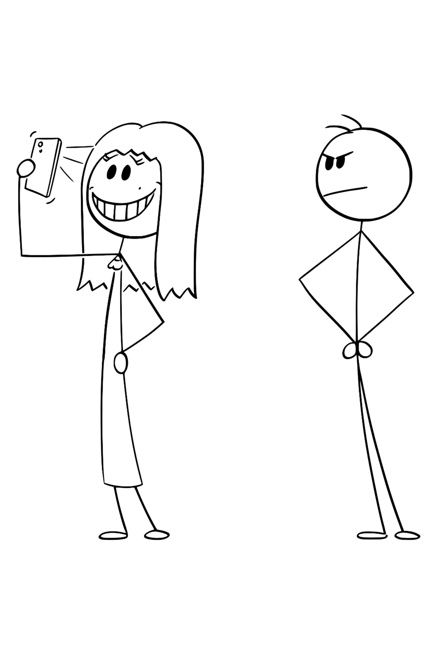 Win Ovro Premium Beyaz Porselen Hediye Kupa Bardak Çift Yönlü Baskı - Çizgiyle Anlat Çöp Adam Selfi