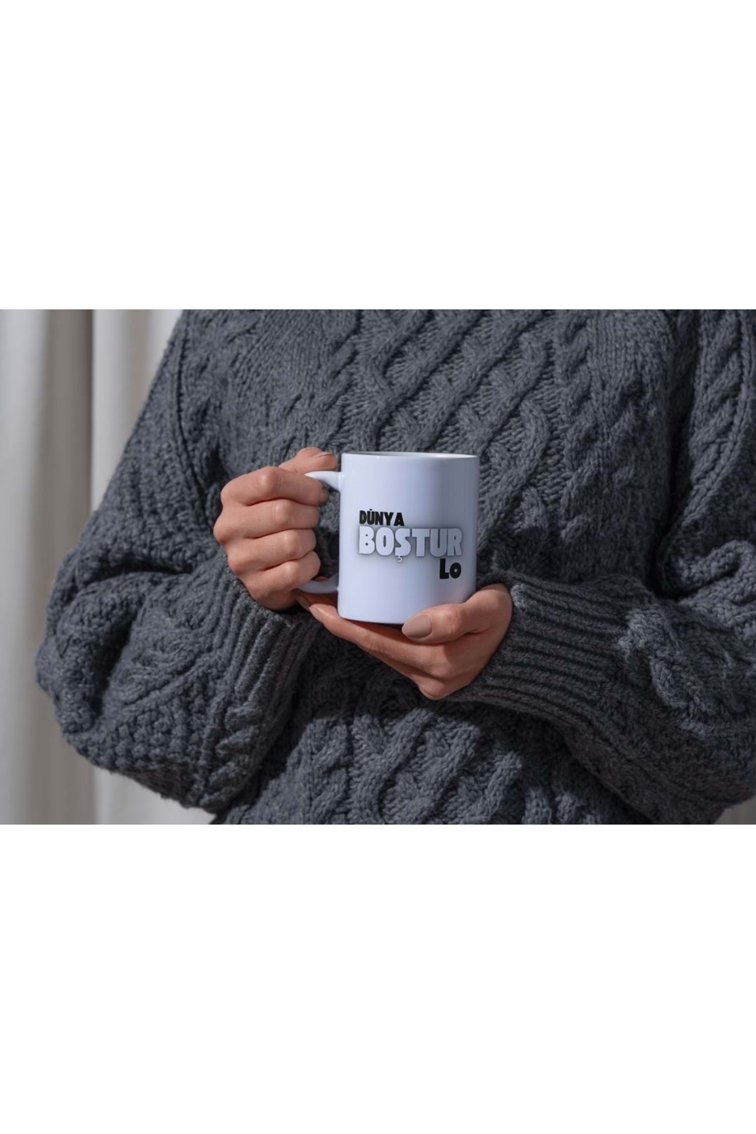 Win Ovro Premium Ultra Beyaz Porselen Kupa Bardak Çift Yönlü Baskılı - Dünya Boştur Lo