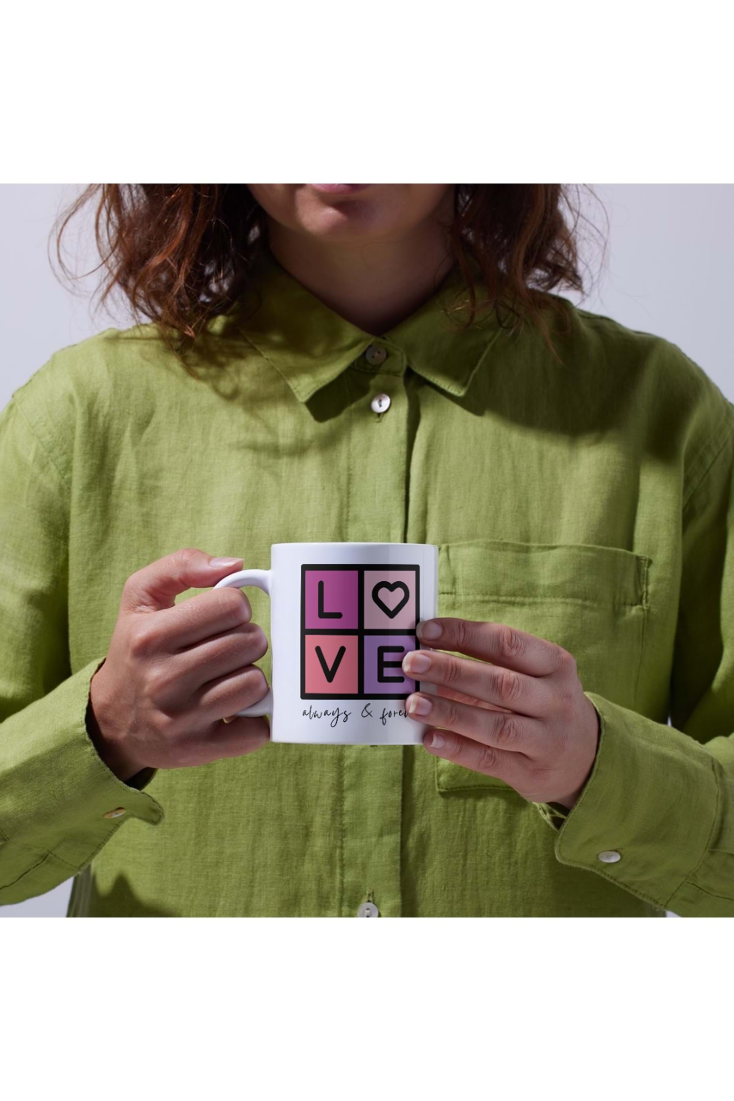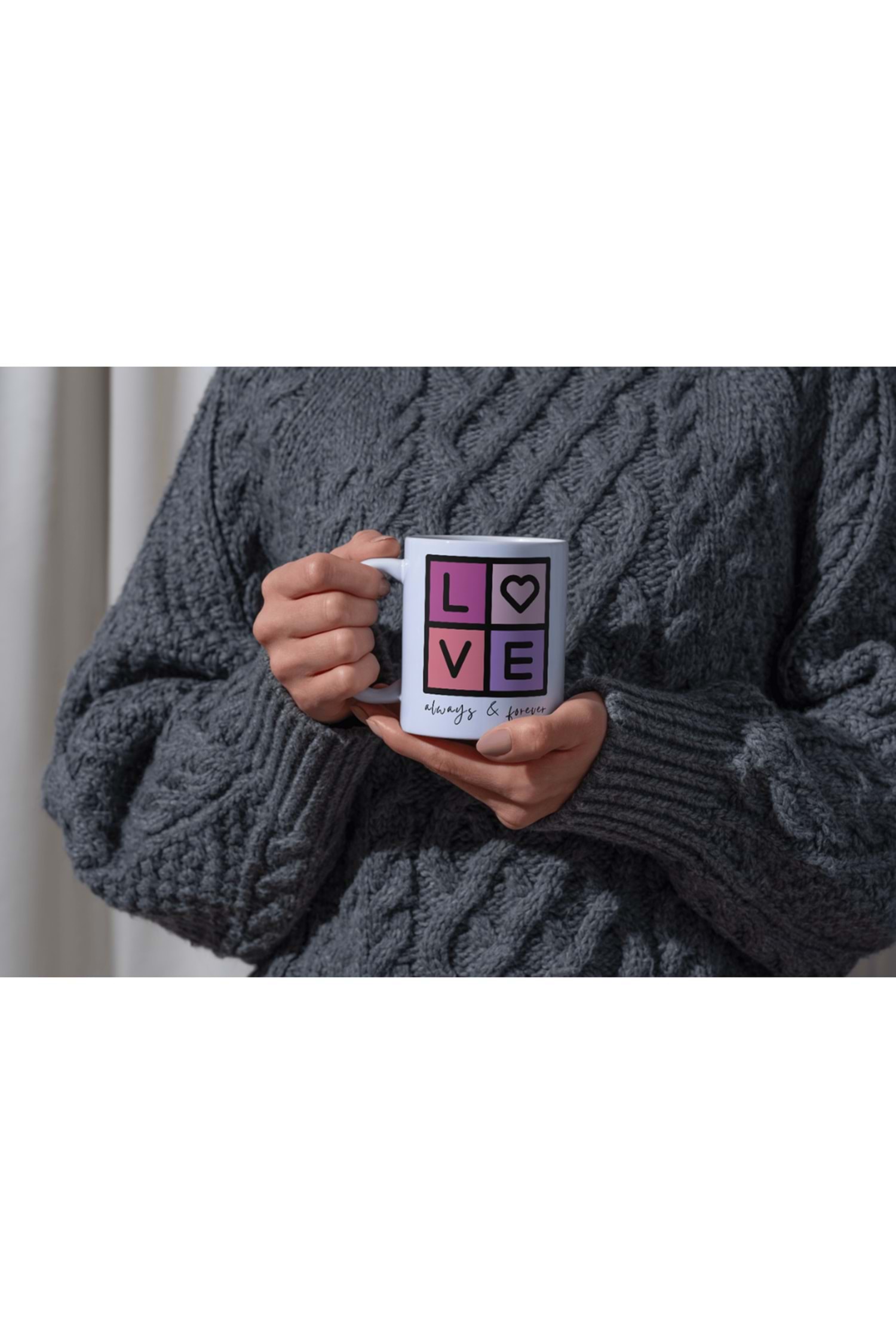 Win Ovro Premium Ultra Beyaz Porselen Kupa Bardak Çift Yönlü Baskılı - Love Sonsuza Kadar Aşk