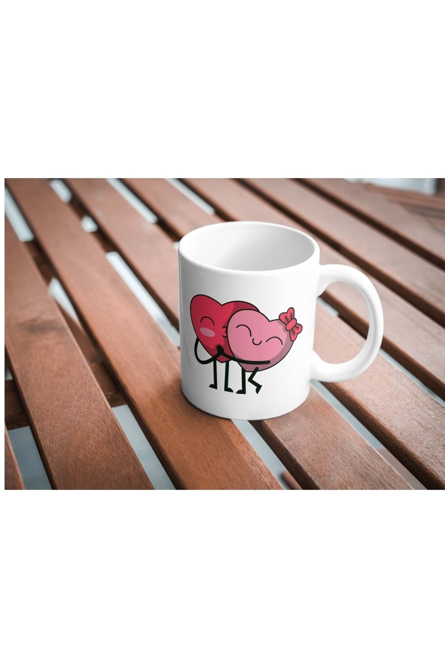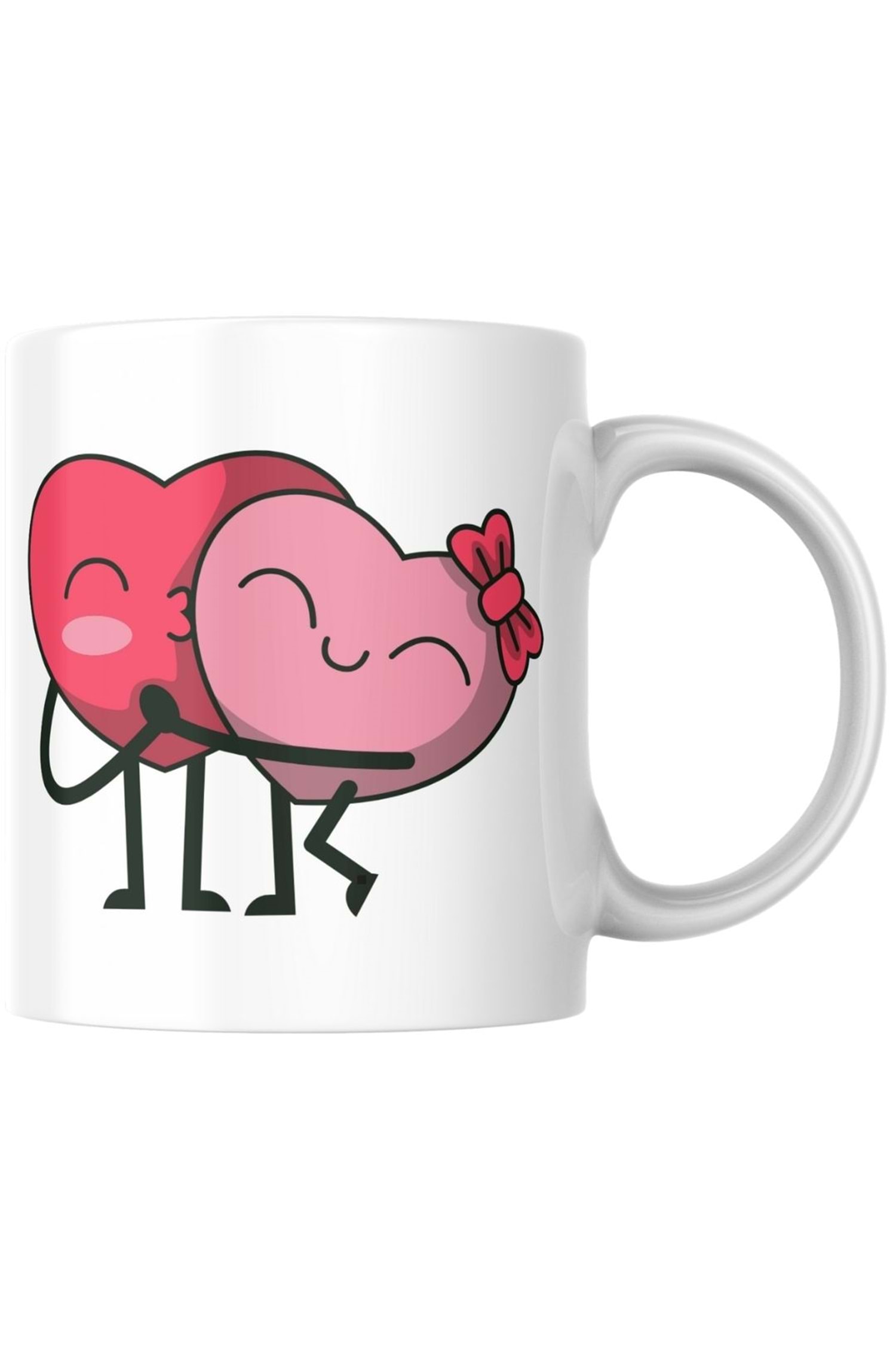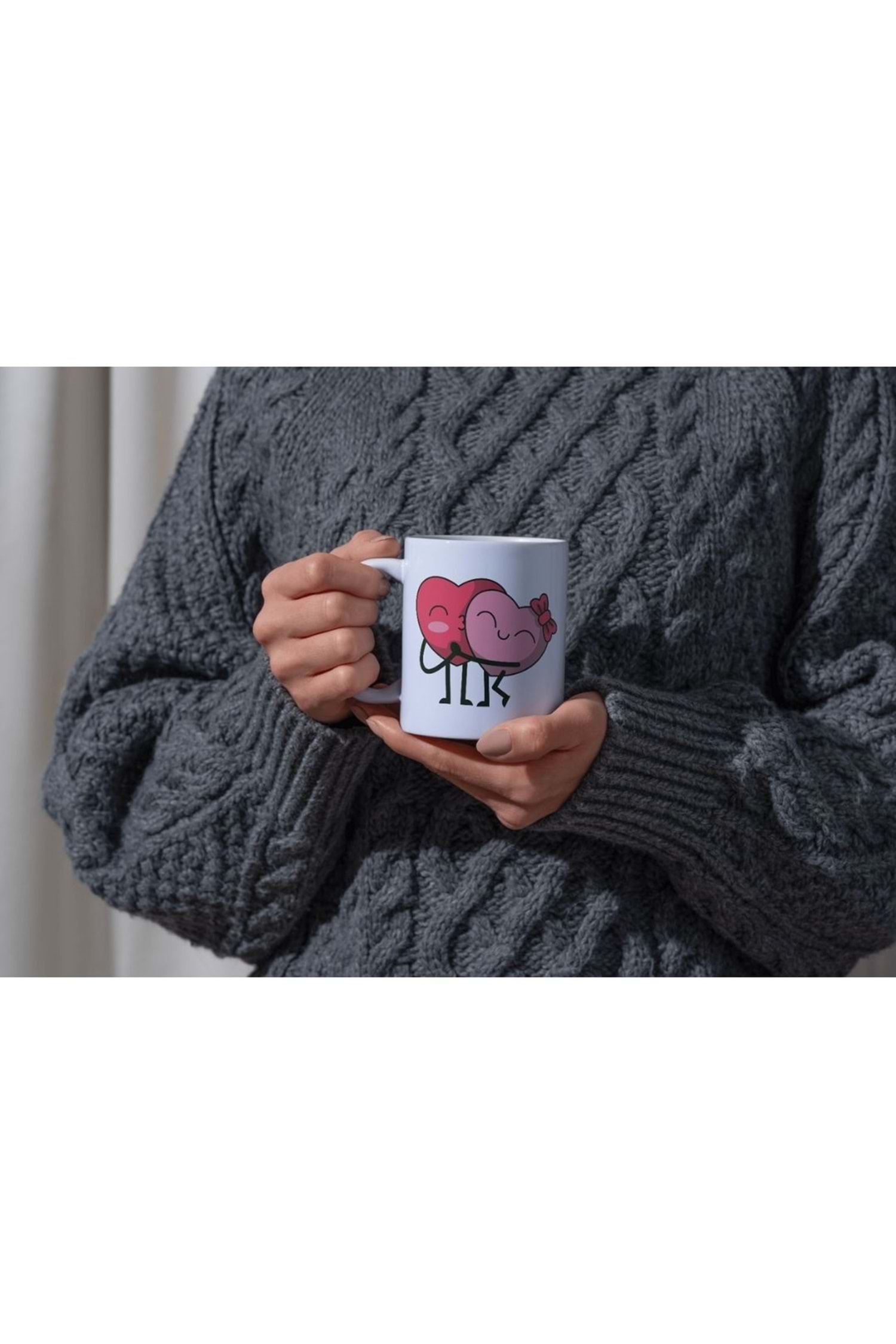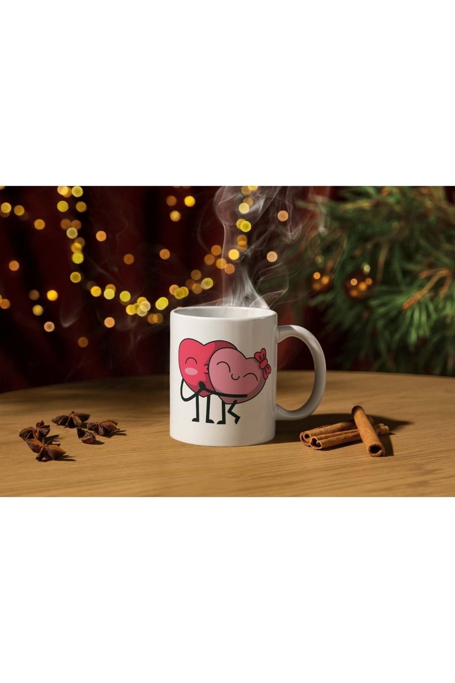 Win Ovro Premium Ultra Beyaz Porselen Kupa Bardak Çift Yönlü Baskılı - Sevgili Kalp