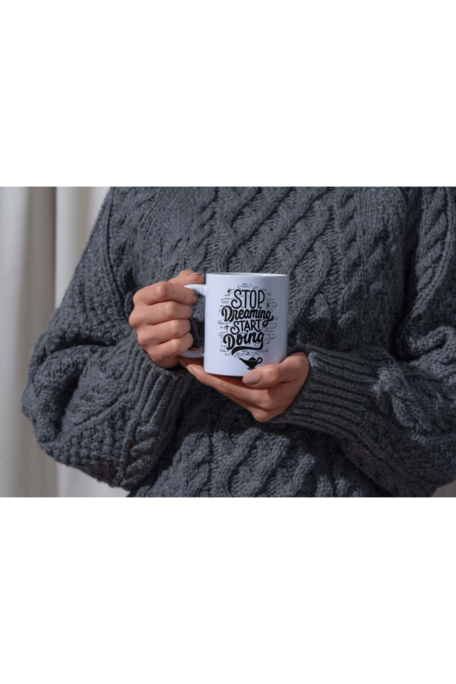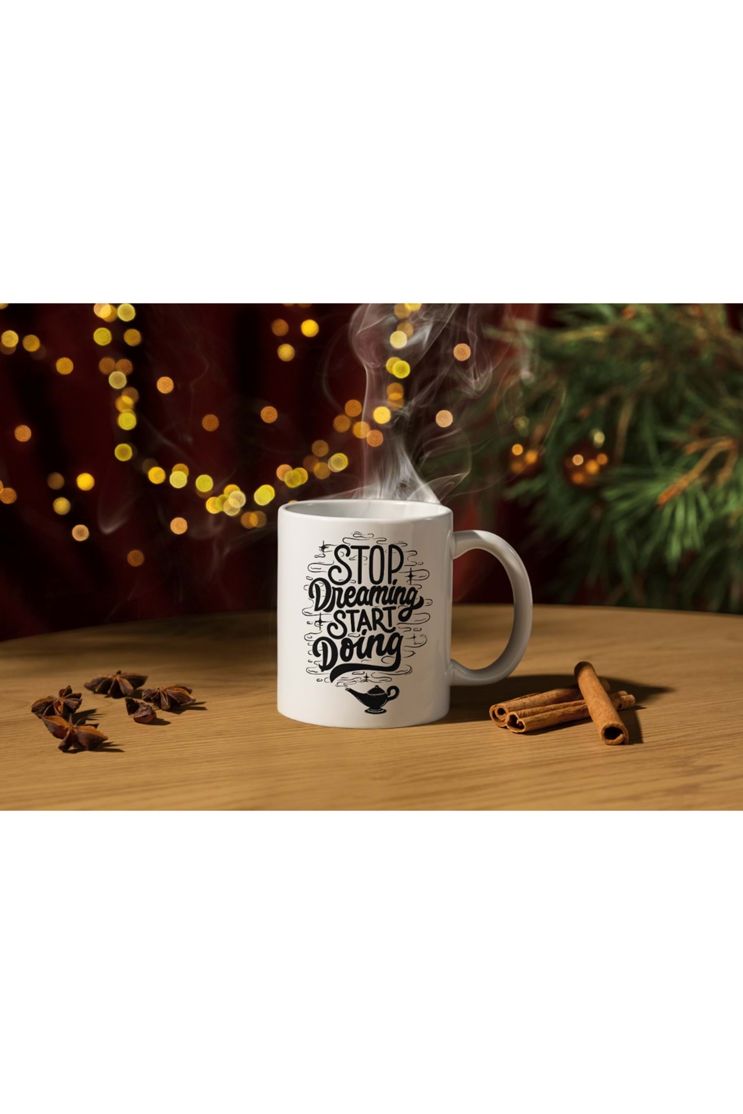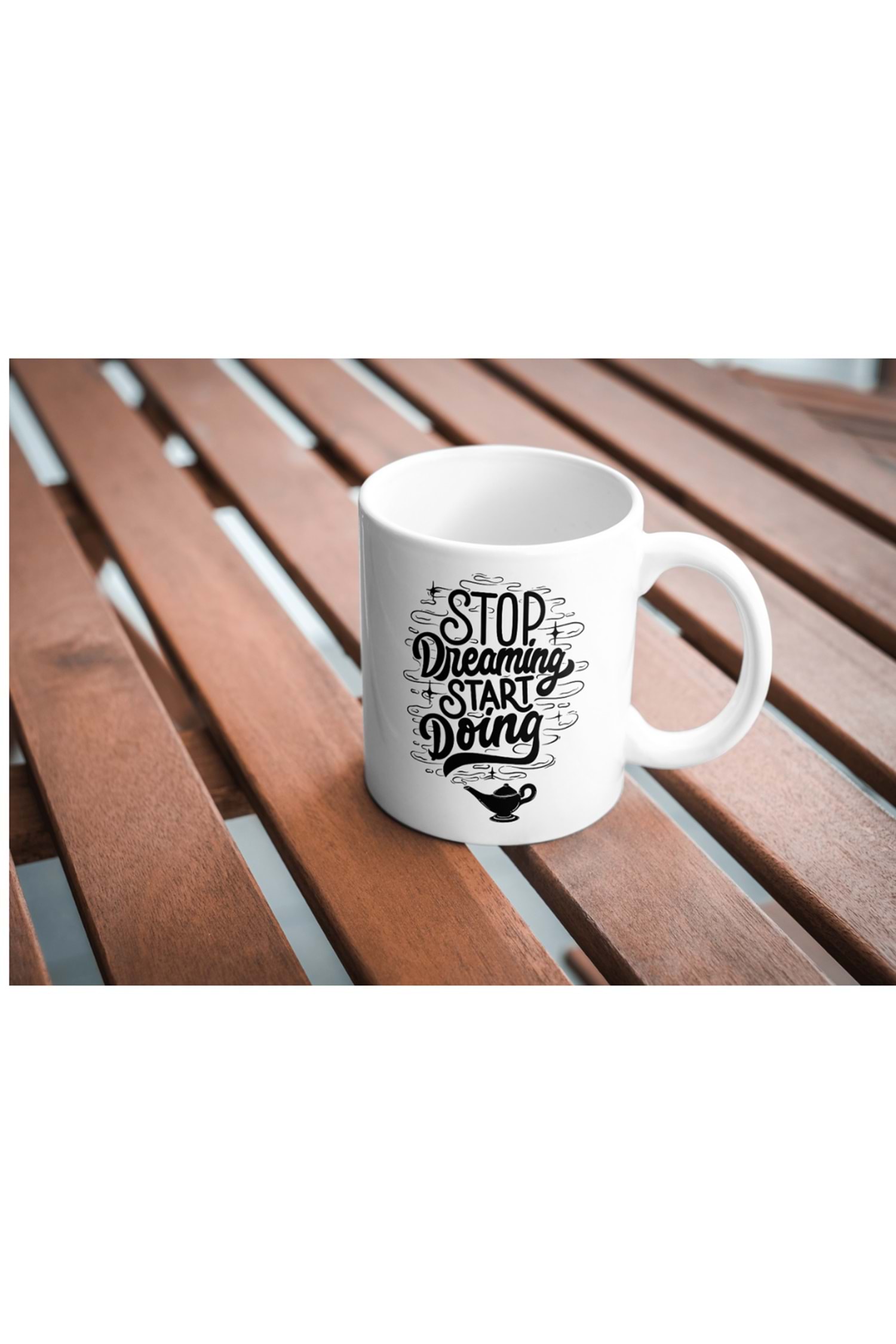 Win Ovro Premium Ultra Beyaz Porselen Kupa Bardak Çift Yönlü Baskılı - Stop Dreaming Start Doing